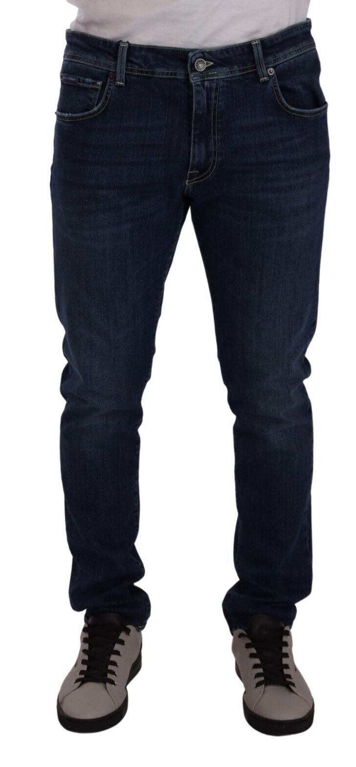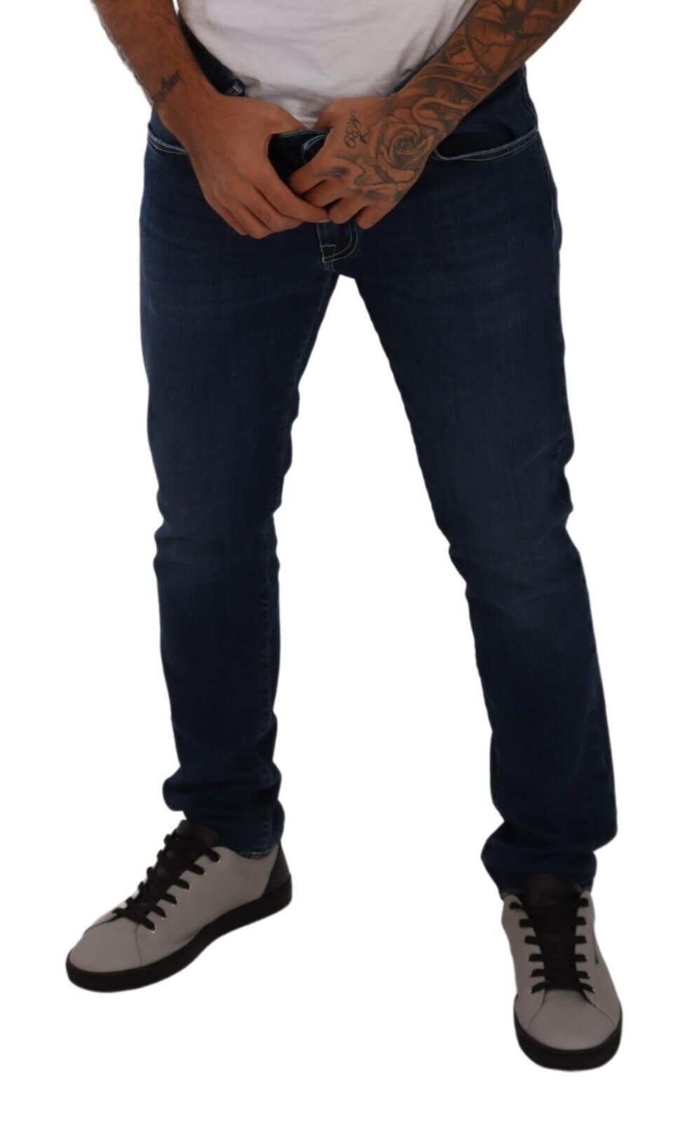 Step up your style game with these brand new, tag-attached Dolce & Gabbana skinny jeans. Expertly crafted in Italy, these slim-fit denim trousers are made from high-quality cotton blend, ensuring both comfort and durability. The dark blue hue offers a versatile and sophisticated look, perfect for a variety of occasions. Featuring a classic zip and button closure and embellished with subtle logo details, these jeans are the epitome of luxury casual wear.
