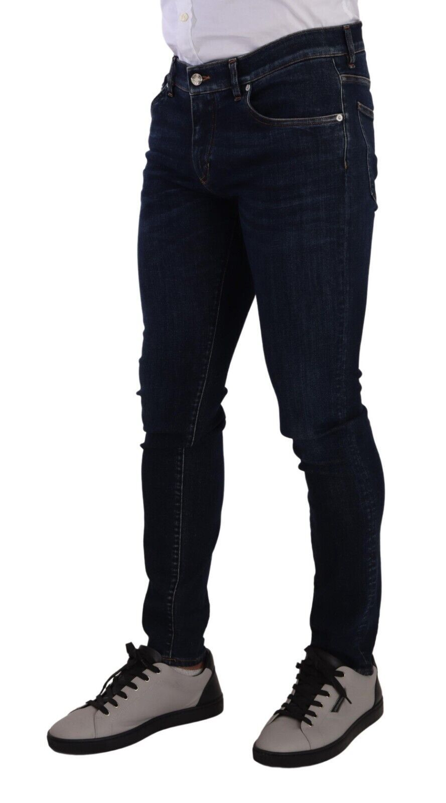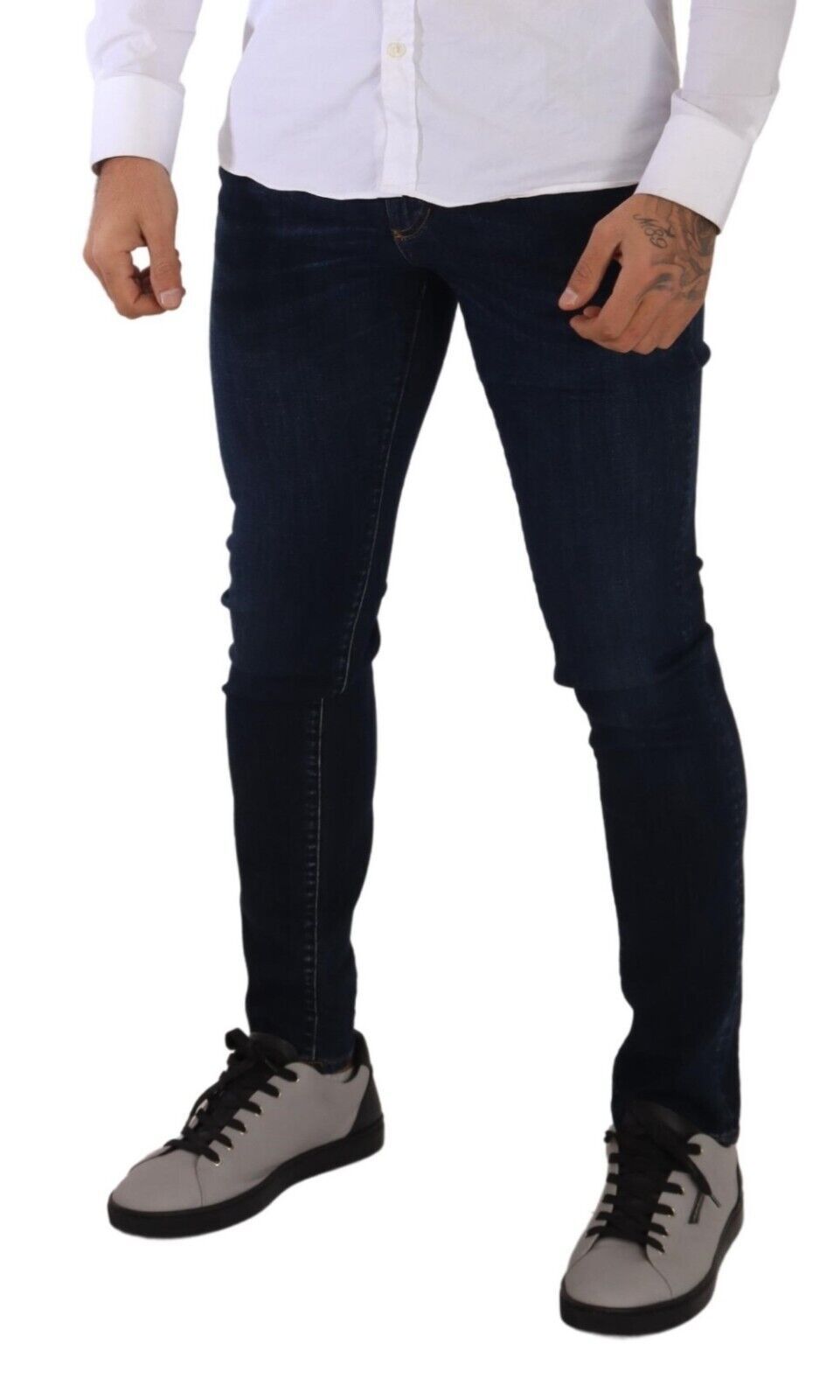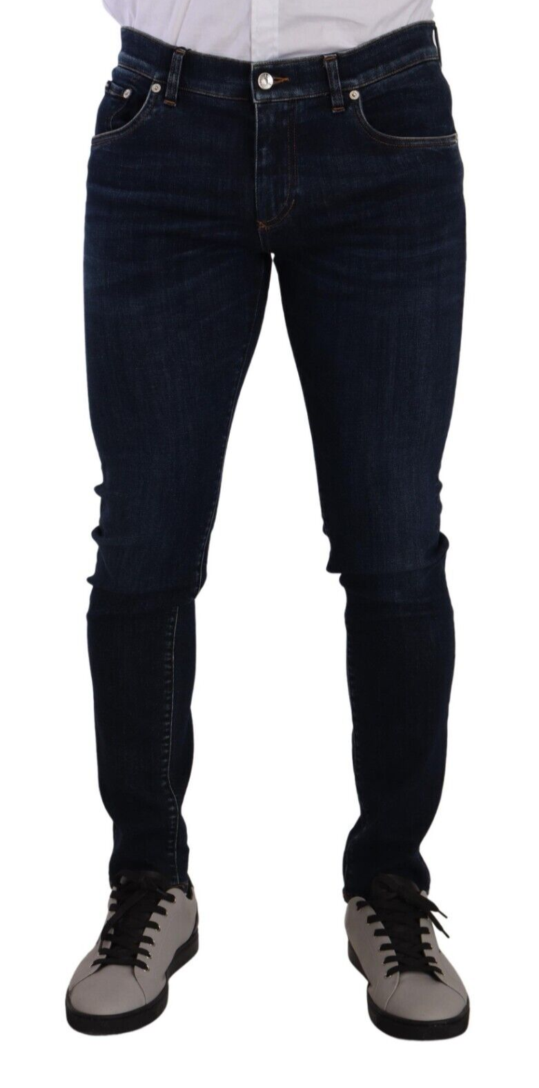Experience the epitome of Italian craftsmanship with these chic, dark blue skinny jeans from Dolce & Gabbana. These luxurious jeans showcase a slim fit silhouette, featuring a stylish zipper and button closure that ensures a secure and sleek look. Adorned with subtle logo details, these denim essentials are a testament to the brand’s dedication to quality and fashion-forward design. A must-have addition to your wardrobe, crafted to elevate your style with every wear.