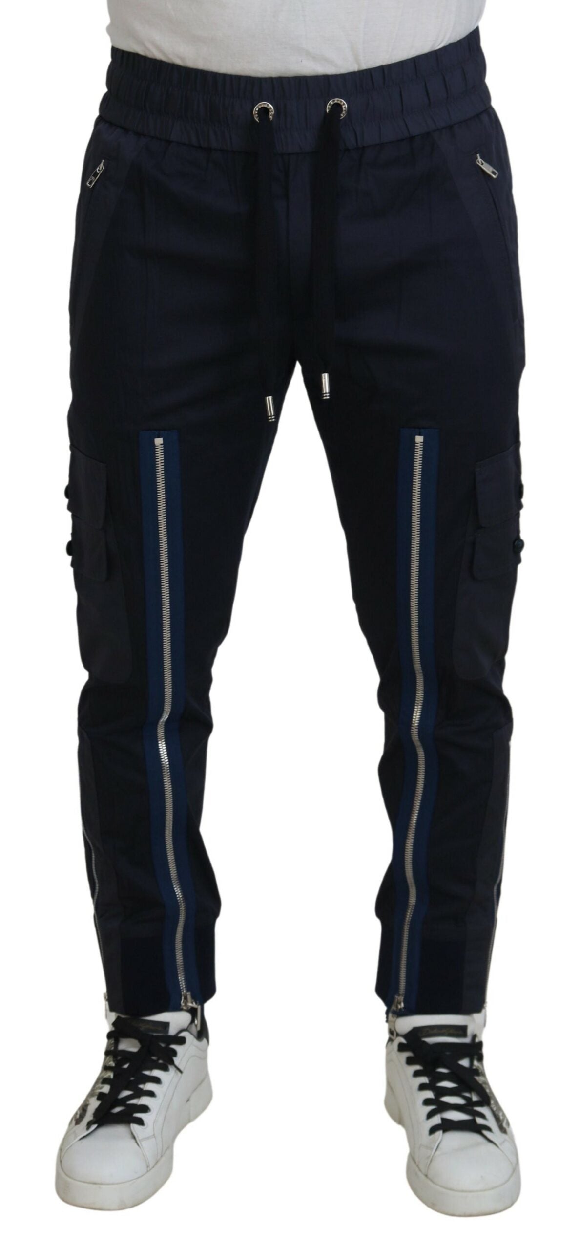 Indulge in the epitome of Italian craftsmanship with these luxurious dark blue jogger pants from the exclusive MainLine collection by Dolce & Gabbana . Perfectly blending comfort with style, these new-with-tags jogger pants are a must-have for those who enjoy the finer things in life. Tailored for a comfortable fit, they are ideal for both relaxed and active days.