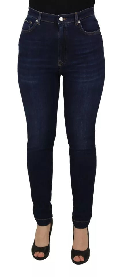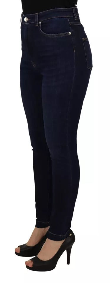 Dark Blue High Waist Skinny Cotton Jeans