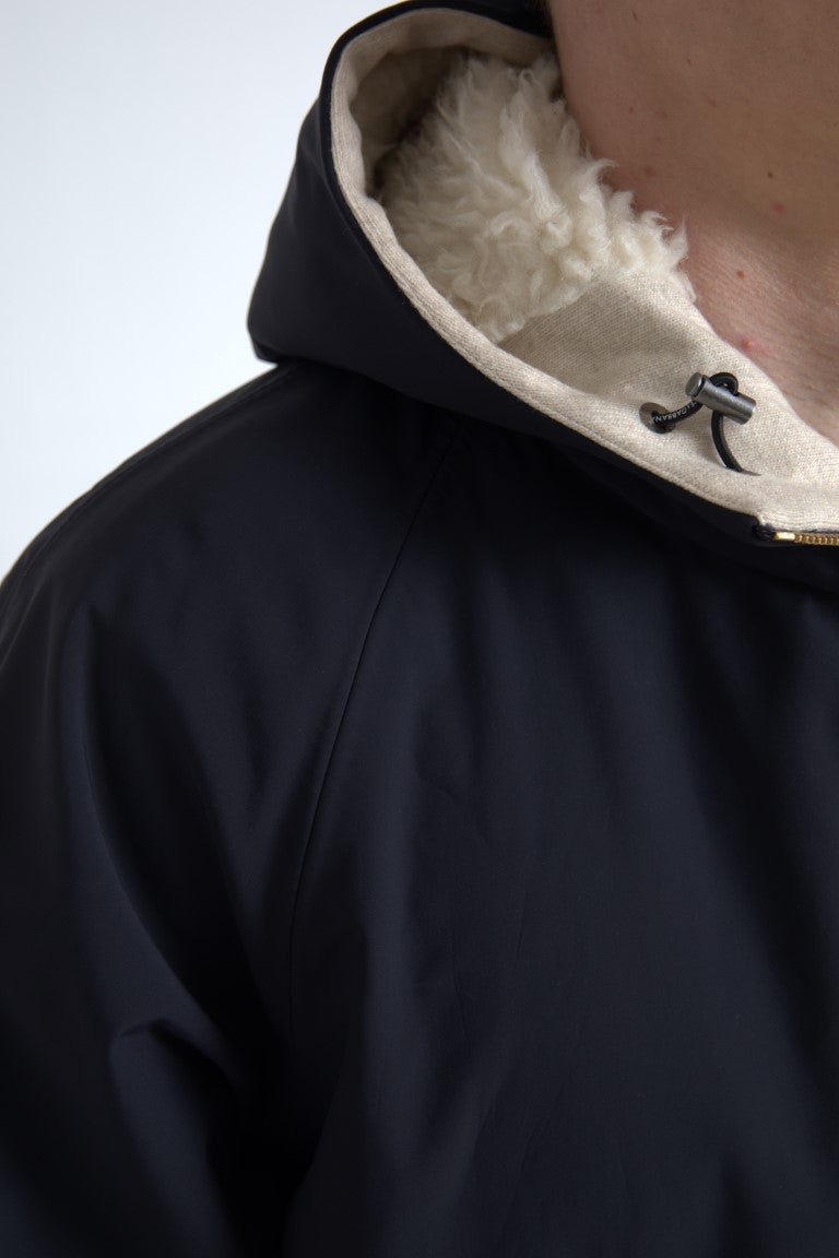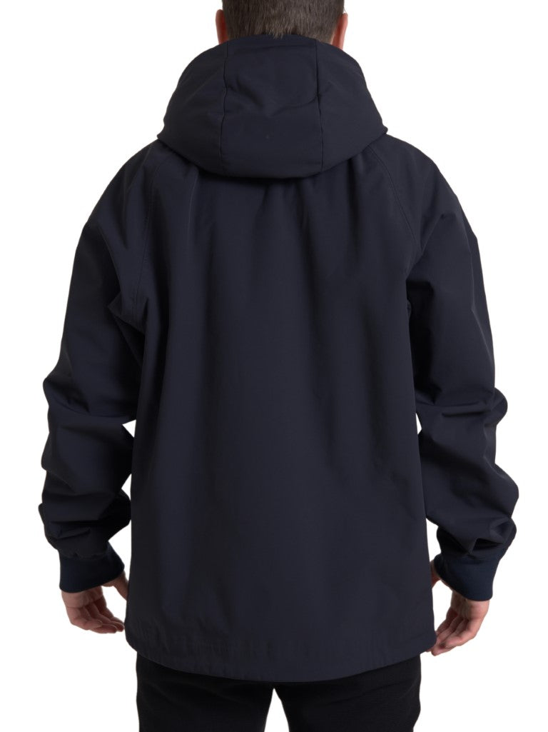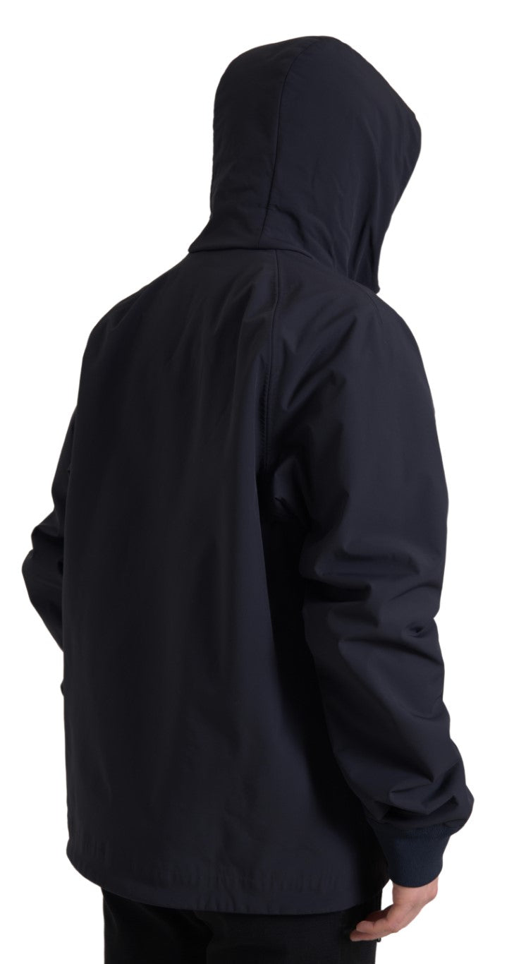 Elegant Dark Blue Hooded Jacket
