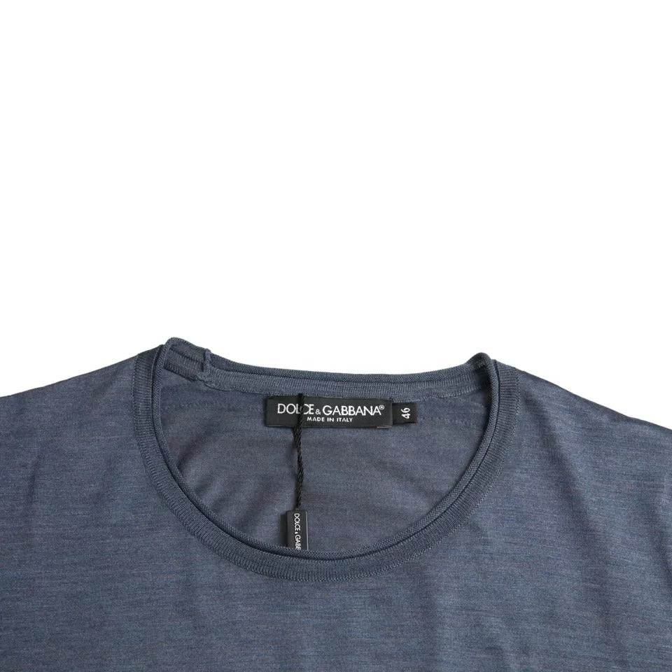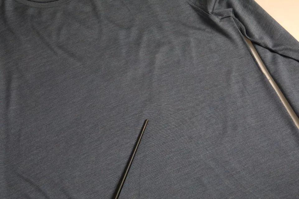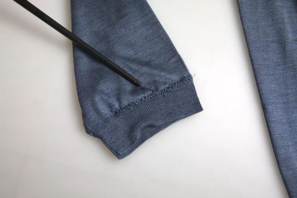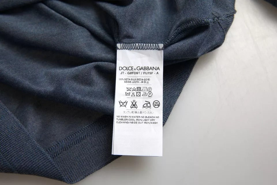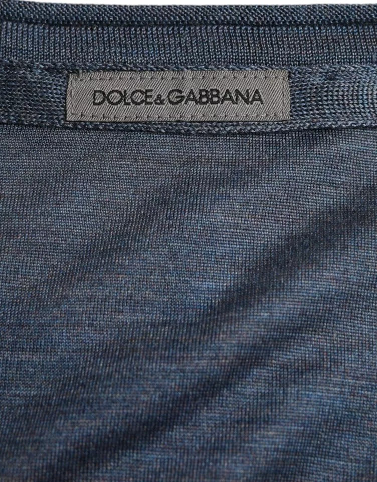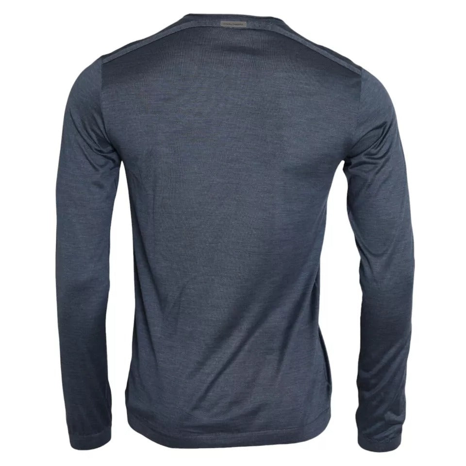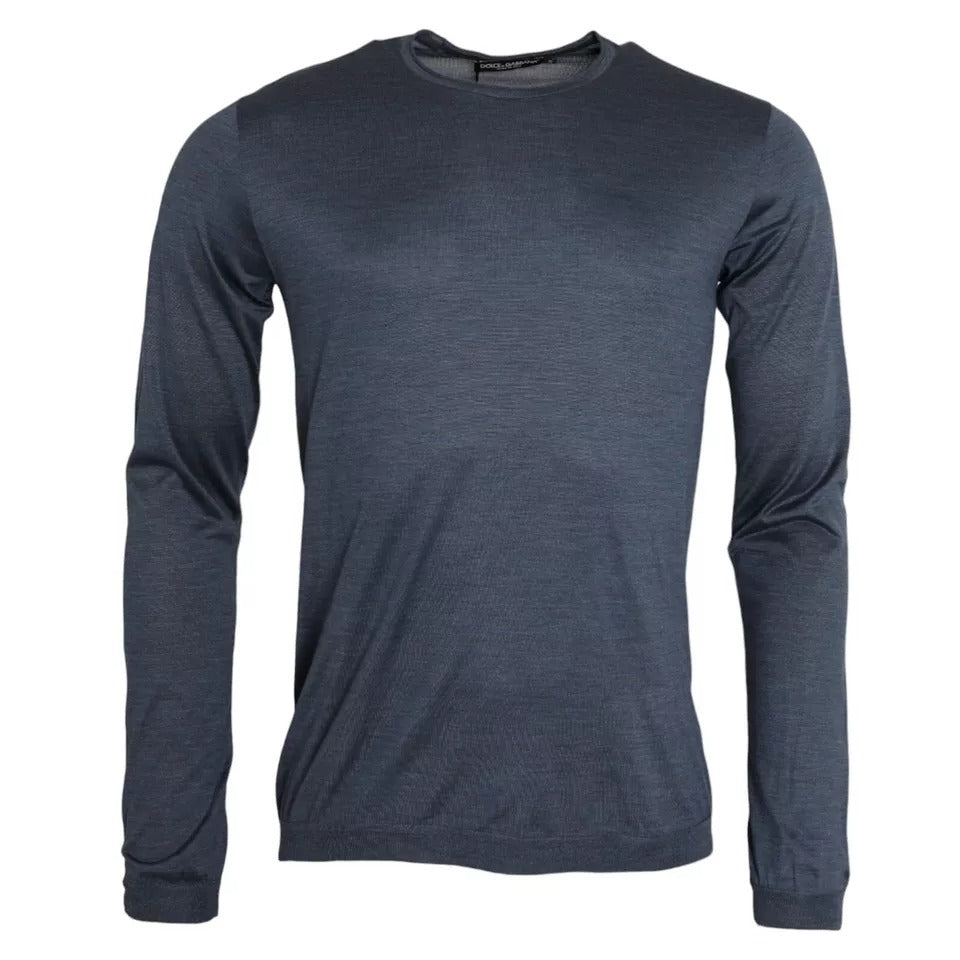 Dark Blue Silk Round Neck Pullover Sweater