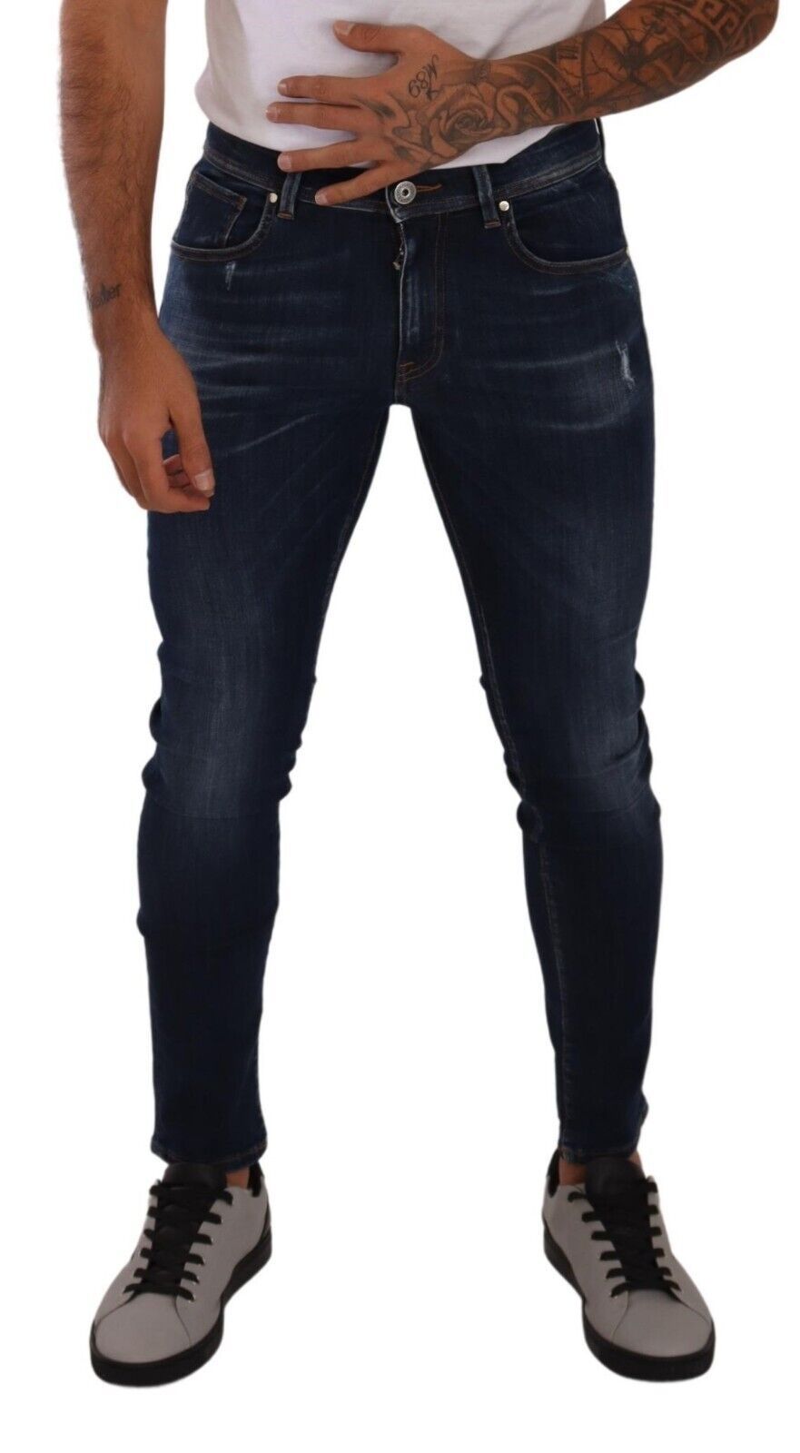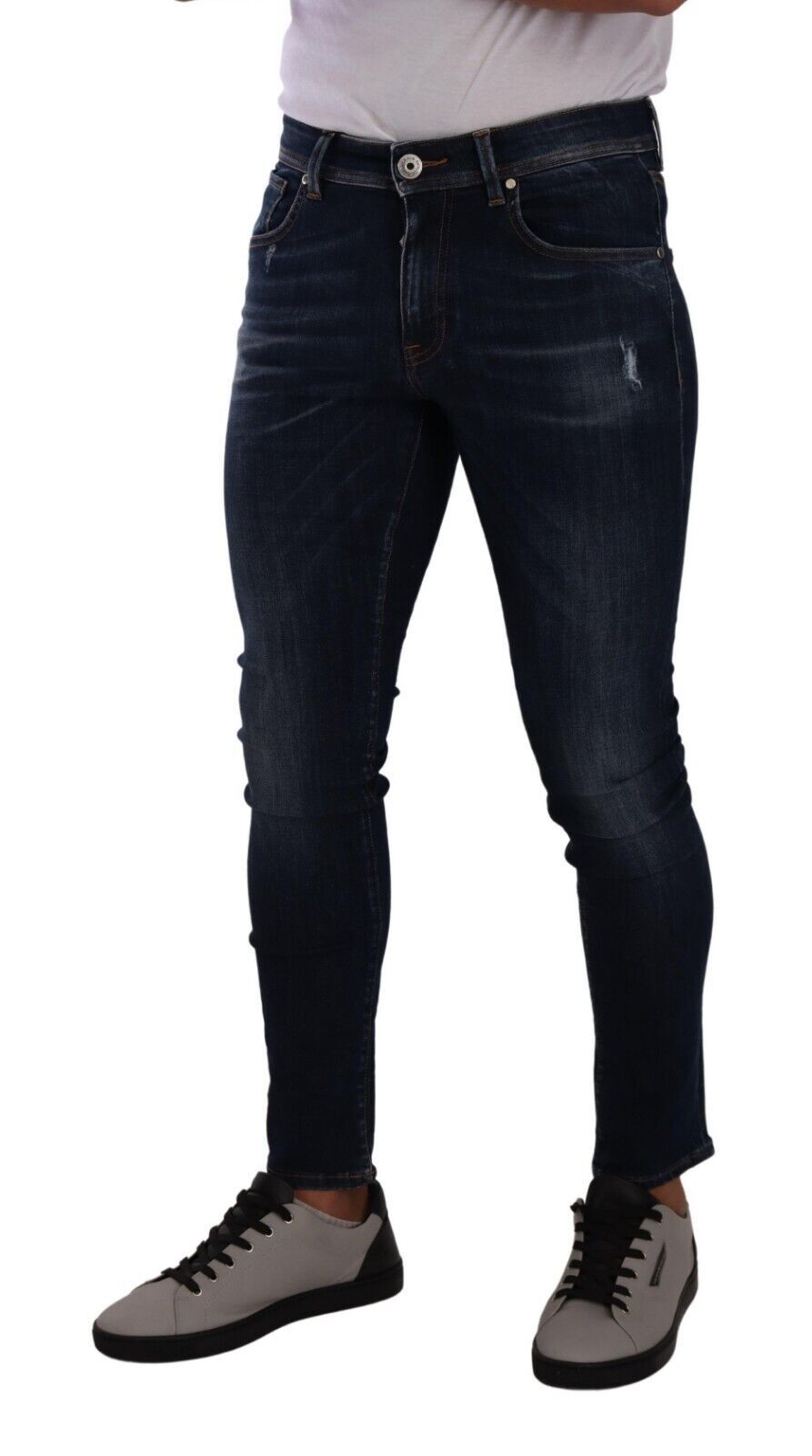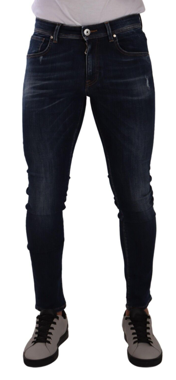Discover the epitome of Italian craftsmanship with these luxurious Dolce & Gabbana slim fit denim jeans. Perfectly tailored to flatter your silhouette, they boast a stylish dark blue wash complemented by a classic zipper and button closure. These denim trousers are not only a wardrobe staple but also a testament to your impeccable taste in fashion. Logo details add a subtle nod to the brand’s prestigious heritage, making them an authentic designer piece to cherish.