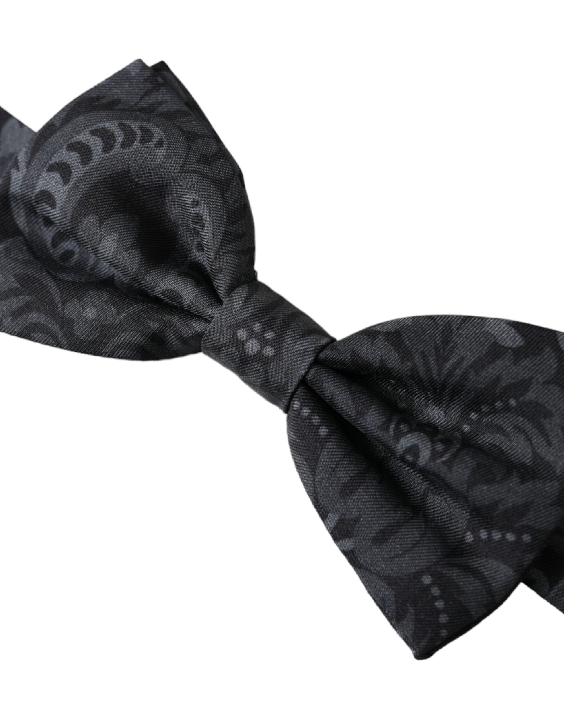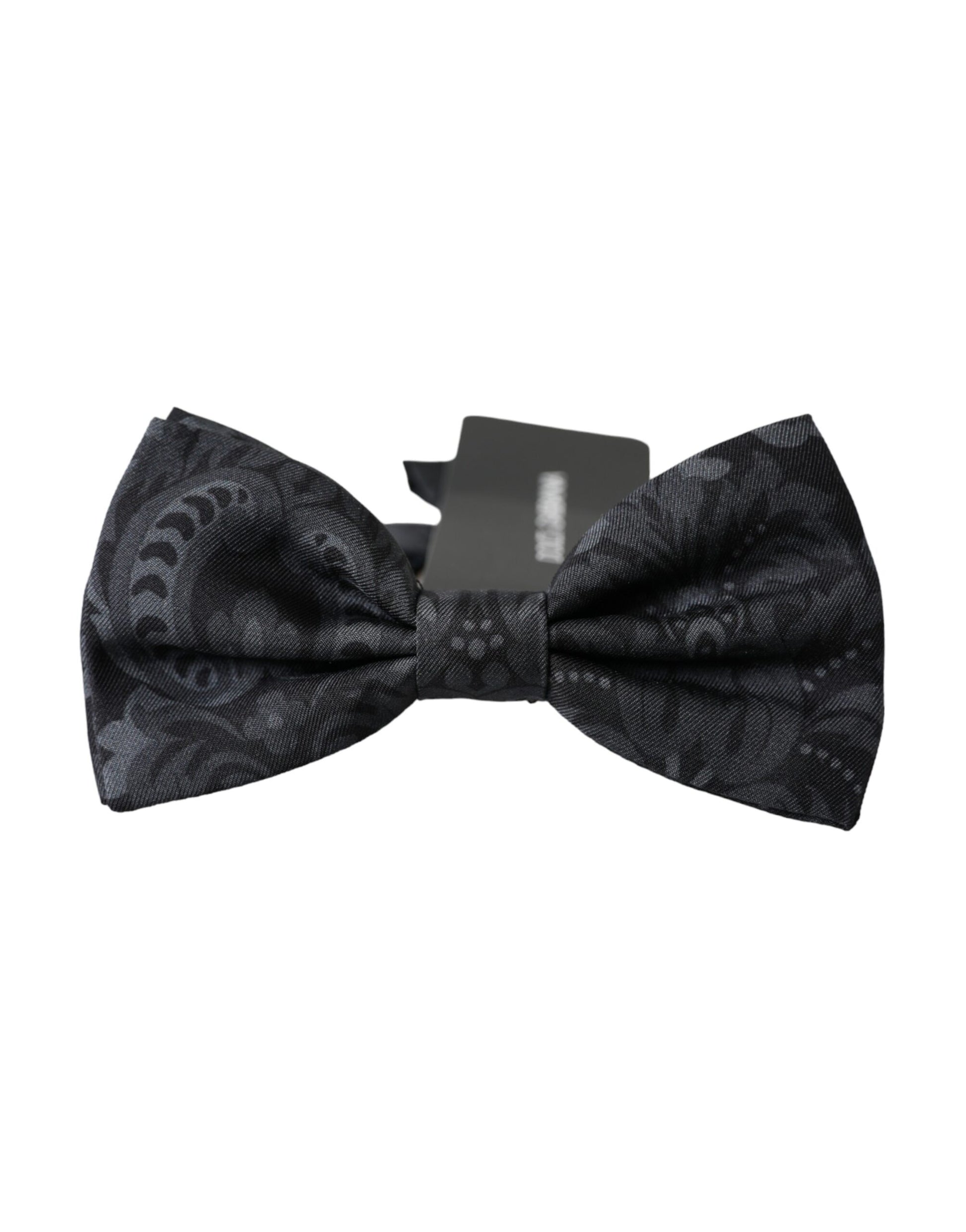 Dark Gray Silk Patterned Adjustable Men Bow Tie