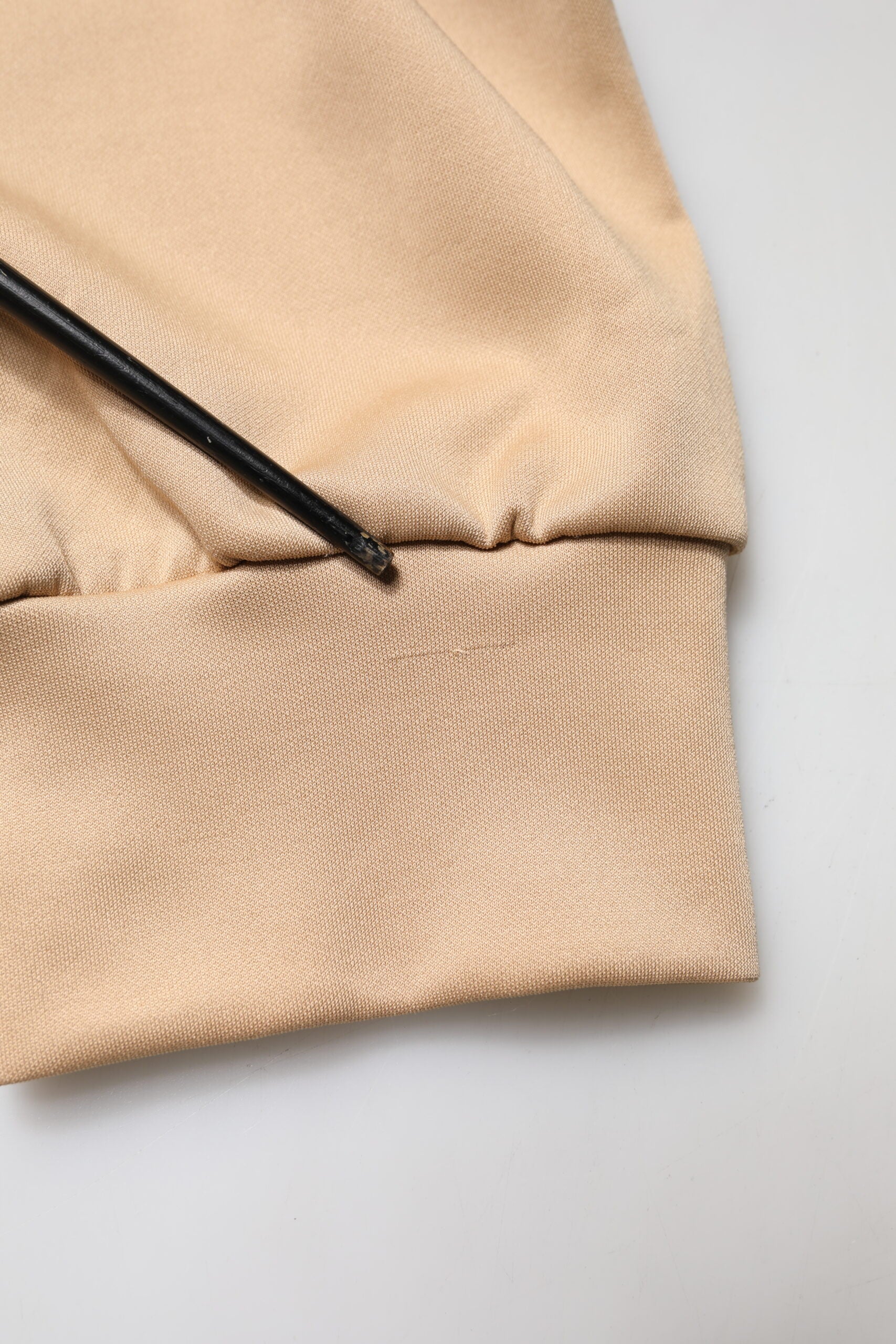 This item has a minor defect, there are pulled threads and stains on the sleeves (see pictures for details).