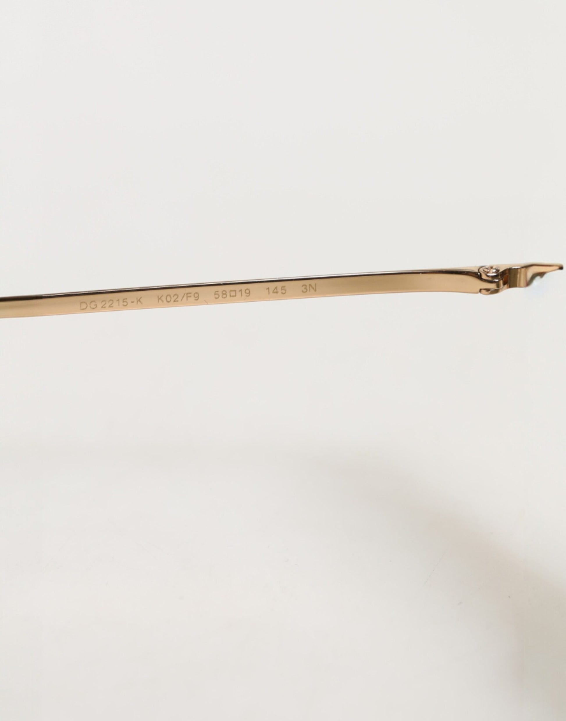 DG2215K sunglasses, featuring a sleek gold plated frame and round lenses for a modern yet timeless look. Designed with luxury detailing and superior craftsmanship, these shades offer both elegance and eye protection, making them the perfect accessory for any occasion.