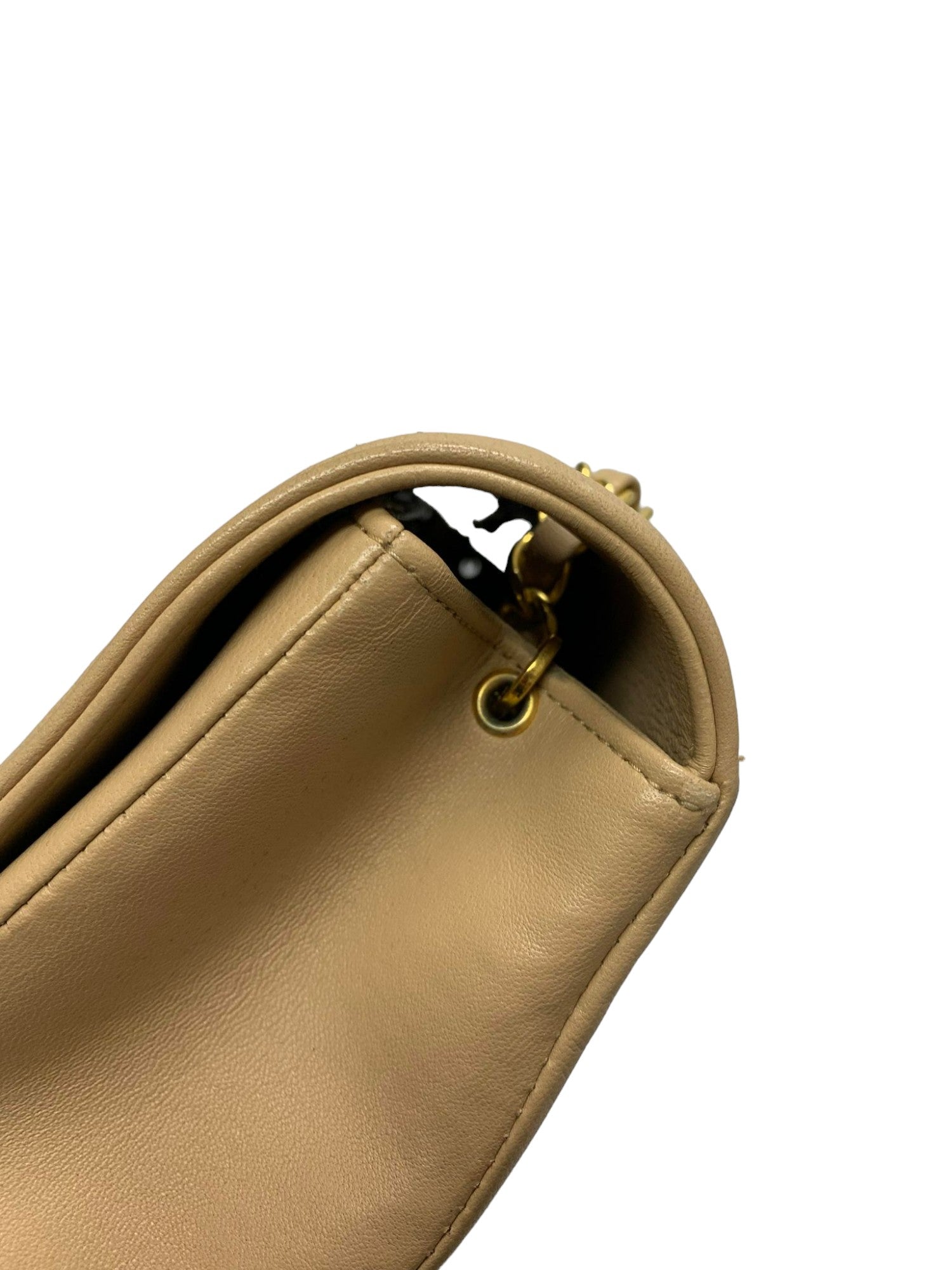 - Exquisite Craftsmanship: Meticulously crafted from supple beige lambskin, this bag showcases the classic quilted design synonymous with luxury and elegance.