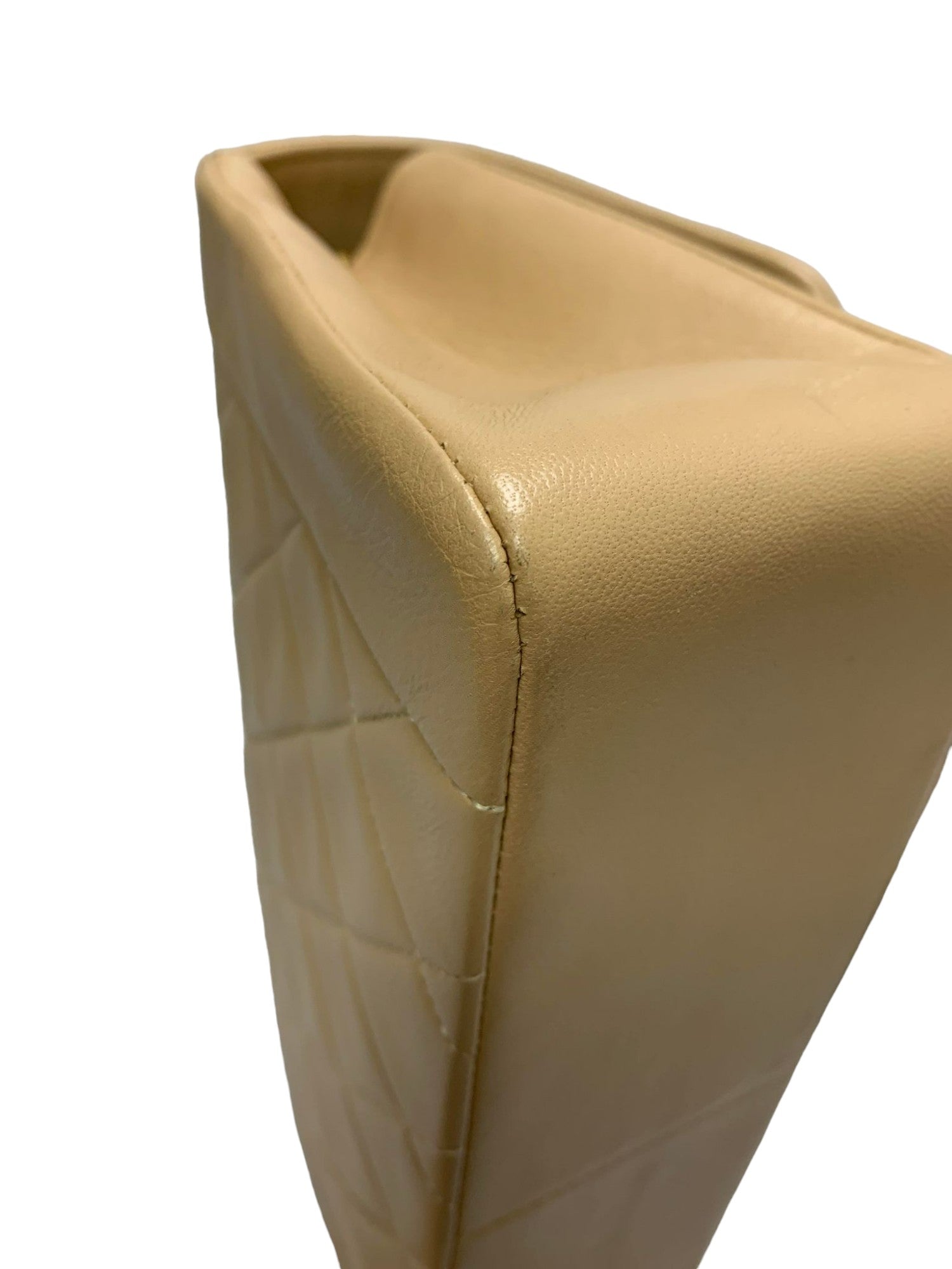 Exquisite Craftsmanship: Meticulously crafted from supple beige lambskin, this bag showcases the classic quilted design synonymous with luxury and elegance.