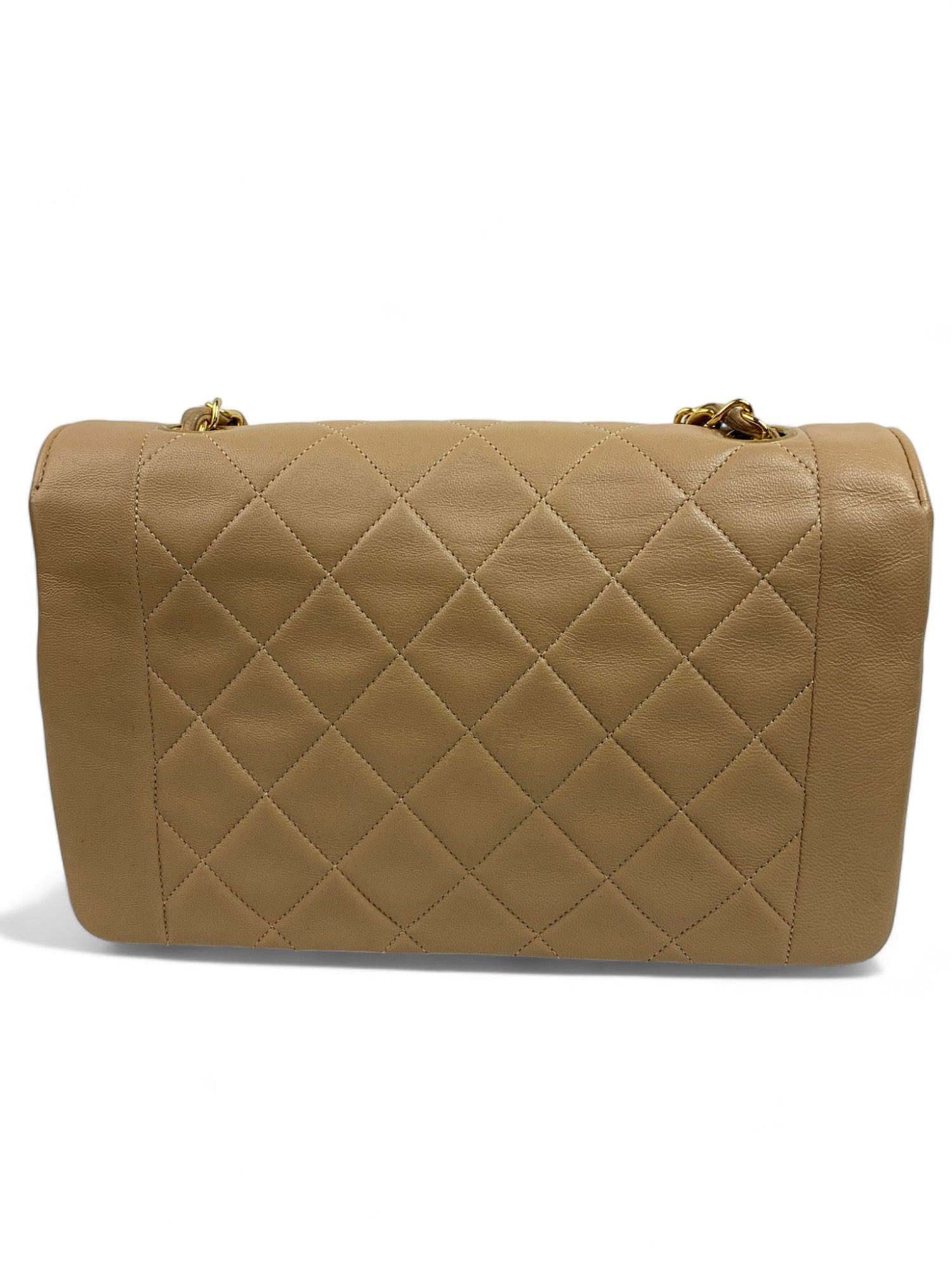 Elevate your style with the Diana Vintage Medium Beige Classic Quilted Lambskin handbag. Secure this exclusive piece today and add a touch of timeless luxury to your collection.