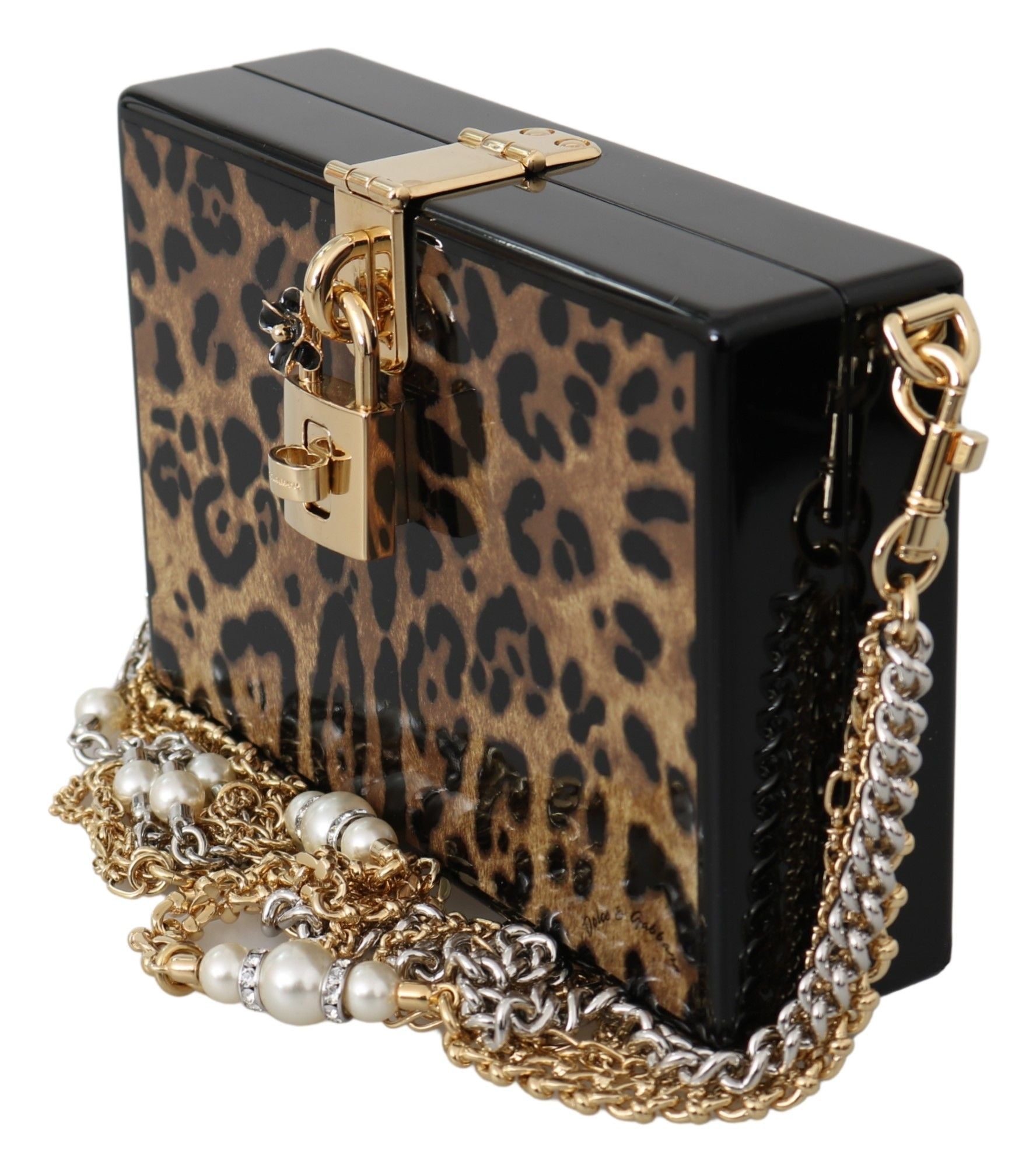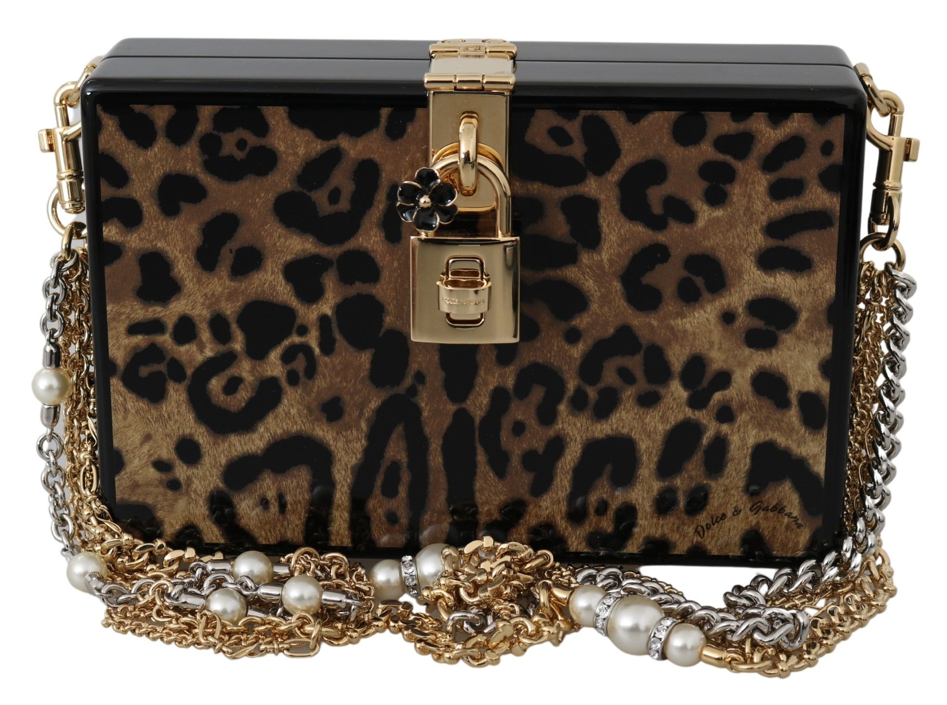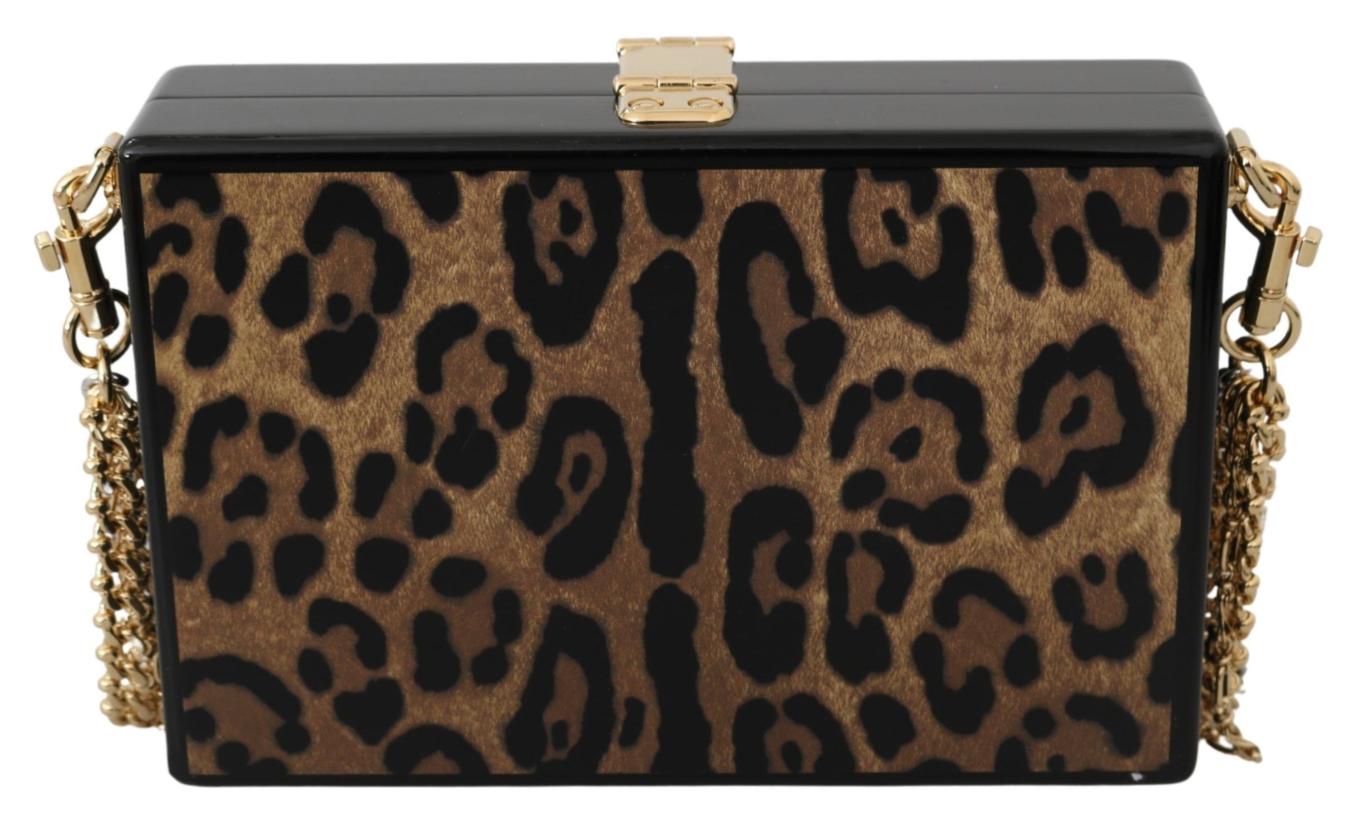 Dolce & Gabbana Brown Leopard Women Shoulder BOX Wood Women's Bag