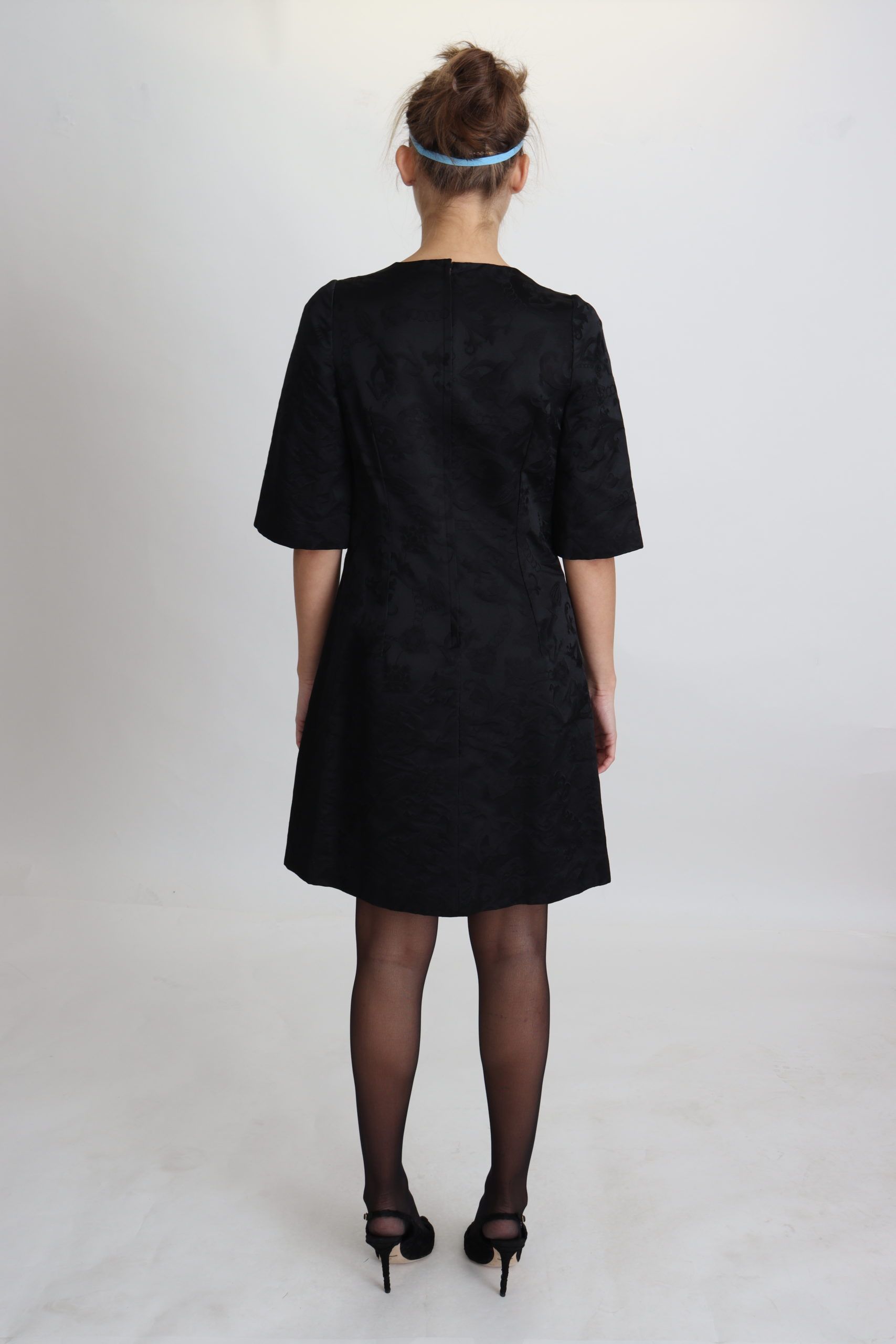 Infuse your wardrobe with a touch of Italian elegance with this Dolce & Gabbana knee-length dress. Crafted with care, this A-line piece features exquisite floral jacquard detailing, offering a luxurious blend of cotton and silk that ensures both comfort and sophistication. Perfect for any occasion, it’s finished with a concealed back zip and subtle logo details for a touch of brand prestige. Made in Italy, this dress promises to be an enduring addition to any fashion connoisseur’s collection.