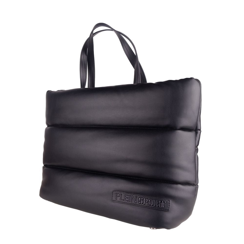 Step out in style with this sophisticated Plein Sport shopper bag, perfect for those who appreciate a blend of luxury and practicality. Crafted from high-quality padded eco-leather in a classic black hue, this accessory boasts both elegance and durability. The spacious interior, secured by a zip closure, features internal pockets to organize your essentials with ease. Ideal for a day out or a polished office look, this bag measures a versatile 42x30x10 cm, making it a must-have for any fashion-forward collection.