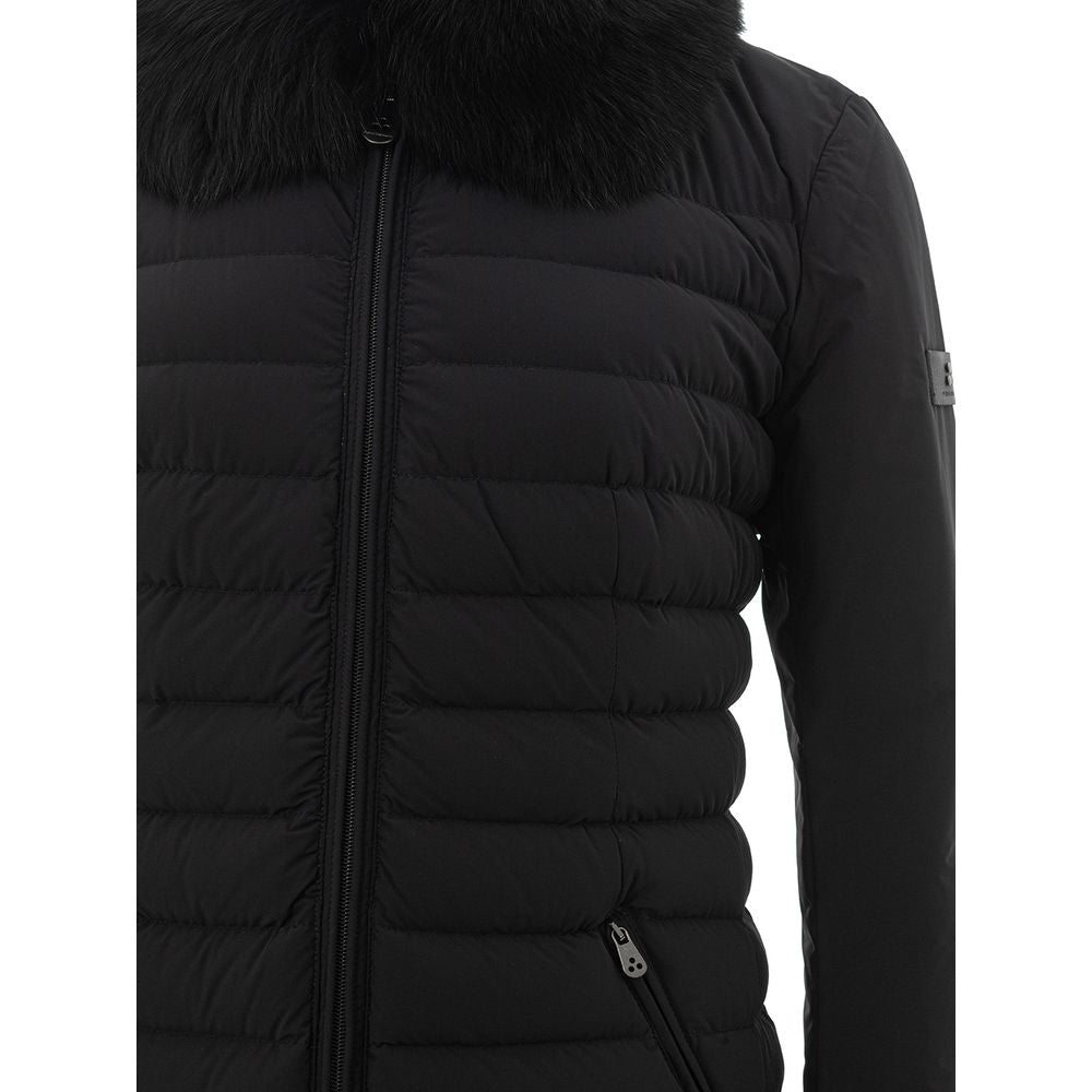 Discover the epitome of chic functionality with Peuterey’s sleek black jacket. Crafted from high-quality polyamide, this outerwear is a testament to the brand’s commitment to superior craftsmanship and style. Designed to withstand the elements while maintaining a polished look, it’s perfect for the fashion-forward individual on the go.