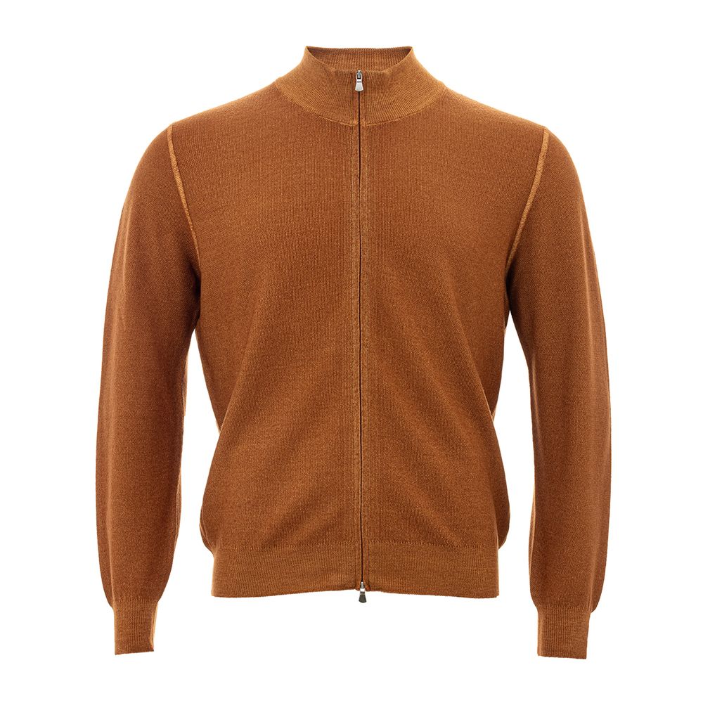 Indulge in the essence of Italian craftsmanship with this sumptuous Gran Sasso wool cardigan. Perfect for adding a pop of color and sophistication to any gentleman’s wardrobe, this orange cardigan combines timeless elegance with contemporary style. Its luxurious wool composition ensures warmth and comfort, making it an essential piece for any season.