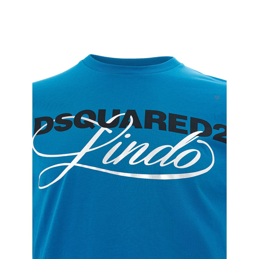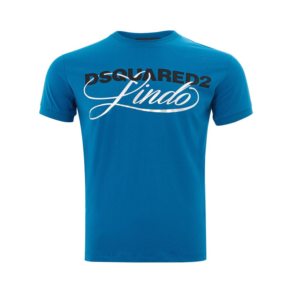 Experience the perfect blend of premium comfort and sleek style with our chic blue crew neck t-shirt. Crafted from the finest cotton for a soft touch that lasts all day long. Designed by the iconic fashion house Dsquared², this tee is as versatile as it is fashionable, seamlessly fitting into your everyday wardrobe.