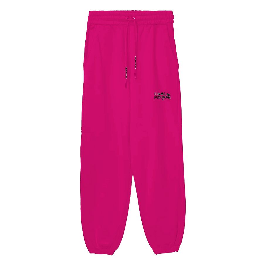 Step into the world of statement fashion with these audacious ‘Comme des Fuckdown’ sweatpants. Crafted from premium 100% cotton for ultimate comfort, these Italian-made pants showcase the brand’s rebellious spirit through its bold front print. Vibrant in fuchsia, the design features practical side pockets and a snug drawstring waist, ensuring both style and function meet with a hustler’s attitude. Dare to defy conventions with ‘Comme des Fuckdown’.