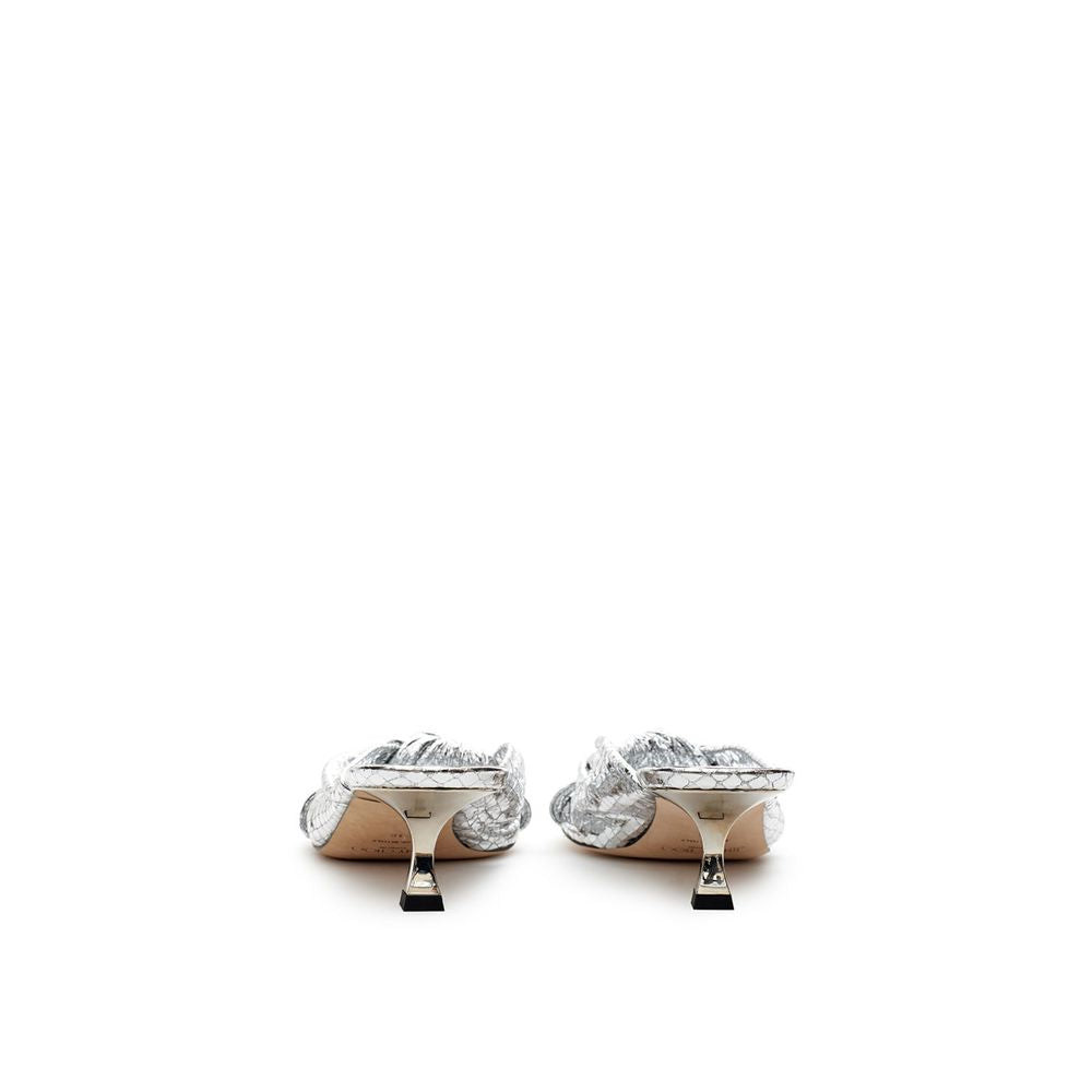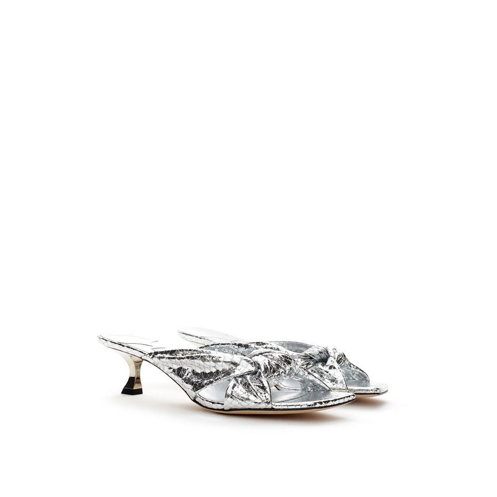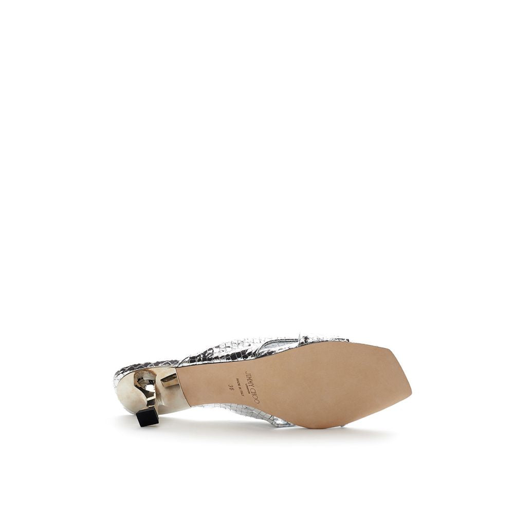 Step into luxury with these exquisite silver leather sandals from the renowned designer Jimmy Choo. Perfect for adding a touch of sophistication to any ensemble, these sandals are a true emblem of high fashion and impeccable craftsmanship.
