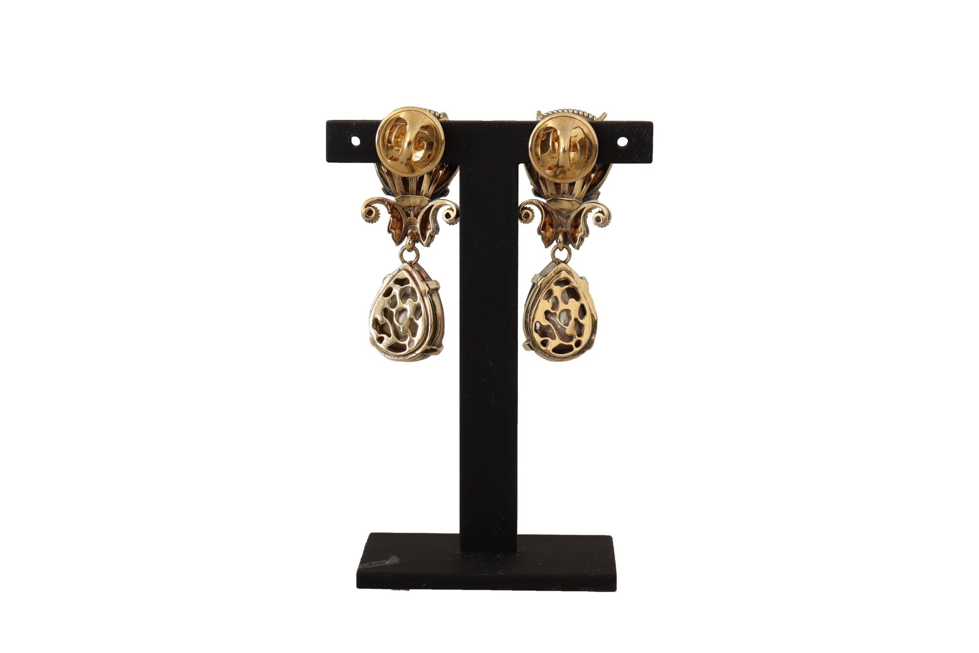 Indulge in the opulence of Dolce & Gabbana with our stunning new earrings, a dazzling fusion of luxury and elegance. Perfect for your next high-profile event, these earrings boast a sumptuous gold plating over 925 sterling silver, lavishly adorned with sparkling crystals. Delight in the exquisite craftsmanship as you accentuate your ensemble with the lavish pink crystal teardrop pendants, assured to capture the light and admiration from every angle.