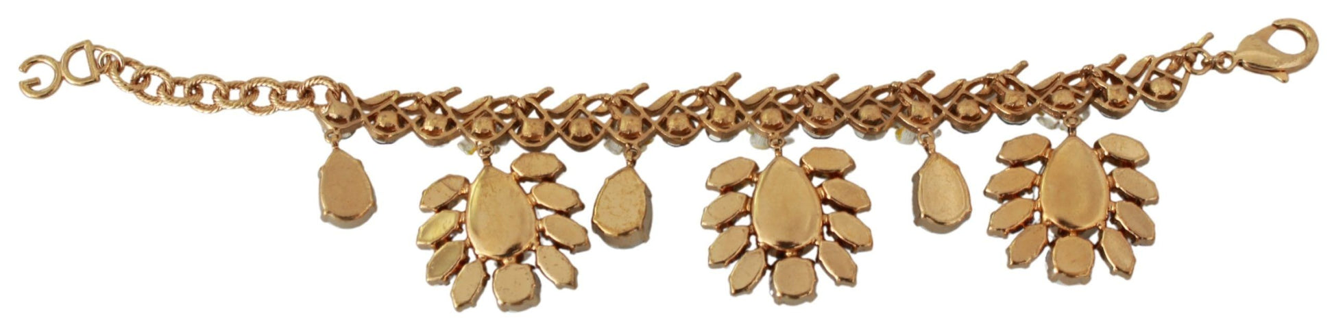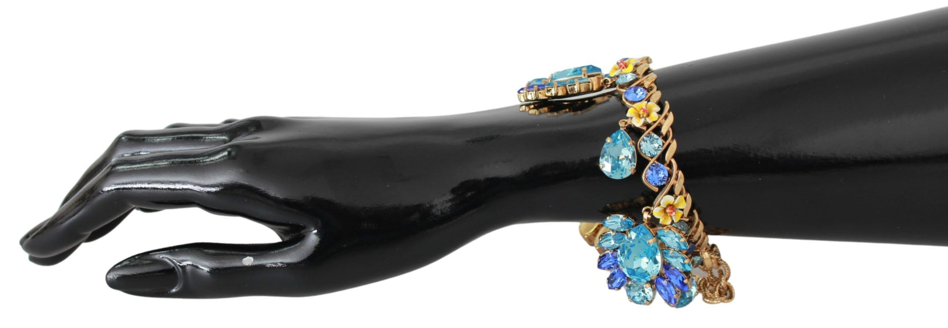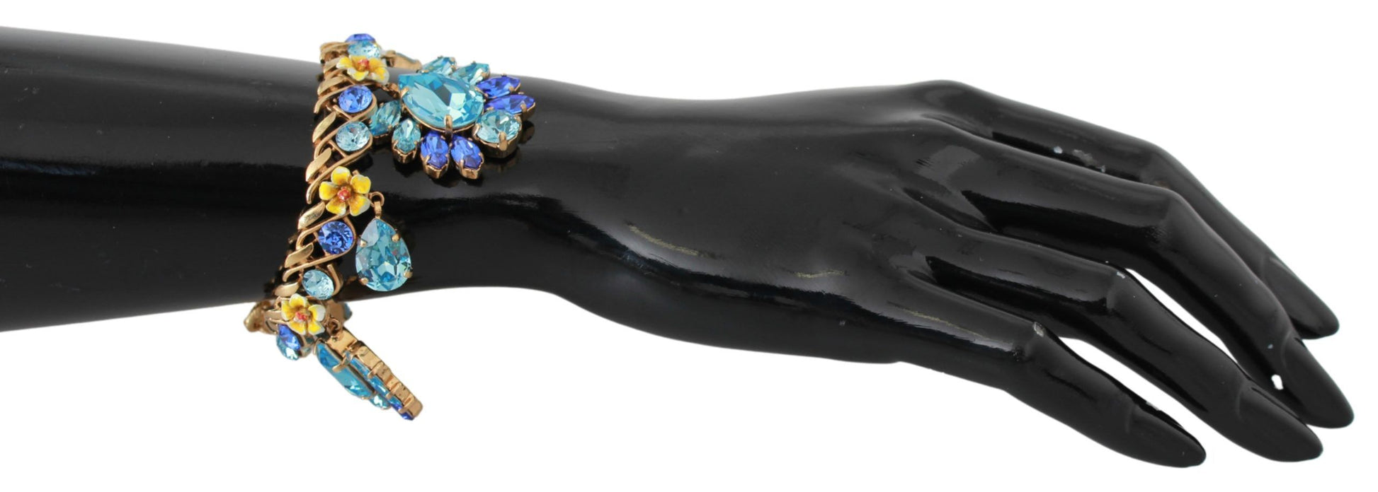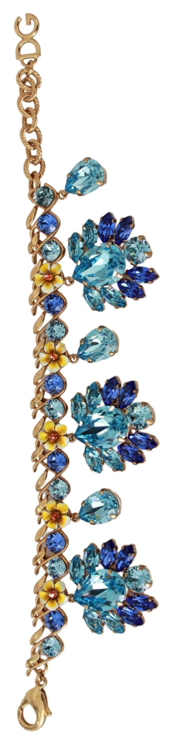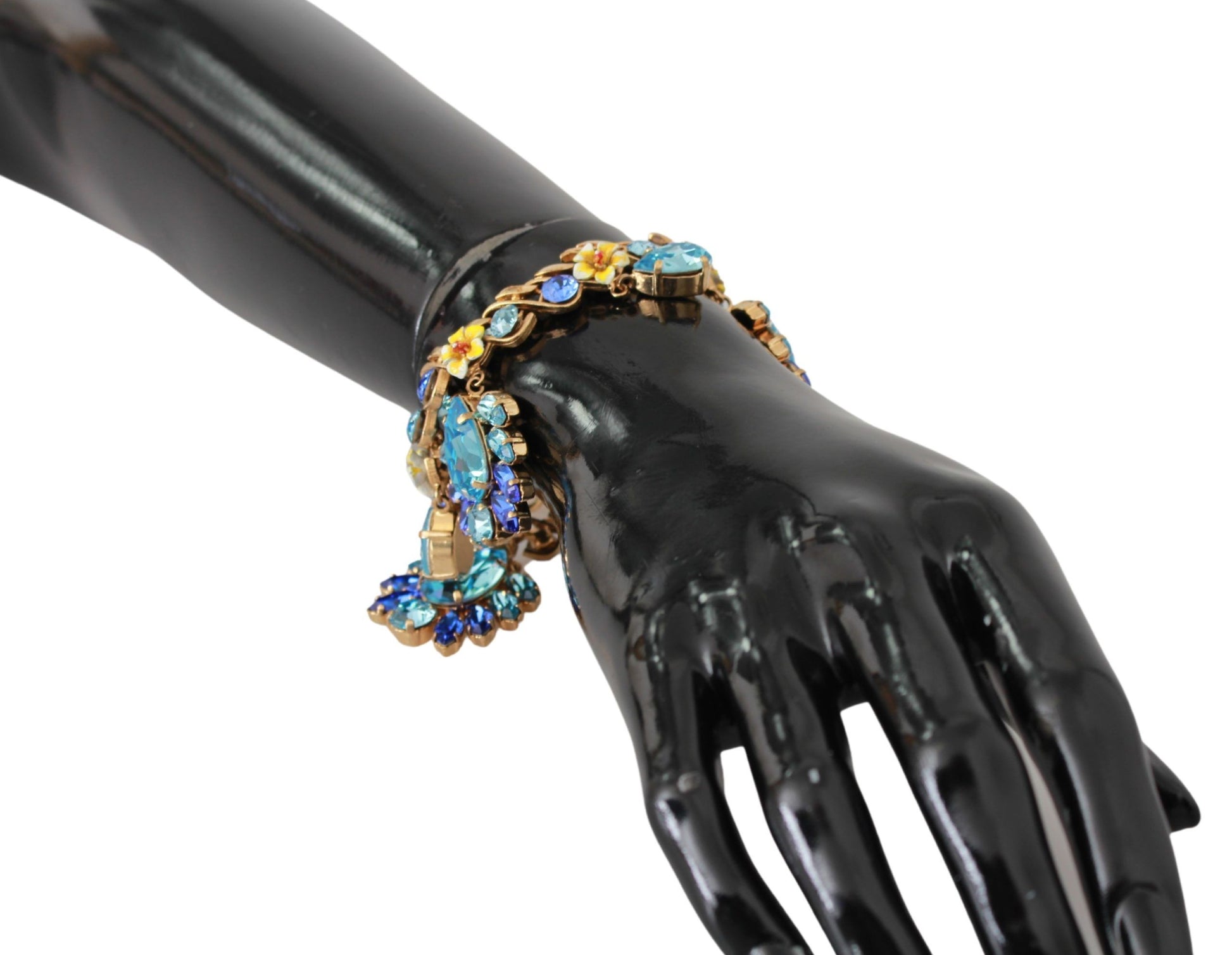 Indulge in the opulence of Dolce & Gabbana with this stunning gold and blue chain bracelet, embellished with sparkling crystals and charms that exude sophistication. A perfect piece for the woman with a penchant for luxury, this bracelet adds an exquisite touch to any ensemble. Crafted with elegance in Italy, it’s a statement of high-end fashion finesse.