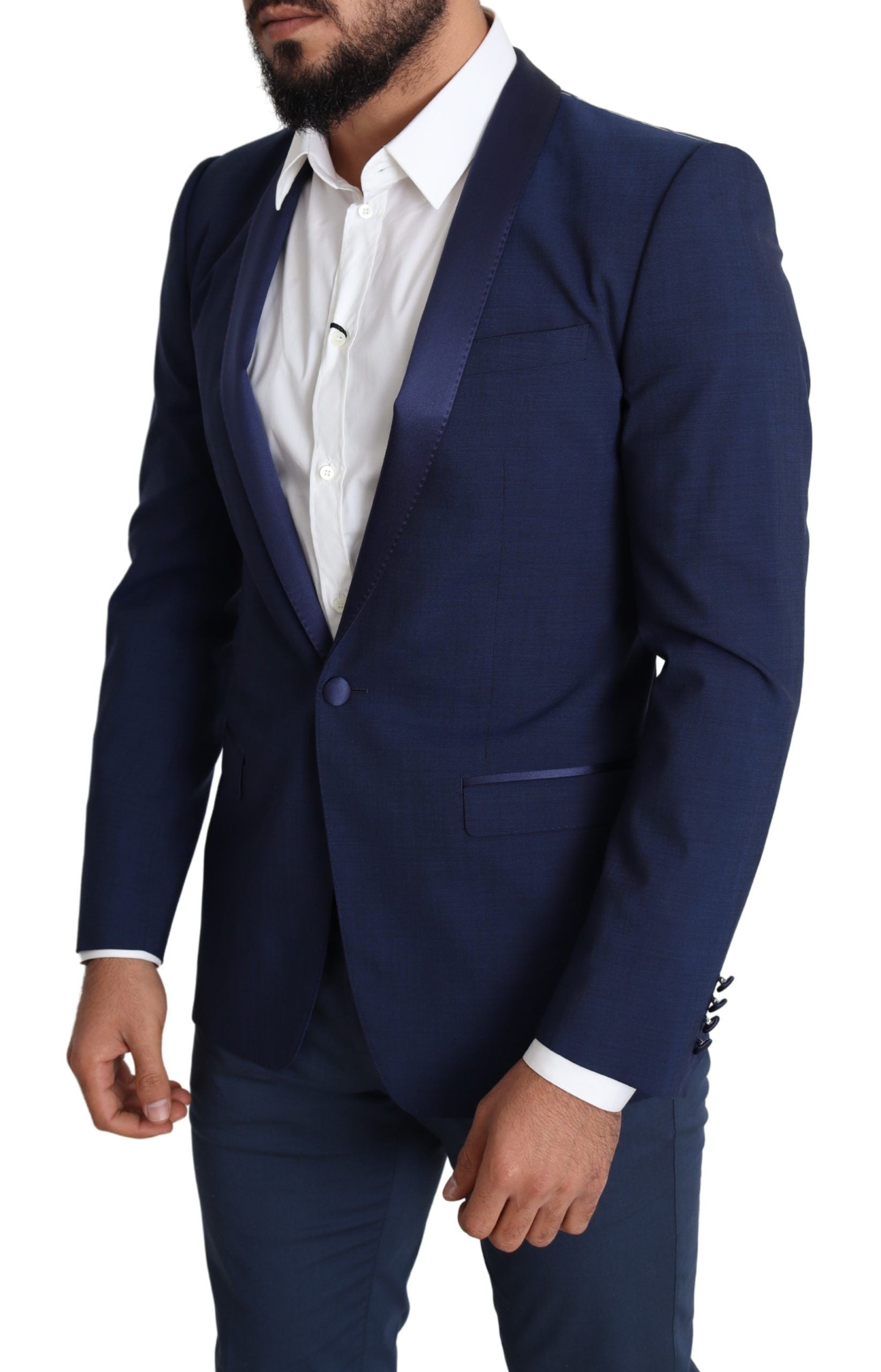 Elevate your wardrobe with this exquisite Dolce & Gabbana blazer jacket. Crafted from a luxurious blend of virgin wool, polyester, silk, and elastane, this blue slim-fit jacket features a sophisticated one-button single-breasted style. Impeccably designed with three outer pockets, three inner pockets, an open vent in the back, and detailed with the brand’s signature logo, it merges style with functionality, making it a perfect piece for formal occasions. Tailored in Italy, this jacket exemplifies exceptional craftsmanship and an exclusive appeal.