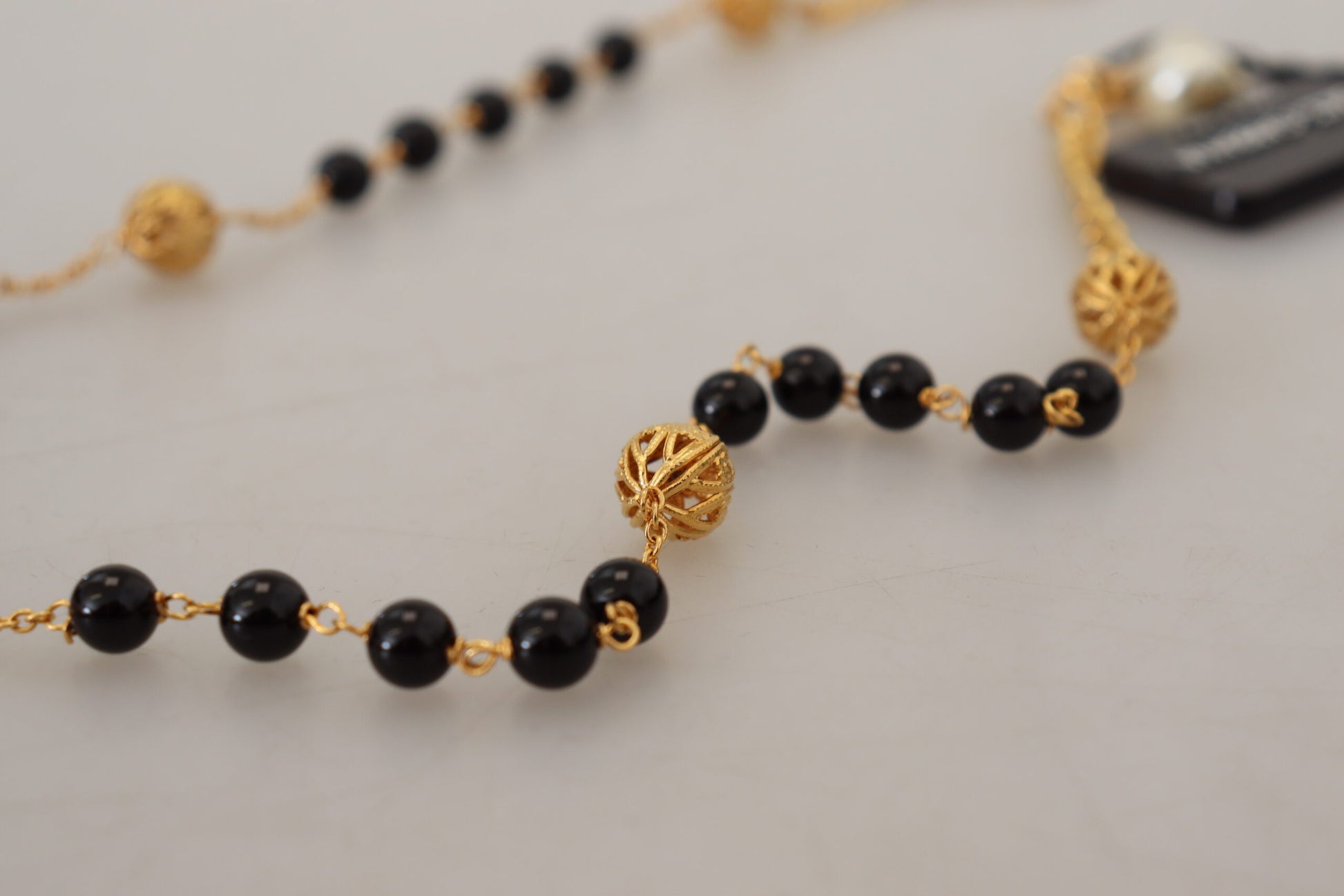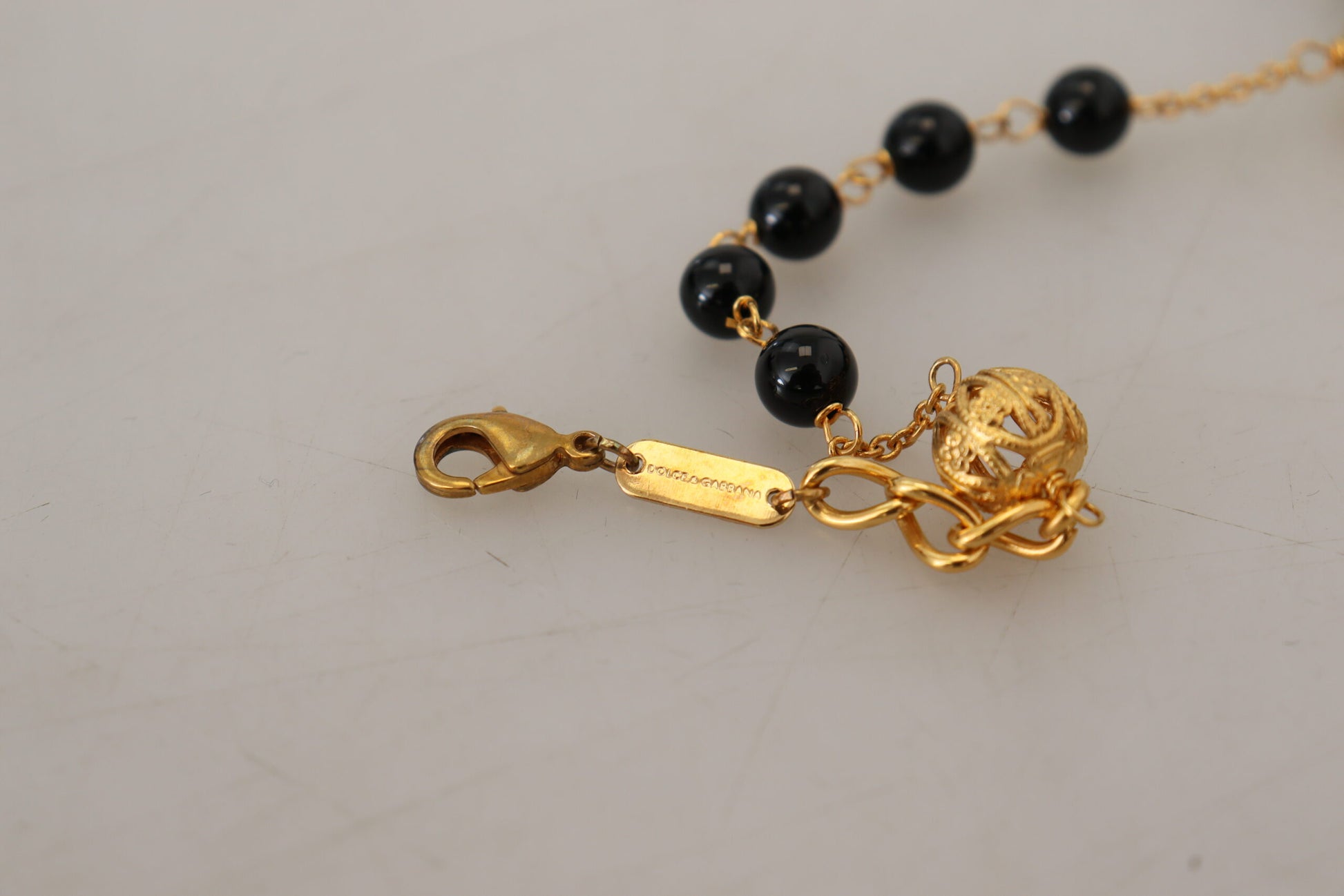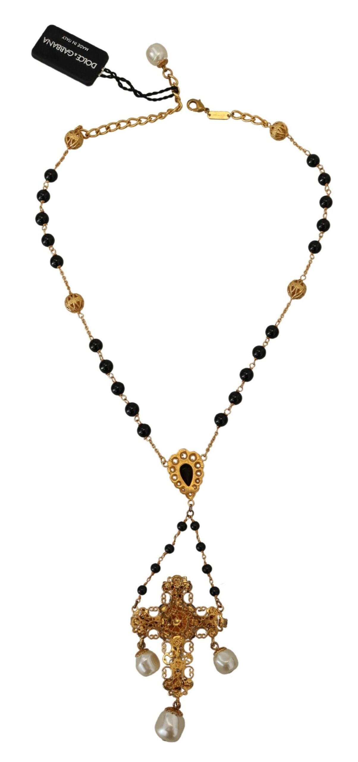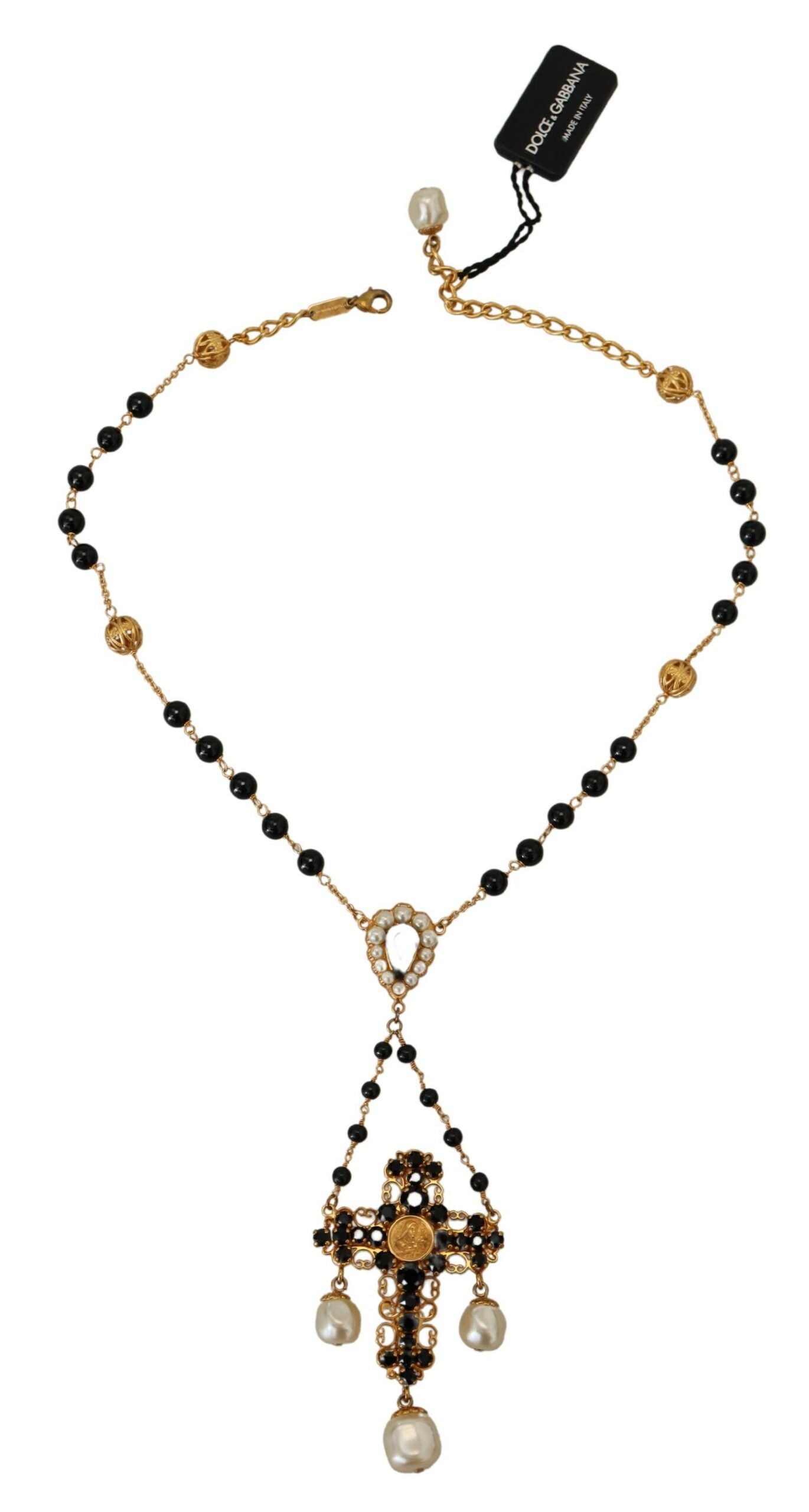 Enrich your ensemble with the divine elegance of this stunning Charm Cross necklace from the esteemed house of Dolce & Gabbana. This opulent piece features a dazzling crystal cross pendant that gracefully hangs from a lustrous gold-tone chain. Its exquisite craftsmanship is reflected in the blend of high-quality materials, making it a perfect accessory to elevate any look. With a comfortable lobster clasp closure and the iconic logo detail, this necklace embodies sophistication and luxury.