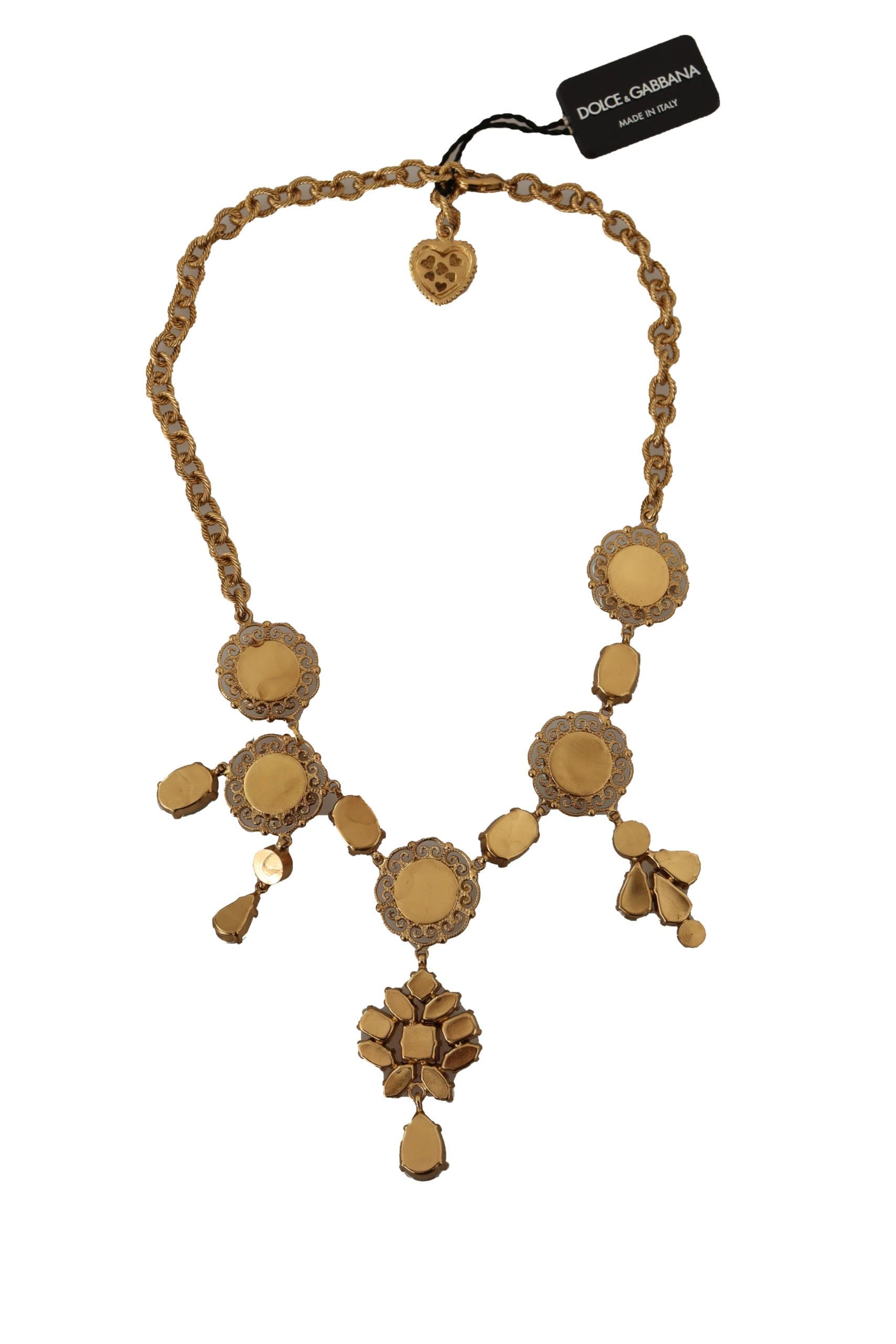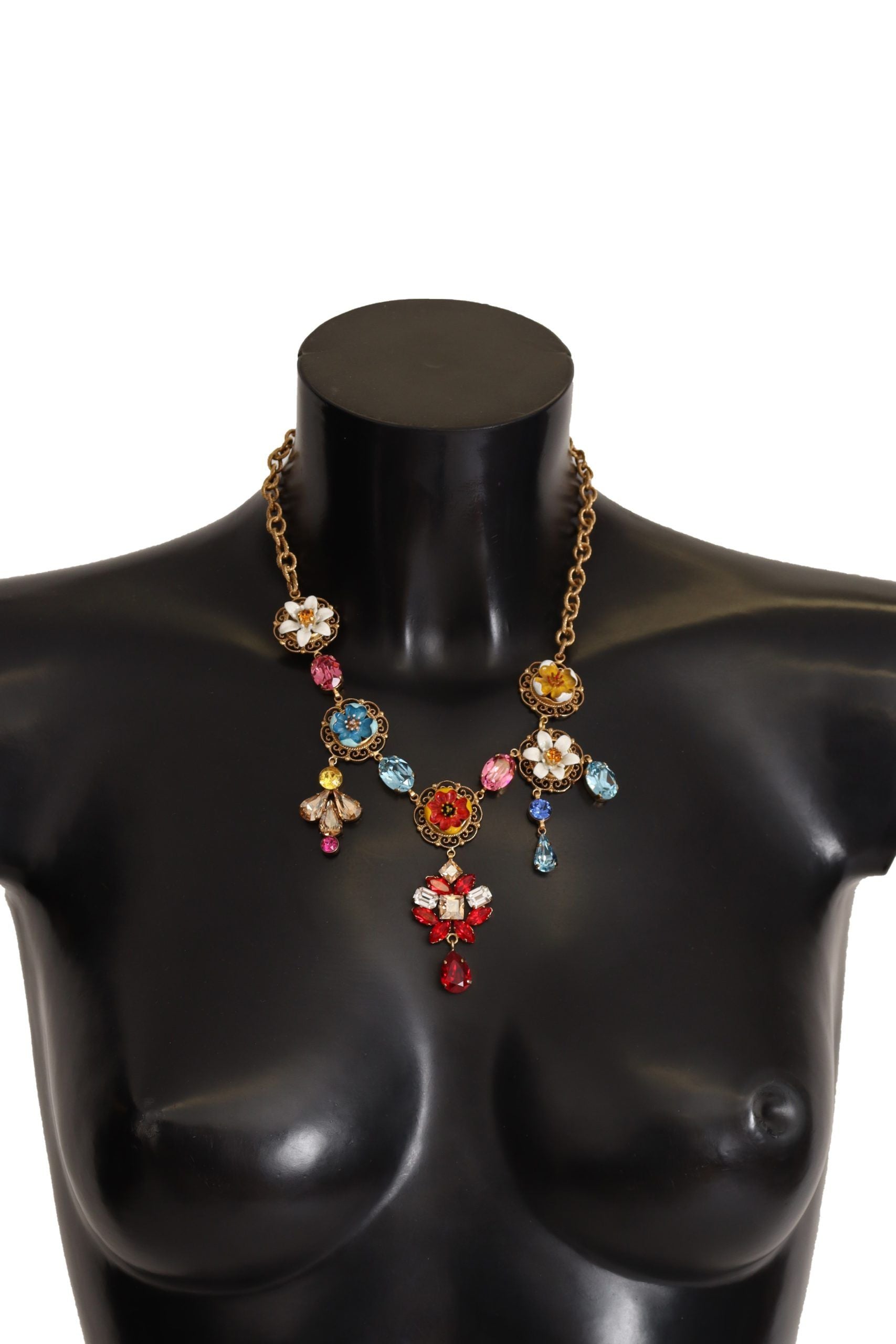 Adorn your neckline with the epitome of elegance, courtesy of this Dolce & Gabbana statement necklace. Impeccably crafted with floral motifs that evoke the lush landscapes of Sicily, this piece dazzles with the brilliance of real crystals and a luxurious gold-tone brass composition. A radiant addition to any ensemble, it’s a testament to enduring style and Italian artisan craftsmanship.