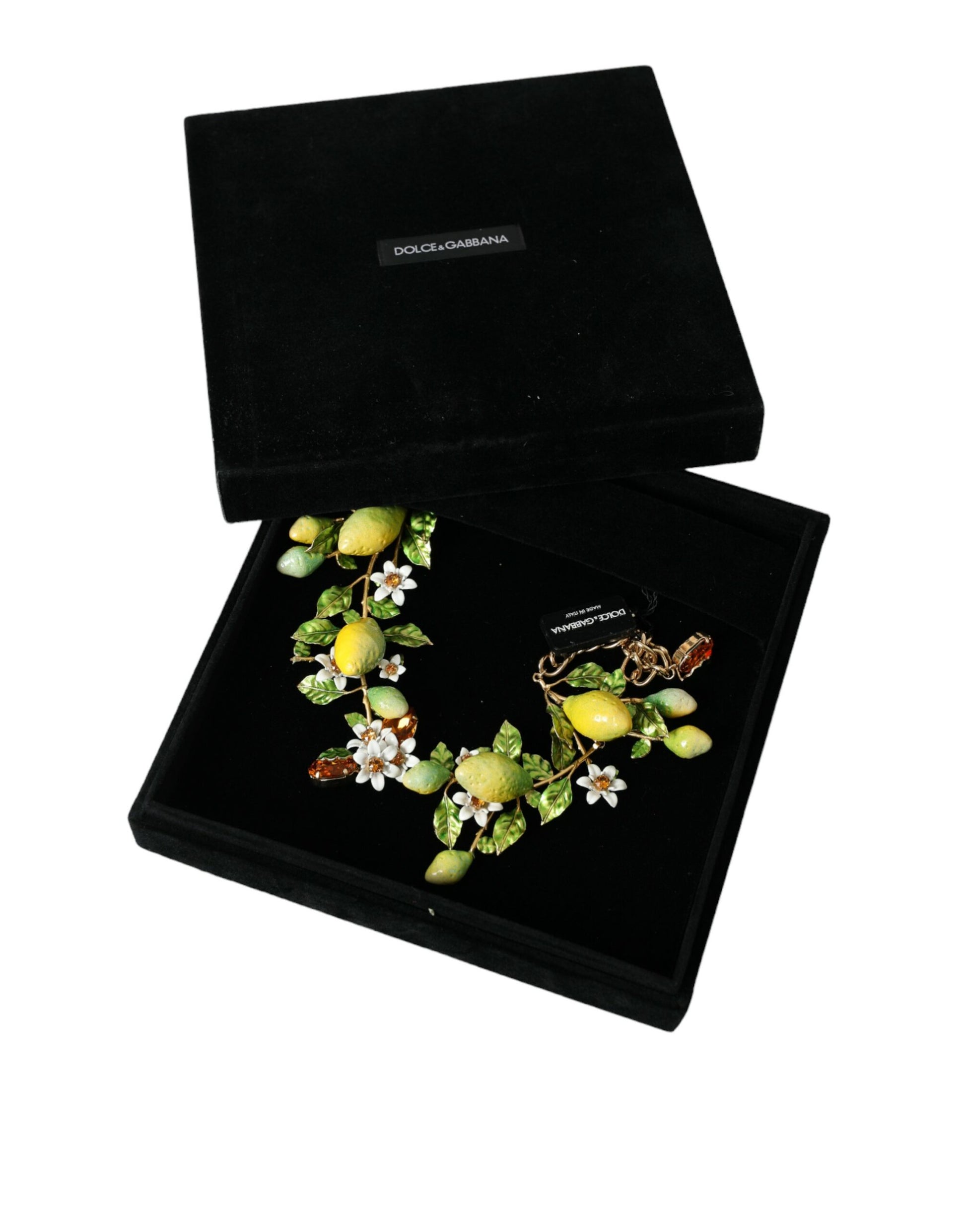 Gorgeous brand new with tags and box, 100% Authentic Dolce & Gabbana gold plated brass lemon appliques necklace.