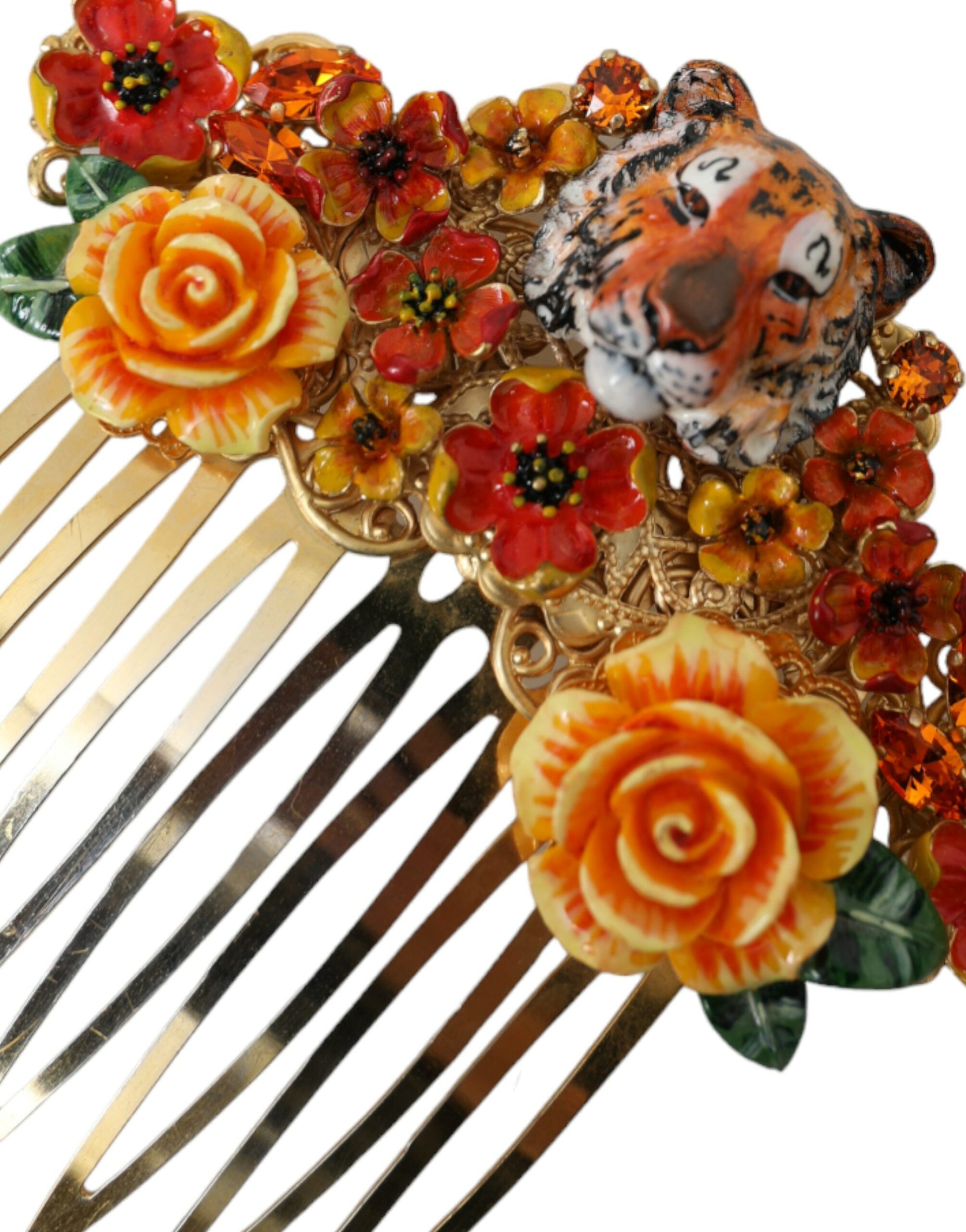 Gold Brass Crystal Leopard Floral Hair Comb