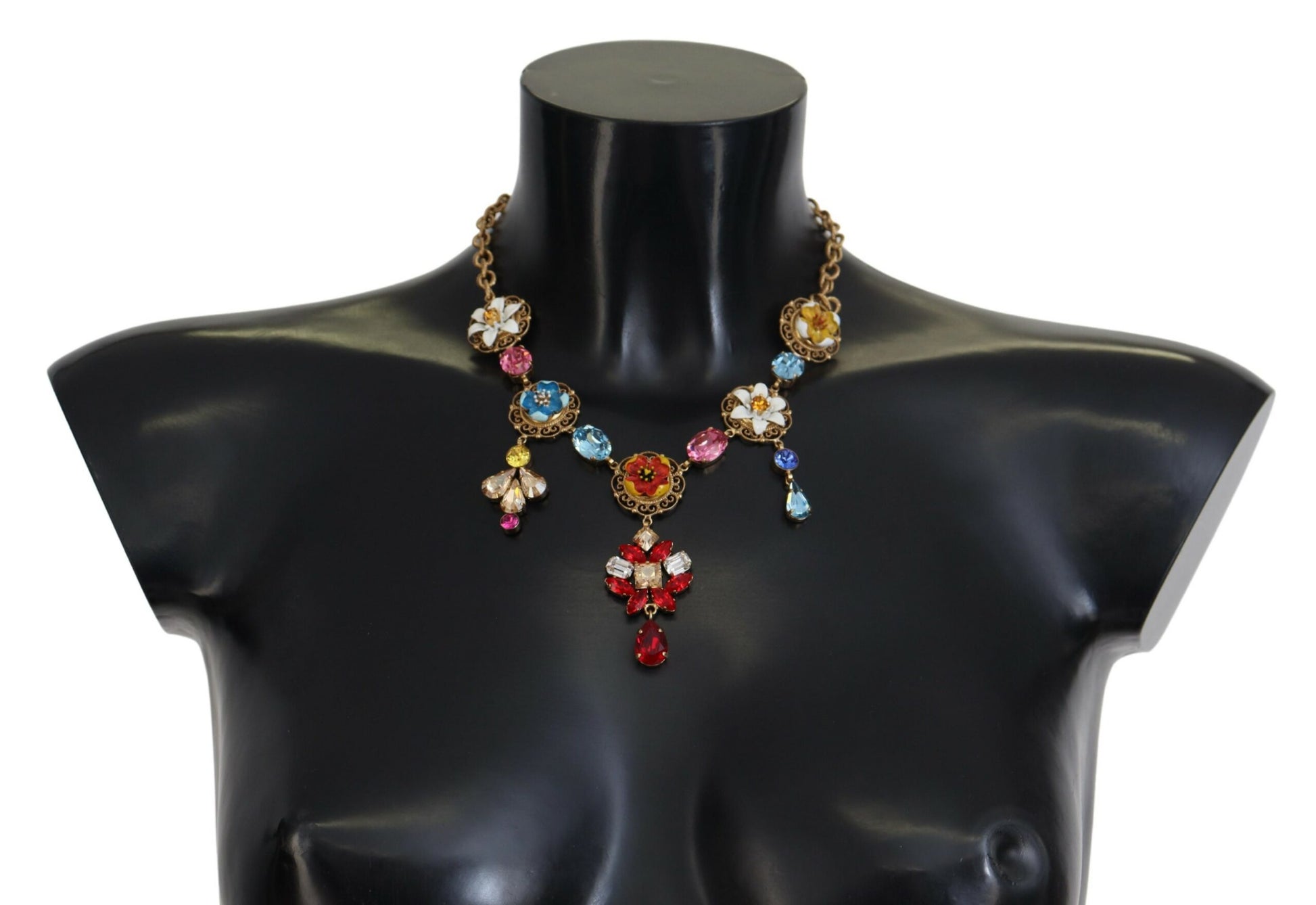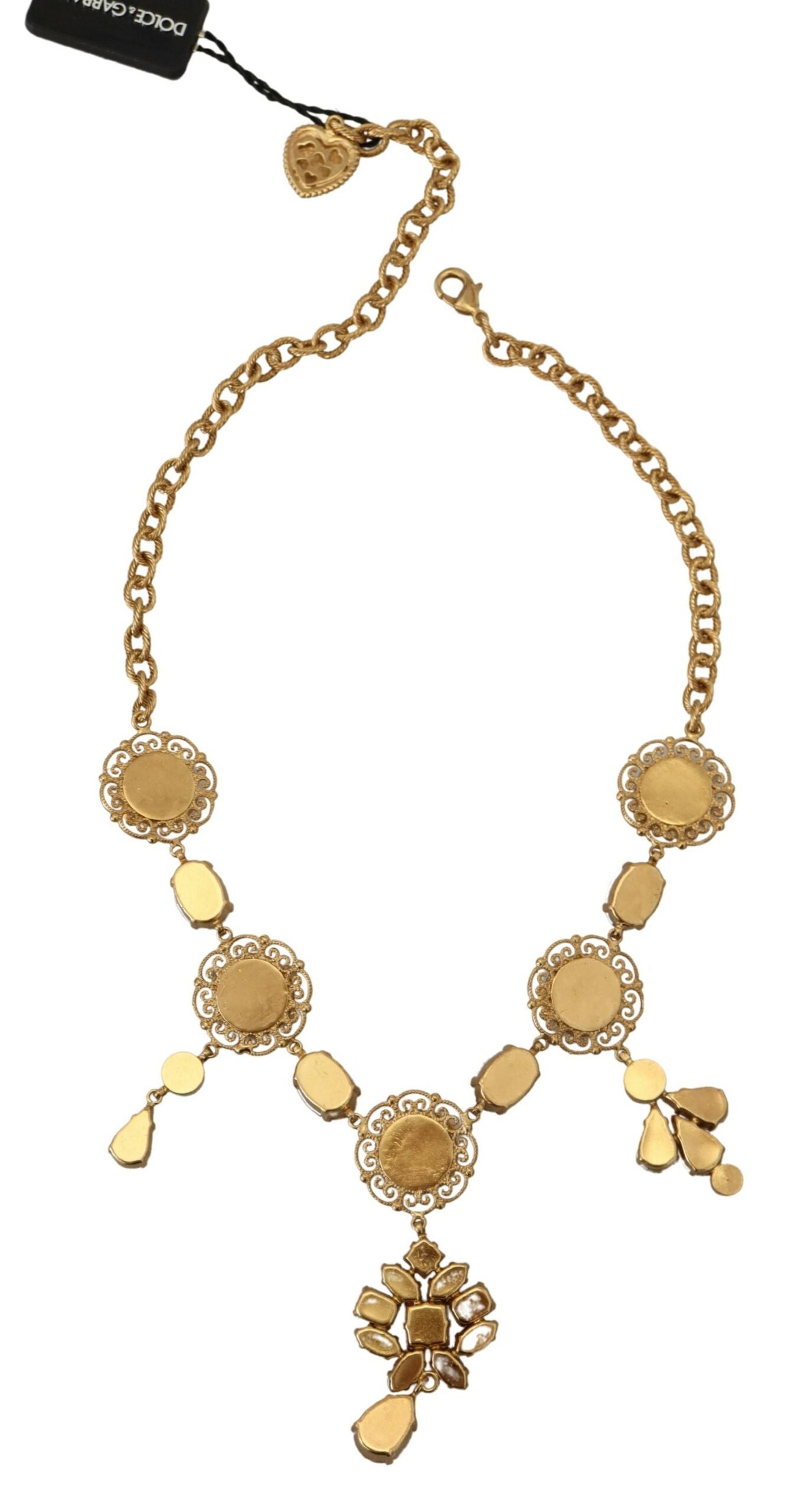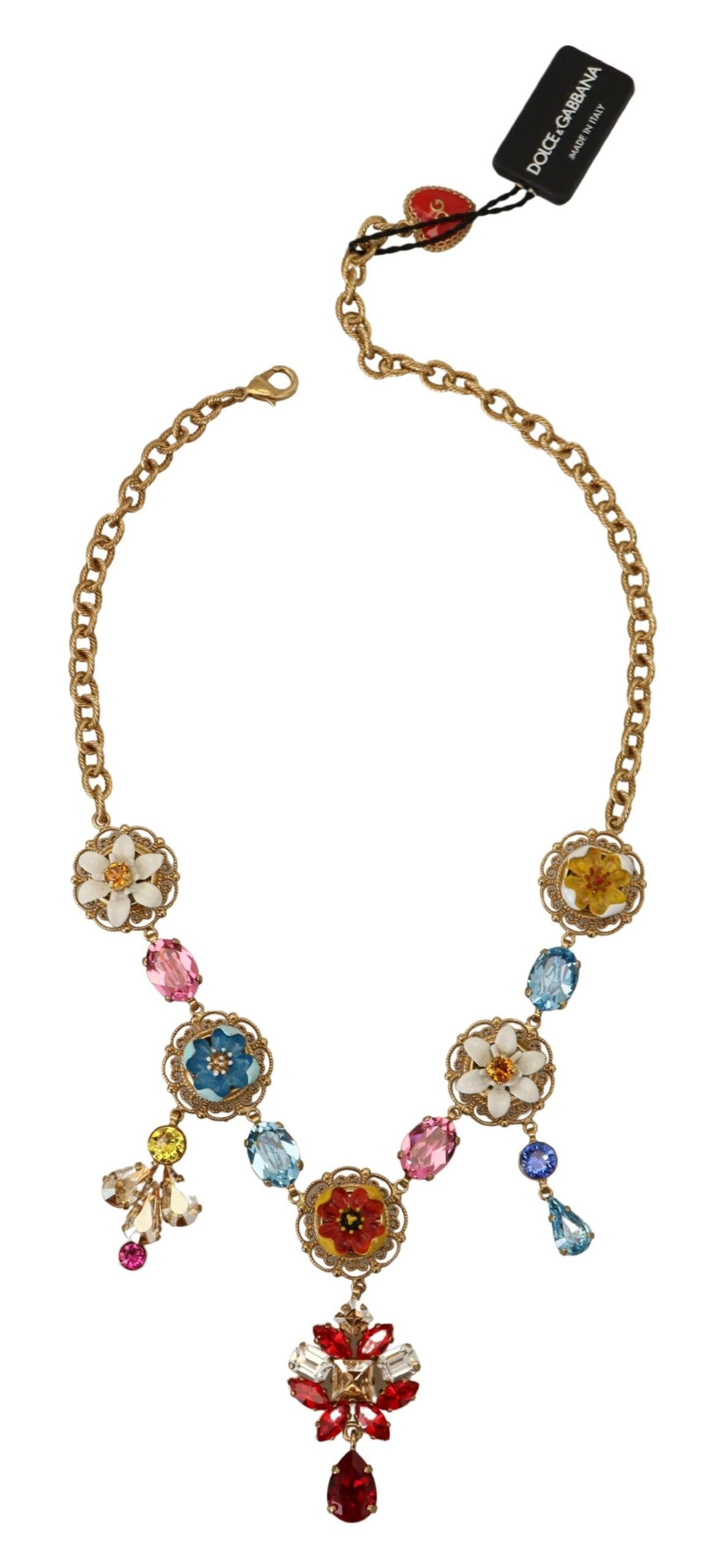 Adorn your neckline with the stunning opulence of a Dolce & Gabbana statement necklace. Featuring a dazzling blend of multicolor crystals set in a luxurious gold-tone brass, this piece transforms any ensemble into a standout look. Perfect for adding a touch of glamorous Italian craftsmanship to your jewelry collection.
