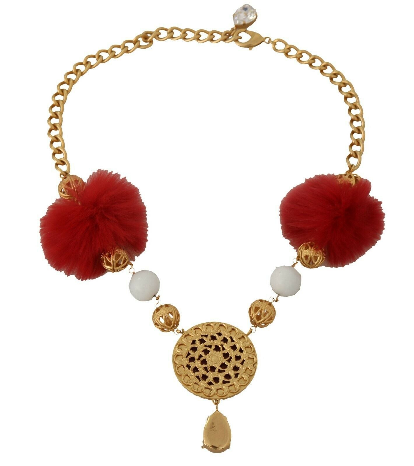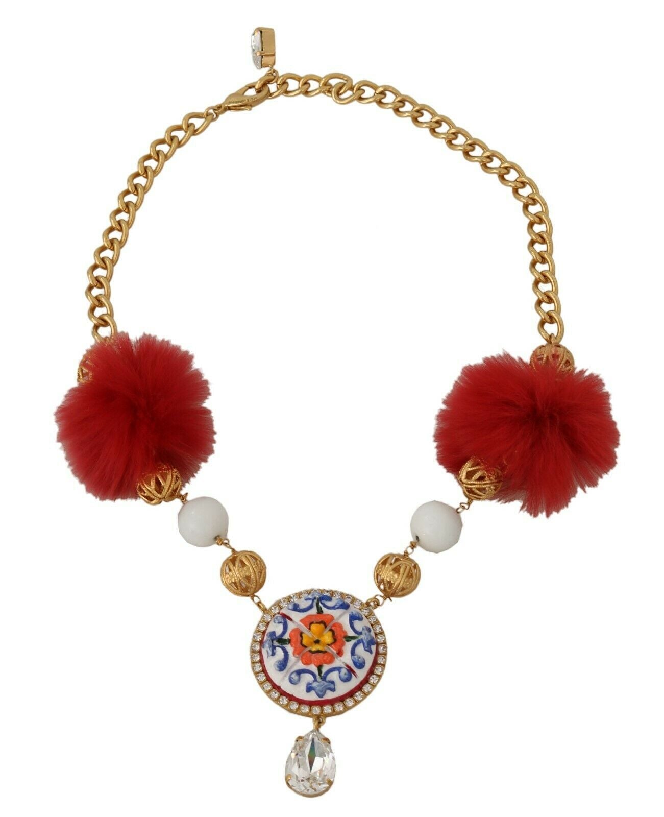 Adorn your neckline with the opulence of Italian craftsmanship with this Dolce & Gabbana gold crystal Carretto Majolica statement necklace. A piece that blends traditional elegance with modern luxury, featuring a vibrant blend of crystals and an exquisite Carretto Majolica motif. The lobster clasp closure ensures a secure and comfortable fit, making it a perfect addition to your jewelry collection or a stunning gift for someone special.