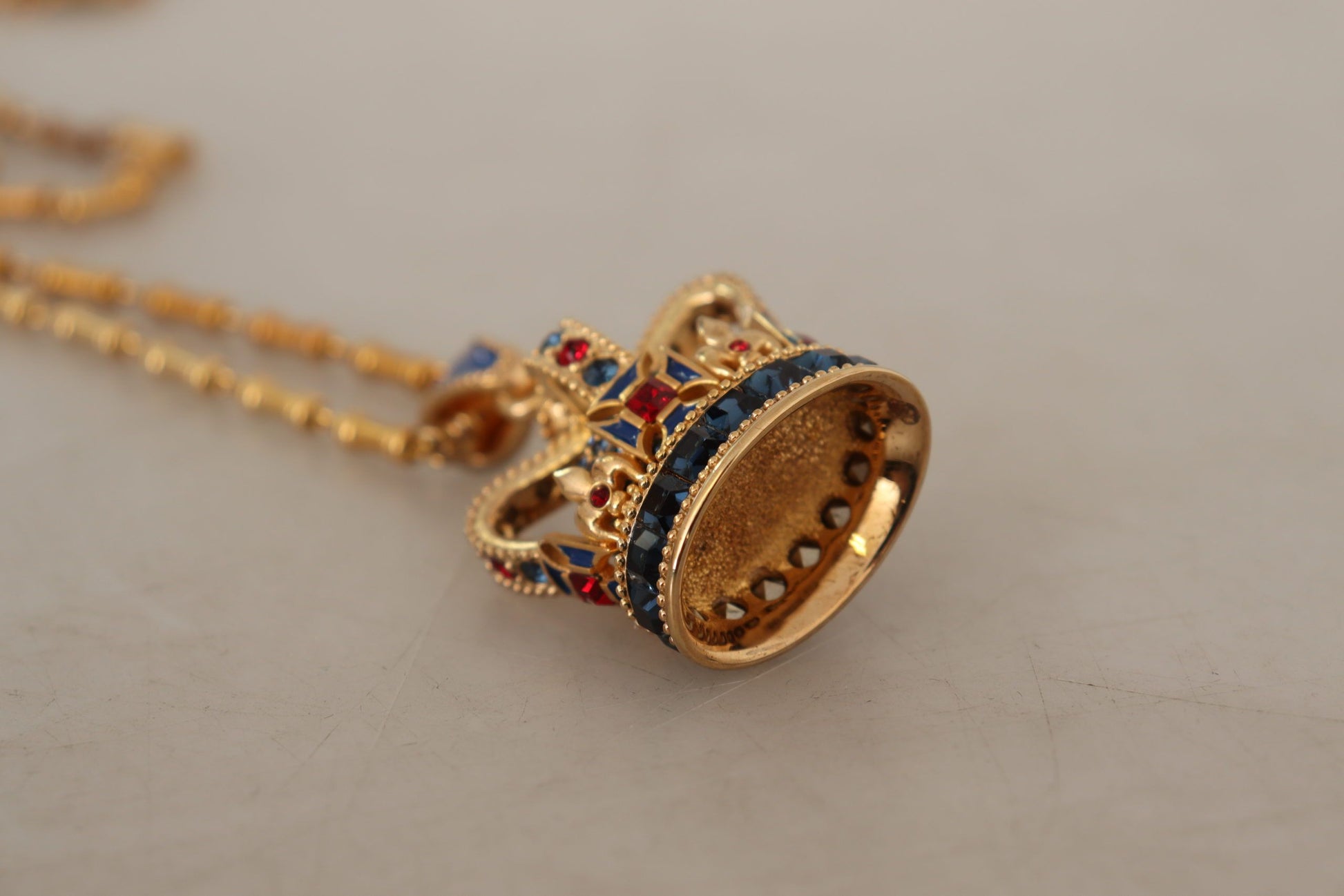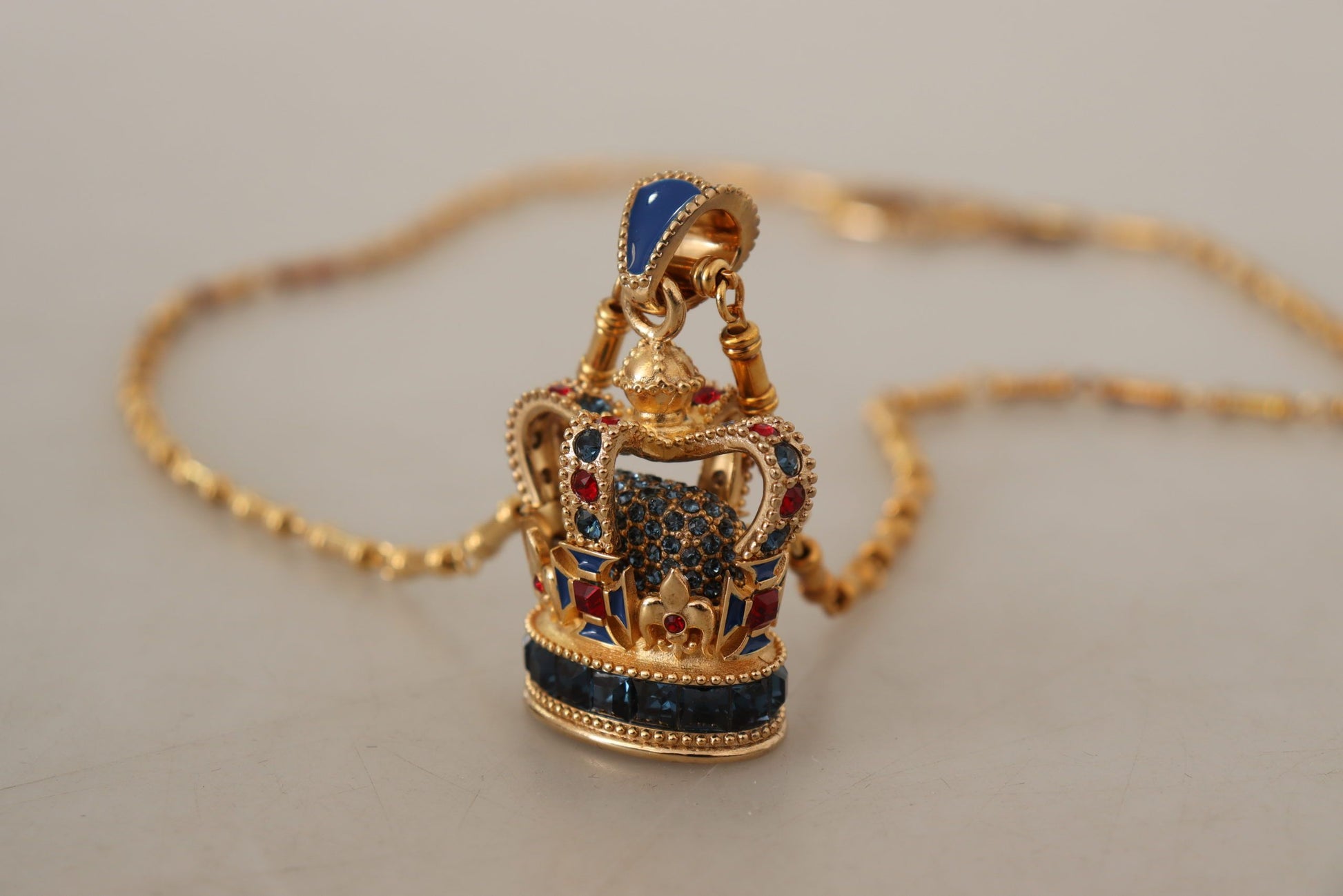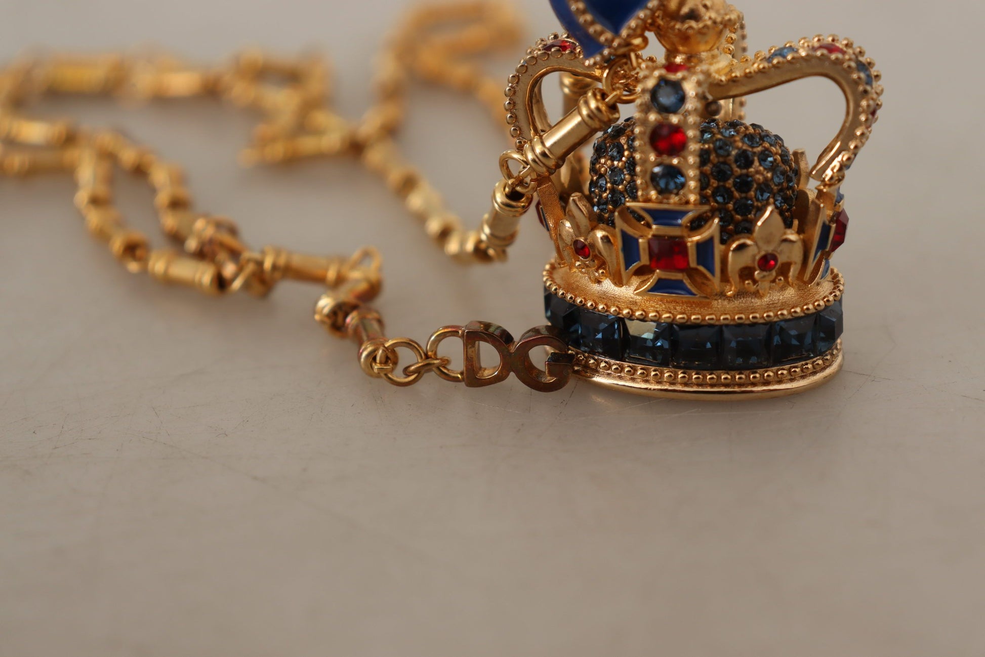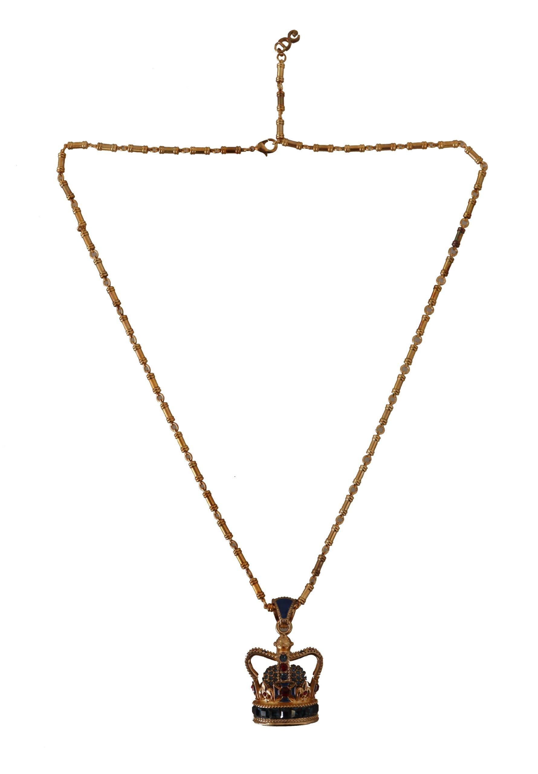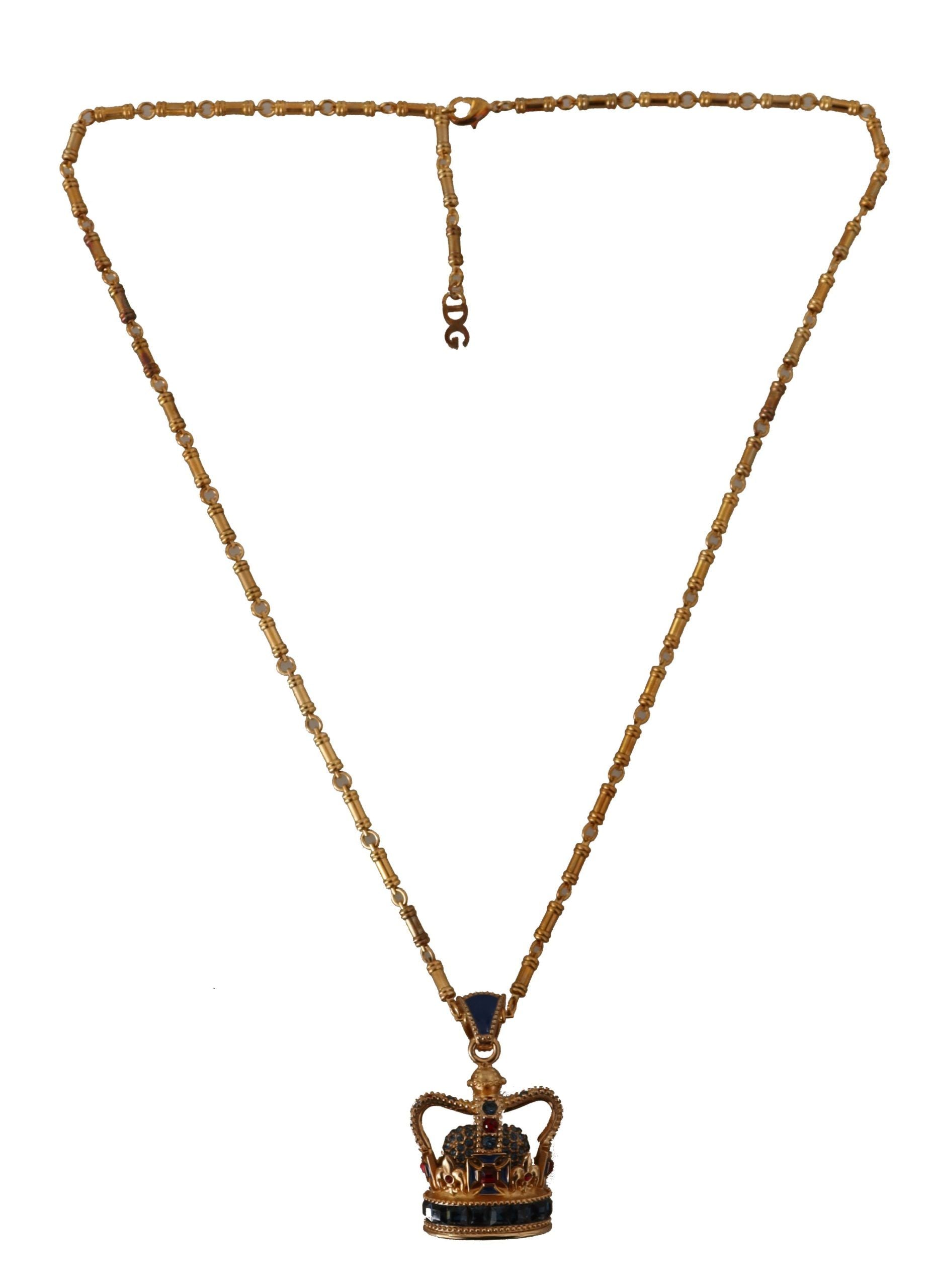 Indulge in the opulence of Dolce & Gabbana with this stunning Crown Pendant Necklace. This exquisite piece is sure to turn heads and add a touch of royalty to any ensemble. Crafted in Italy, the necklace boasts a lustrous gold finish and is adorned with sparkling crystals, making it a perfect accessory for those who love to make a statement. A lobster clasp closure ensures a secure fit, while the iconic D&G logo detail subtly brandishes your love for high fashion.
