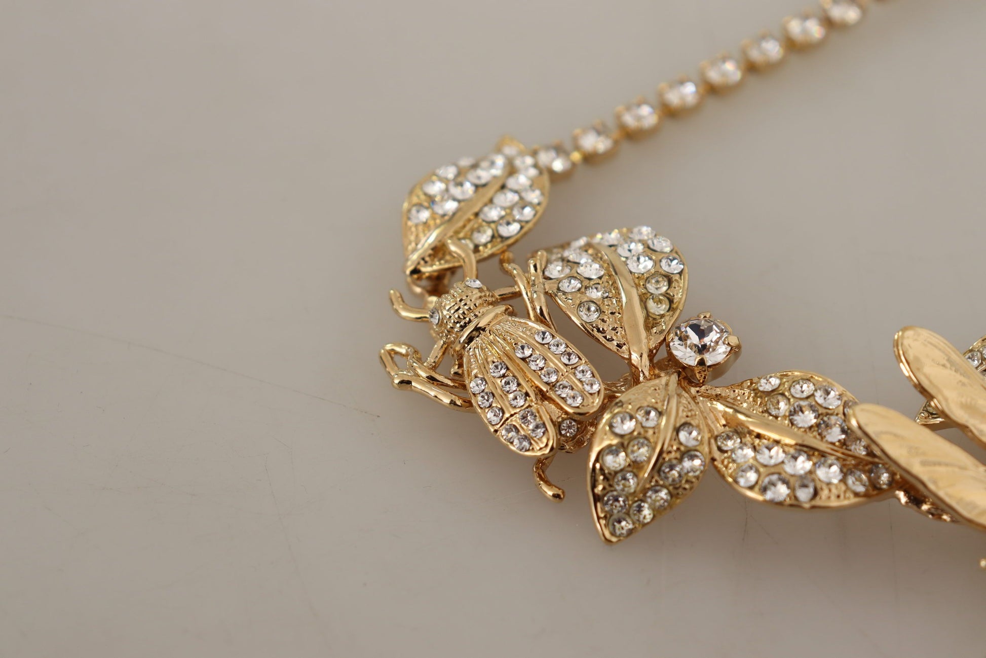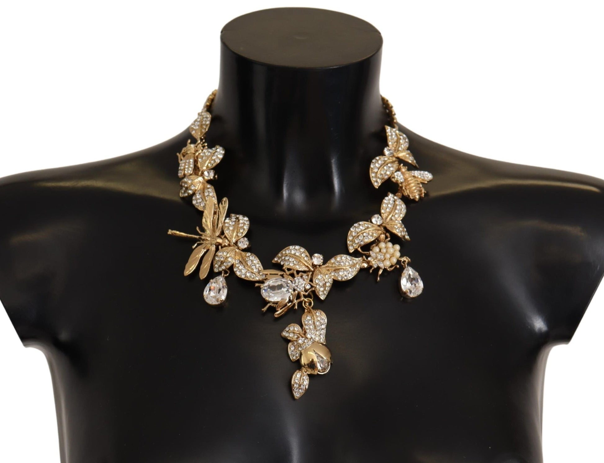Introducing an exquisite statement piece that exudes the luxurious craftsmanship of Dolce & Gabbana – the Sicily Floral Bug Beetle Necklace. This striking accessory is fashioned to elevate any ensemble with its resplendent gold hue and intricate details. The delicate balance of brass, glass, and plastic materials merge to create this marvelous creation. A lobster clasp closure ensures secure and graceful adornment, and the signature logo detail affirms the authenticity and Italian elegance of the piece. At a generous length of 50cm, it falls perfectly around the collarbone to become a central highlight of your attire.
