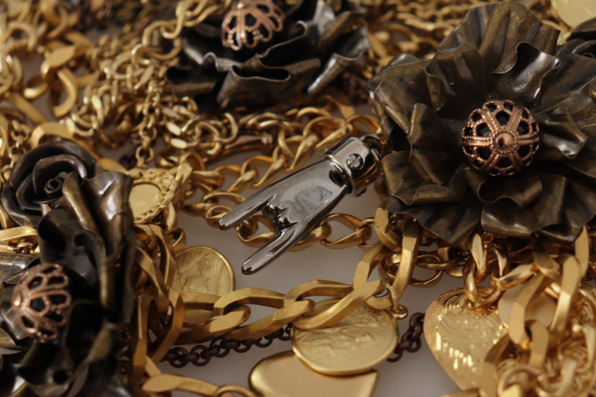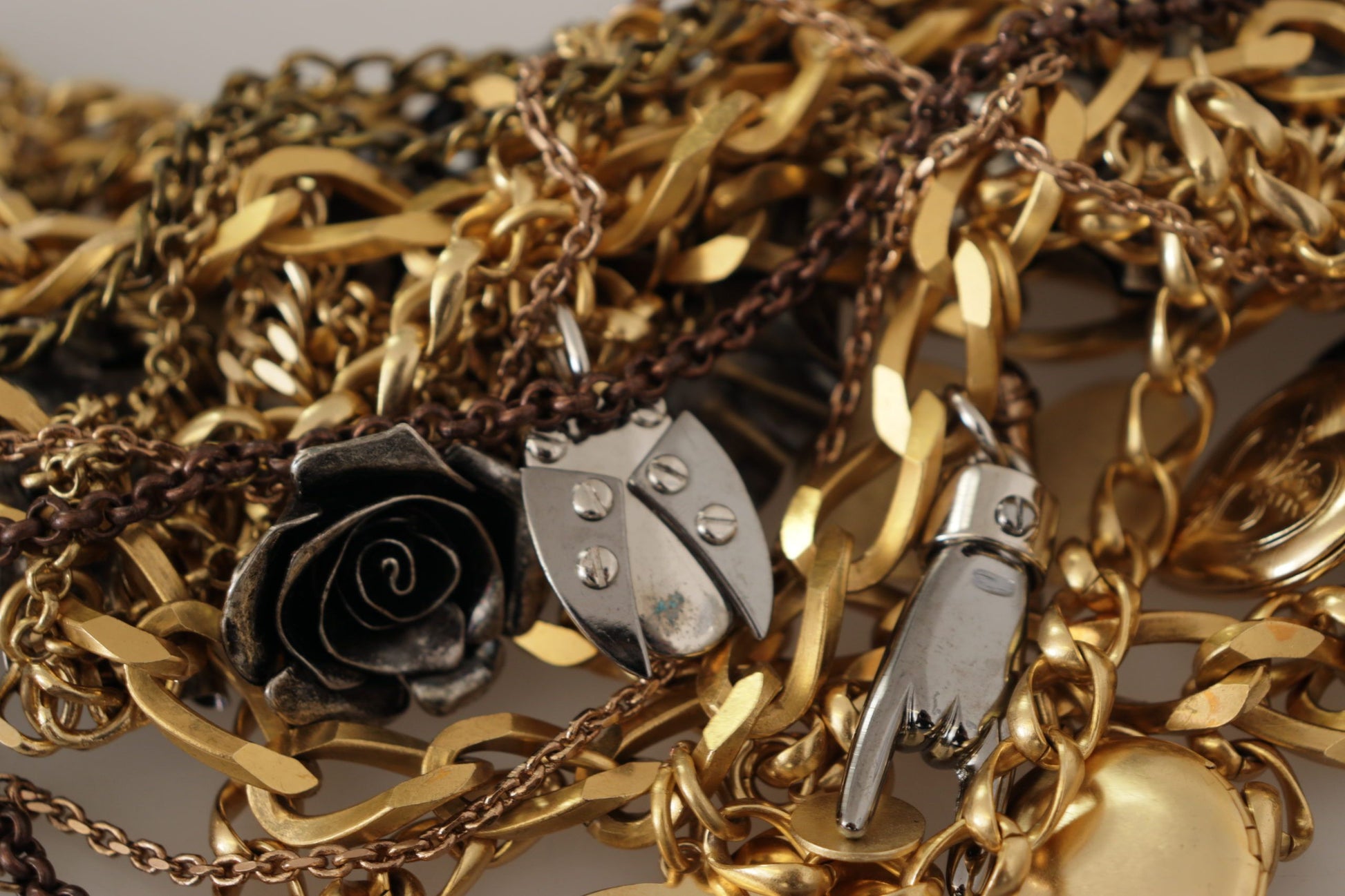 Adorn your neckline with the epitome of elegance, courtesy of the esteemed Dolce & Gabbana. This luxurious statement necklace, reflecting the charm of Sicily, is expertly crafted with a shimmering gold hue. The intricate design is complemented by the sparkle of glass accents, ensuring that it stands out at any high-profile event. Secured with a lobster clasp closure, this stunning piece is an embodiment of Italian craftsmanship and a testament to your exquisite taste.