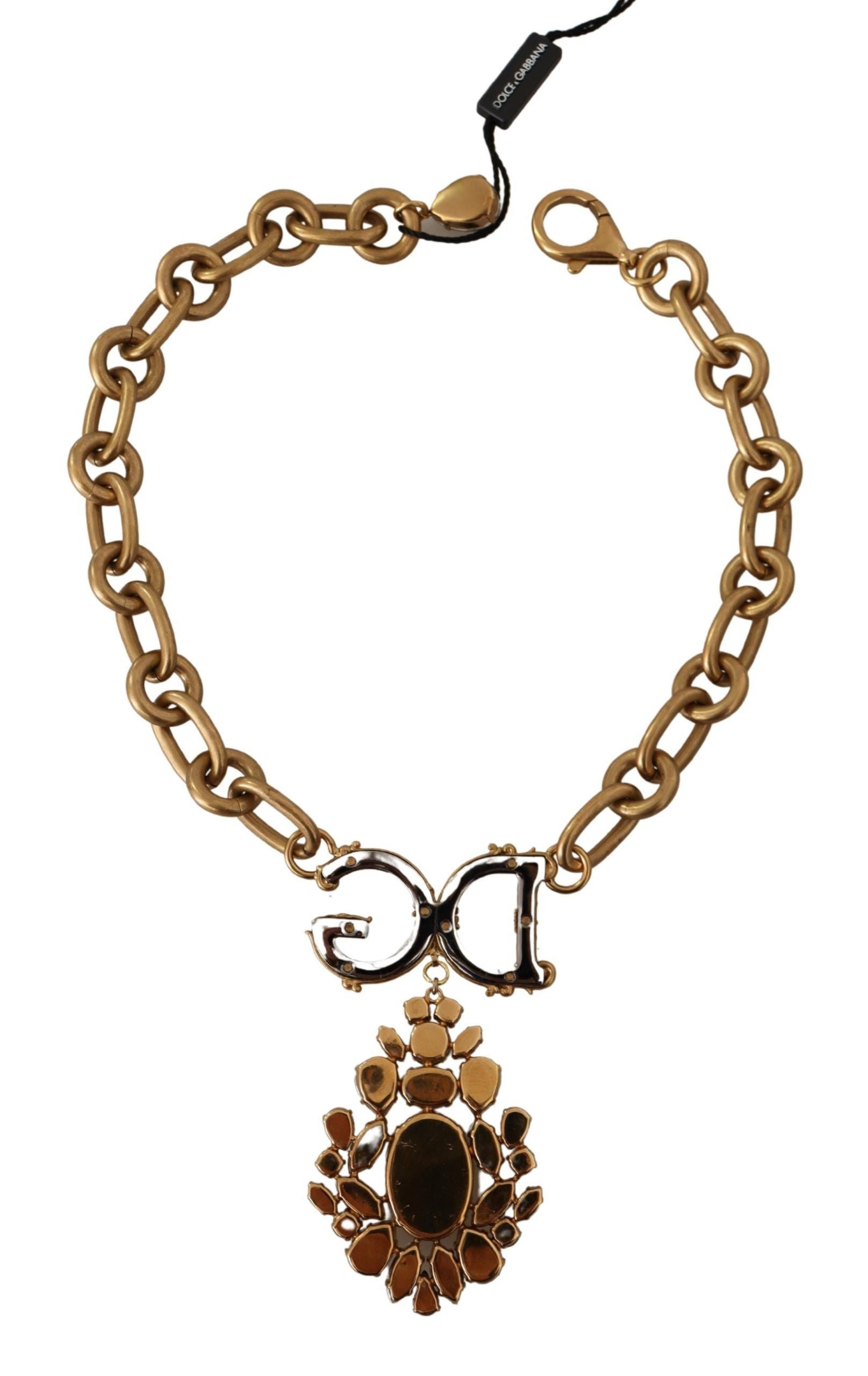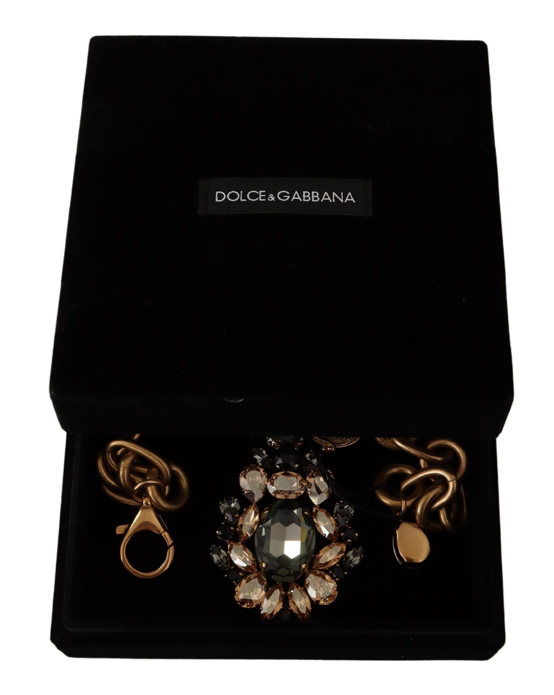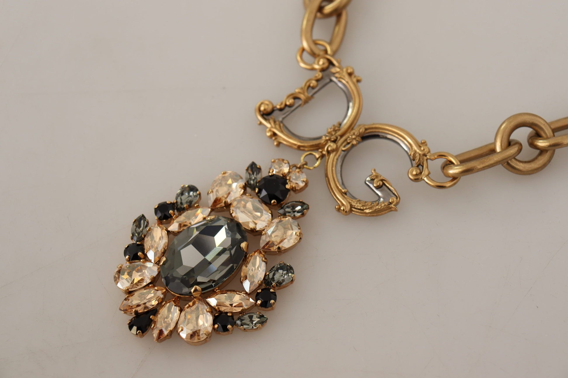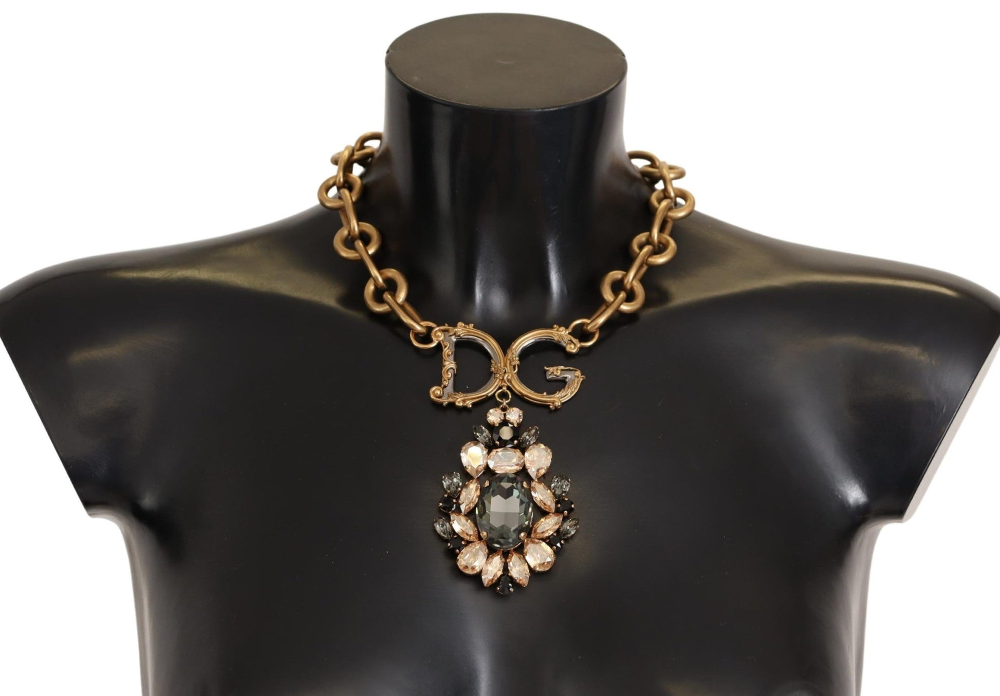 Step into a world of elegance with this exquisite Dolce & Gabbana statement necklace. A piece that exudes sophistication, it features a beautiful SICILY motif, complemented by sparkling champagne and gray crystals that catch the light with every movement. Crafted with precision in Italy, this necklace is a blend of 70% brass and 30% glass, ensuring durability and a luxe finish. The lobster clasp closure provides a secure and comfortable fit. Whether you’re attending a gala or accessorizing for an upscale dinner, this necklace adds a touch of glamour to any ensemble.
