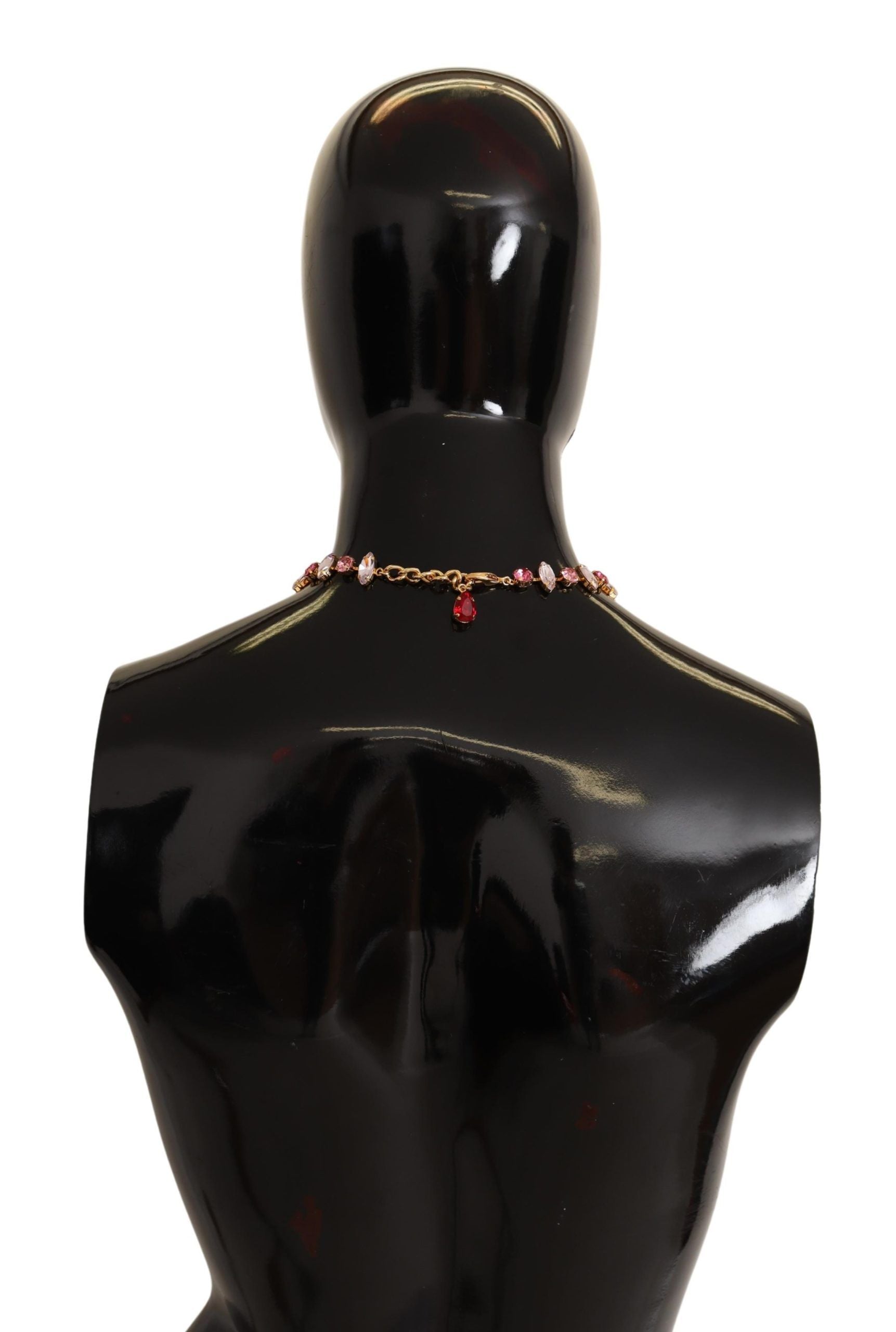 Elevate your ensemble with the luxurious charm of this Dolce & Gabbana statement necklace. A masterpiece adorned with hand-painted roses, dazzling pink and clear crystals, and playful Fumetti Cartoon motifs including a heart, ‘Love’, ‘Boom’, and a star, set in a radiant gold tone. This stunning piece is secured with a lobster clasp, promising to add a touch of whimsical elegance to your jewelry collection.