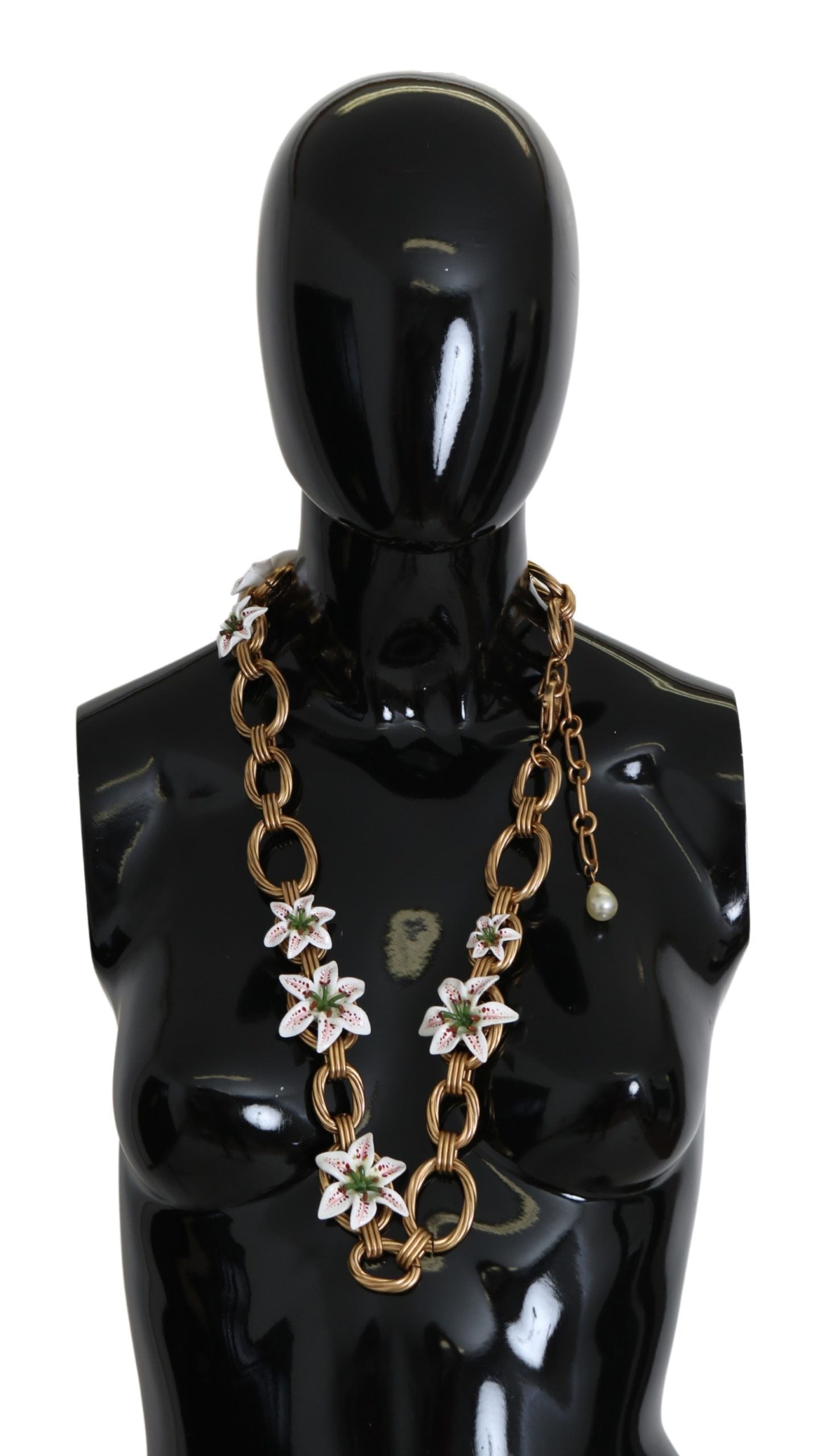 Indulge in the elegance of Dolce & Gabbana with this gorgeous Sicily Statement Necklace. Brand new with tags, this necklace exemplifies the luxurious craftsmanship expected from such an exclusive accessory. Its intricate Lilium floral motive adds a touch of nature-inspired beauty, making it a perfect complement to any sophisticated outfit.
