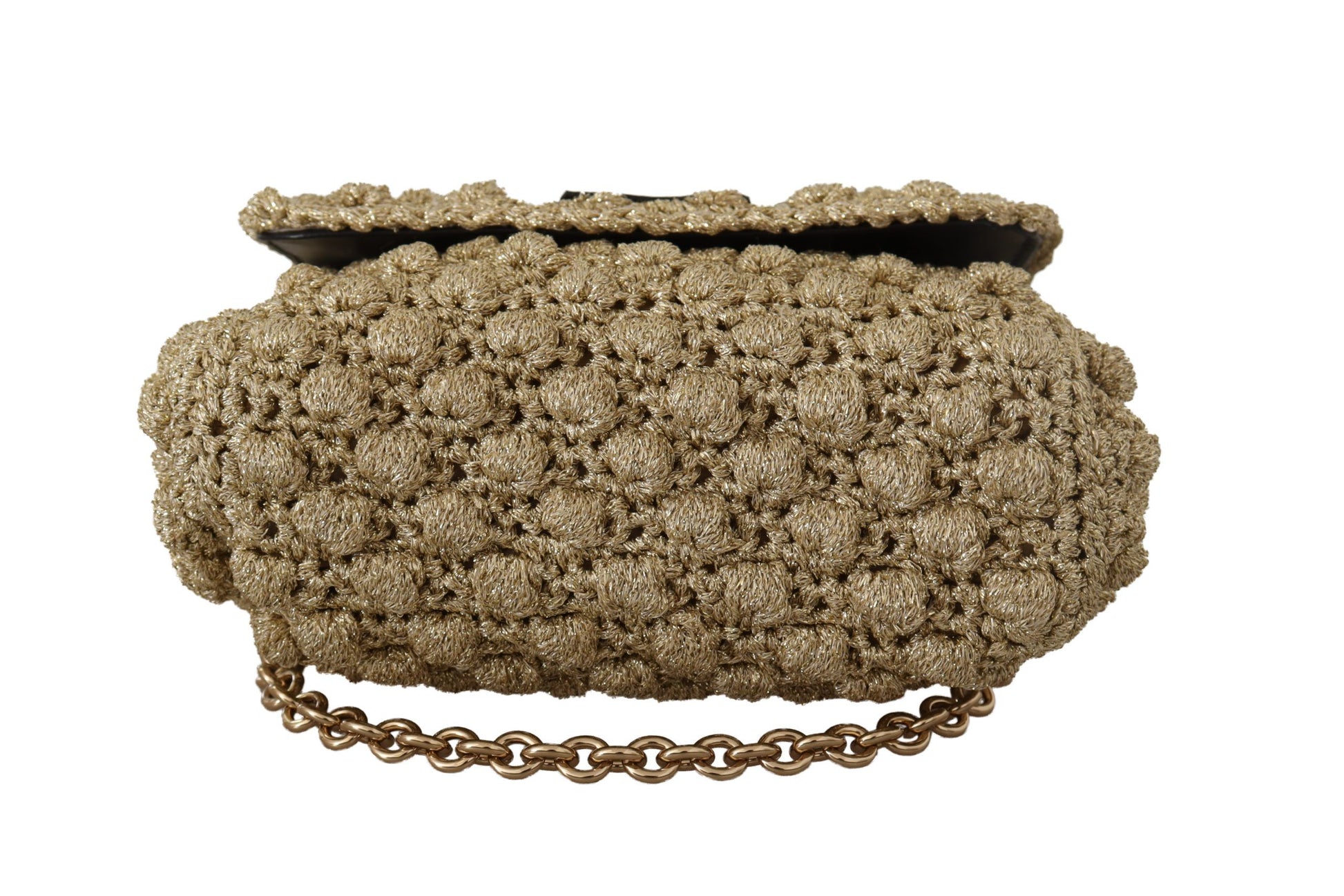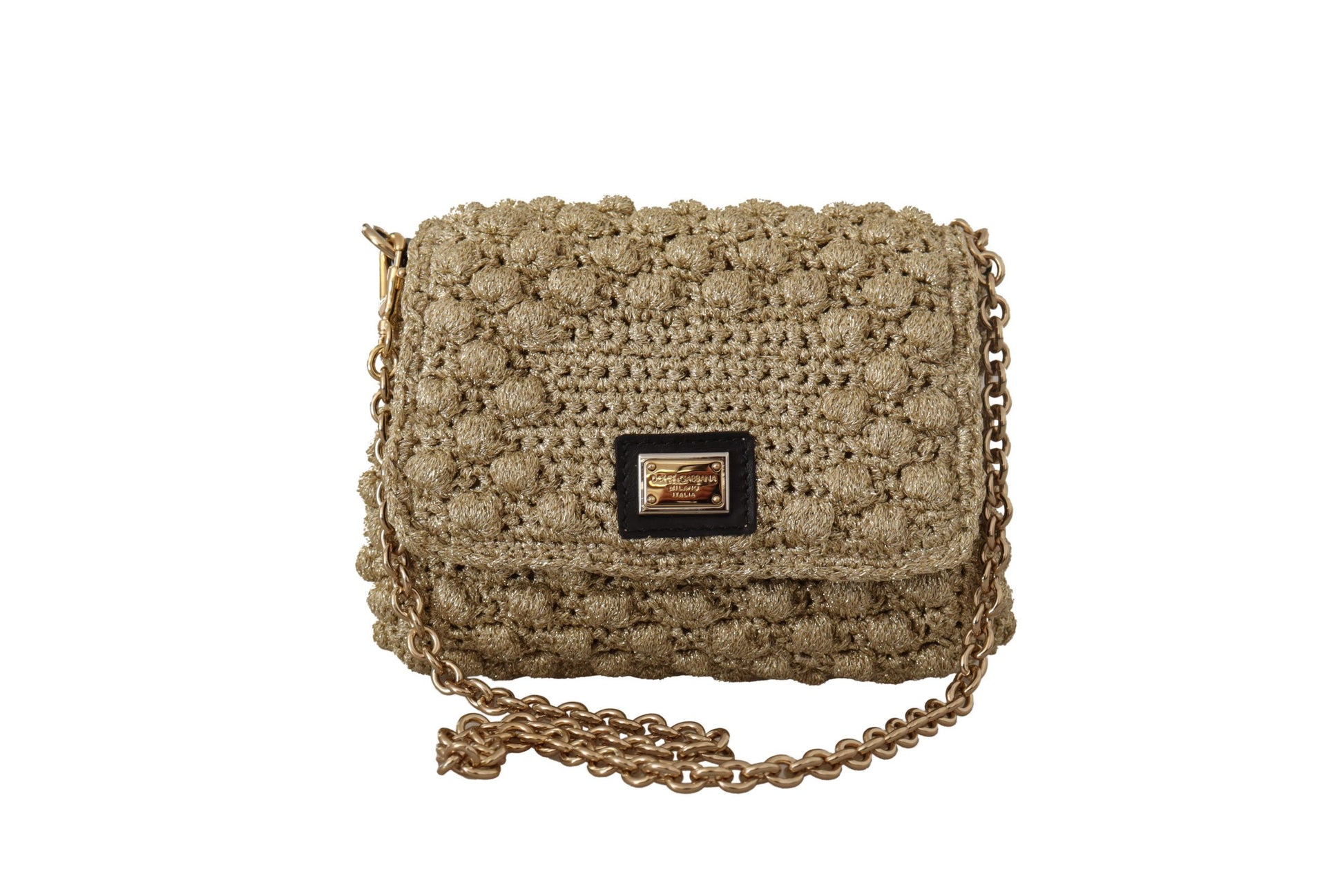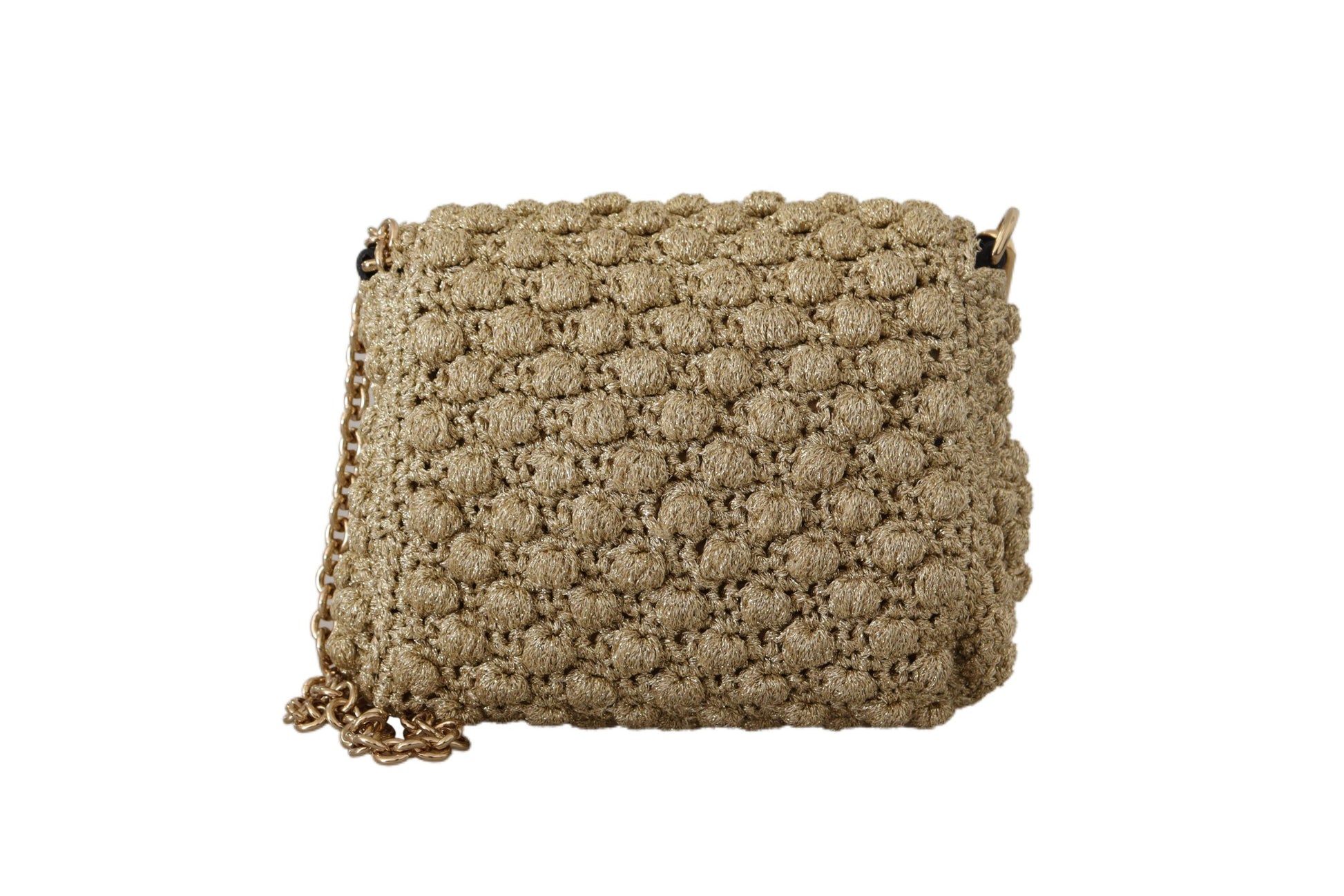 Make a luxurious statement with this stunning gold clutch by Dolce & Gabbana. Perfect for evening events, this clutch adds a touch of glamour to any outfit. The detachable gold chain offers versatility, allowing it to be carried as a shoulder bag or as a clutch for a more formal look. Its compact size is ideal for your essentials, while the magnet flap closure keeps them secure. Proudly made in Italy, this accessory showcases exquisite craftsmanship and elegant design.