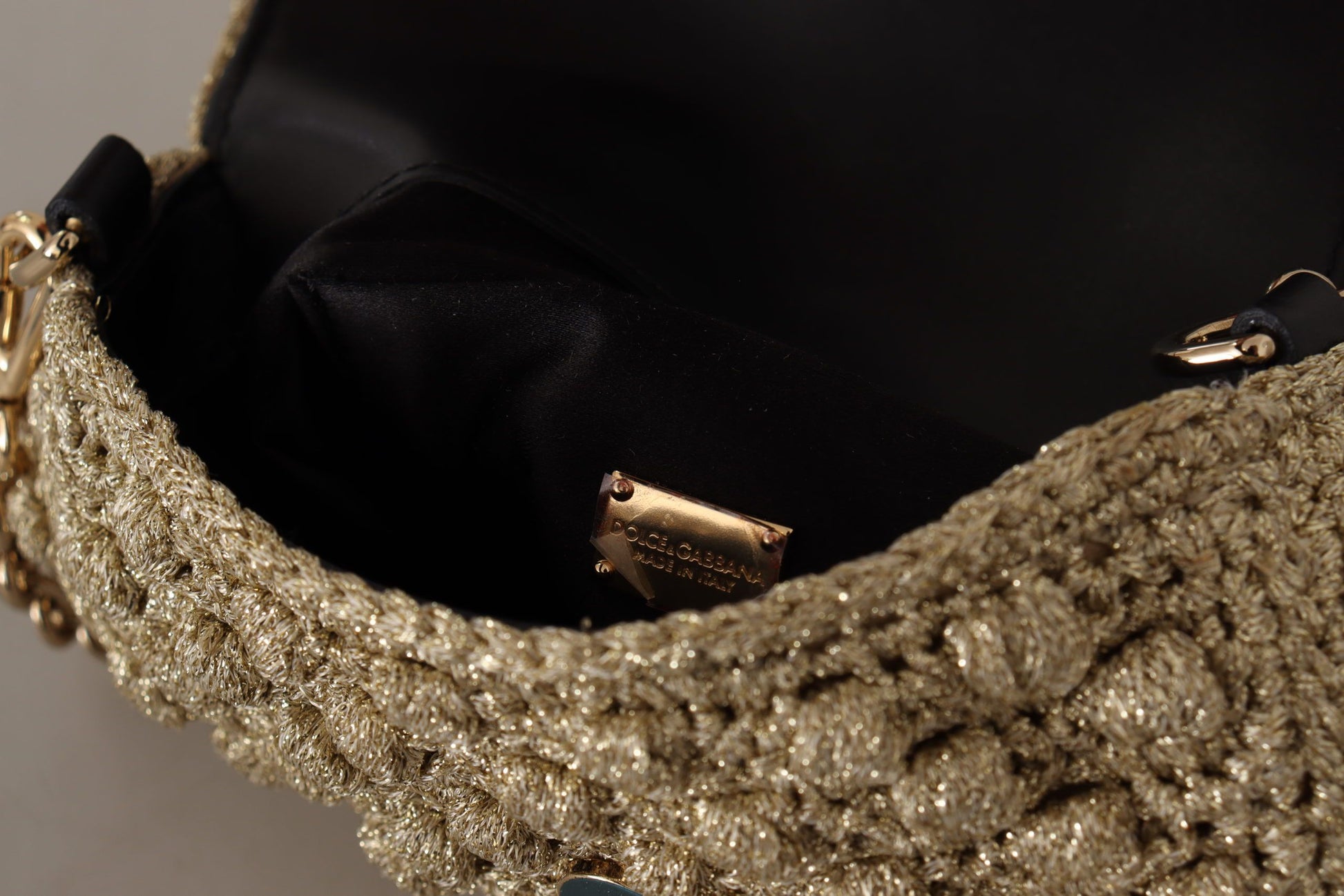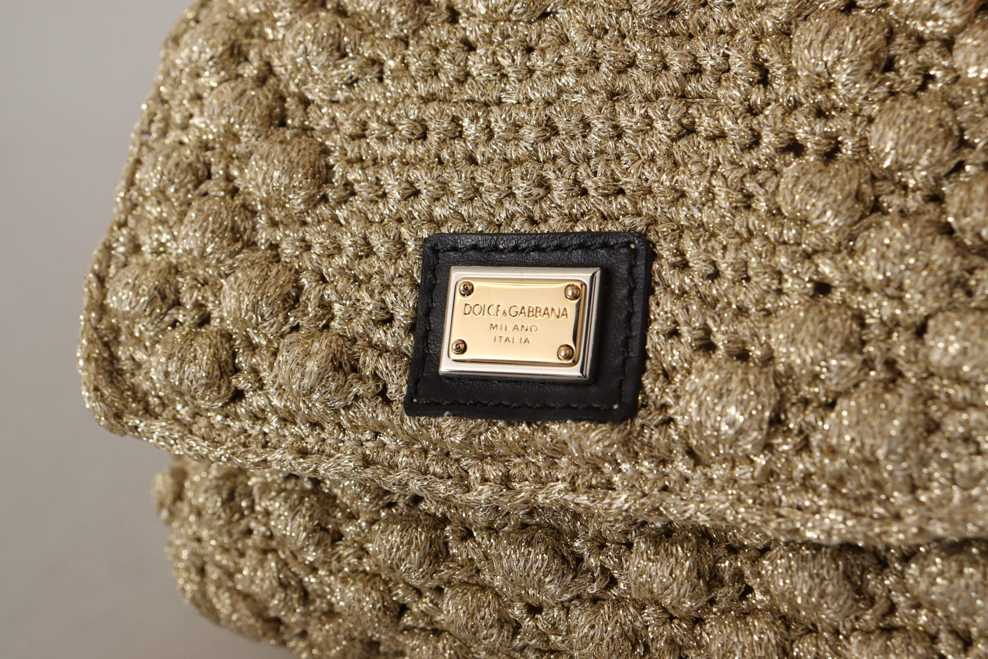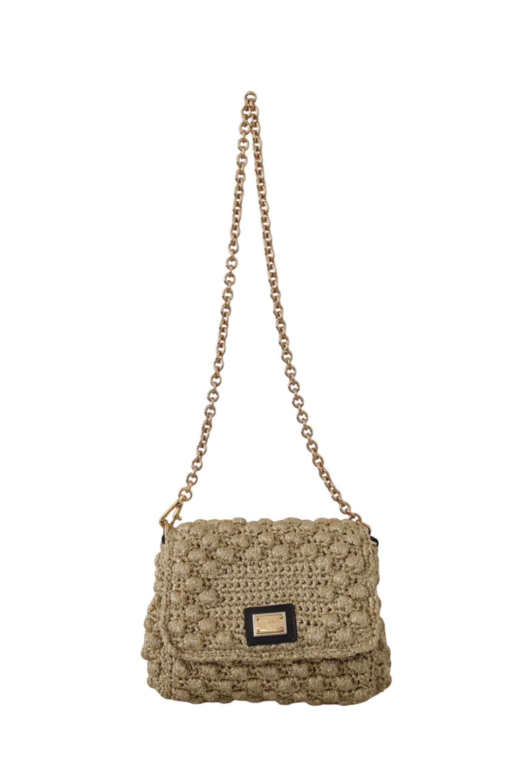 Make a luxurious statement with this stunning gold clutch by Dolce & Gabbana. Perfect for evening events, this clutch adds a touch of glamour to any outfit. The detachable gold chain offers versatility, allowing it to be carried as a shoulder bag or as a clutch for a more formal look. Its compact size is ideal for your essentials, while the magnet flap closure keeps them secure. Proudly made in Italy, this accessory showcases exquisite craftsmanship and elegant design.