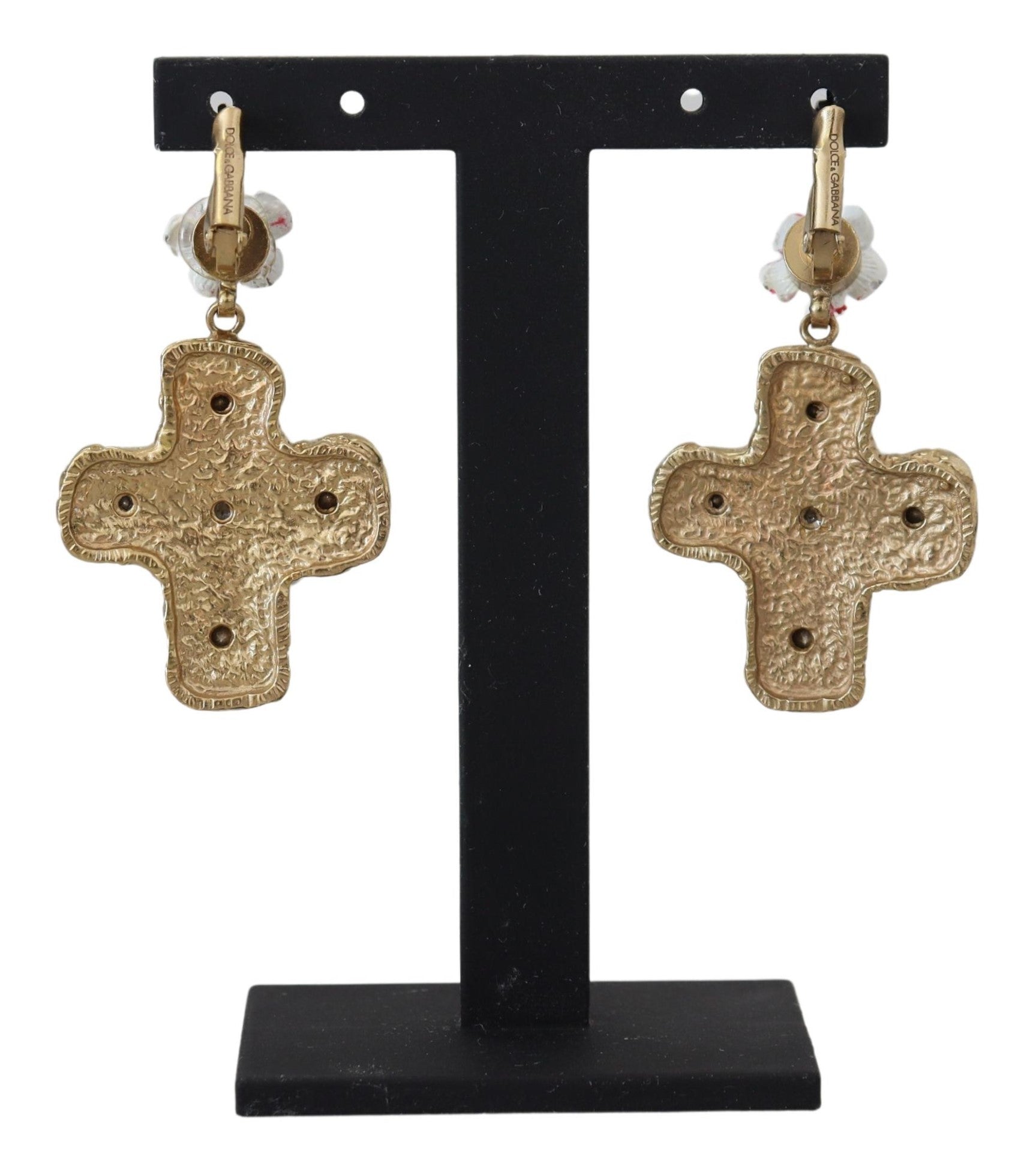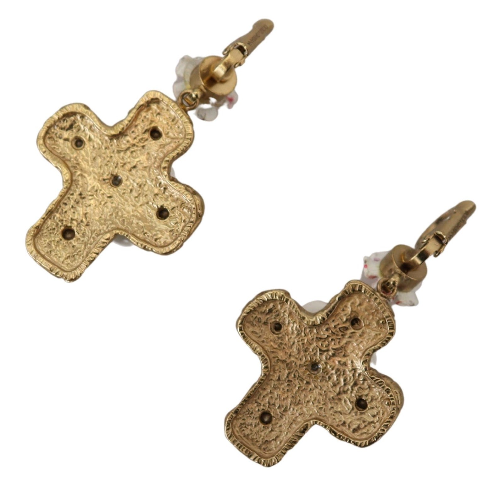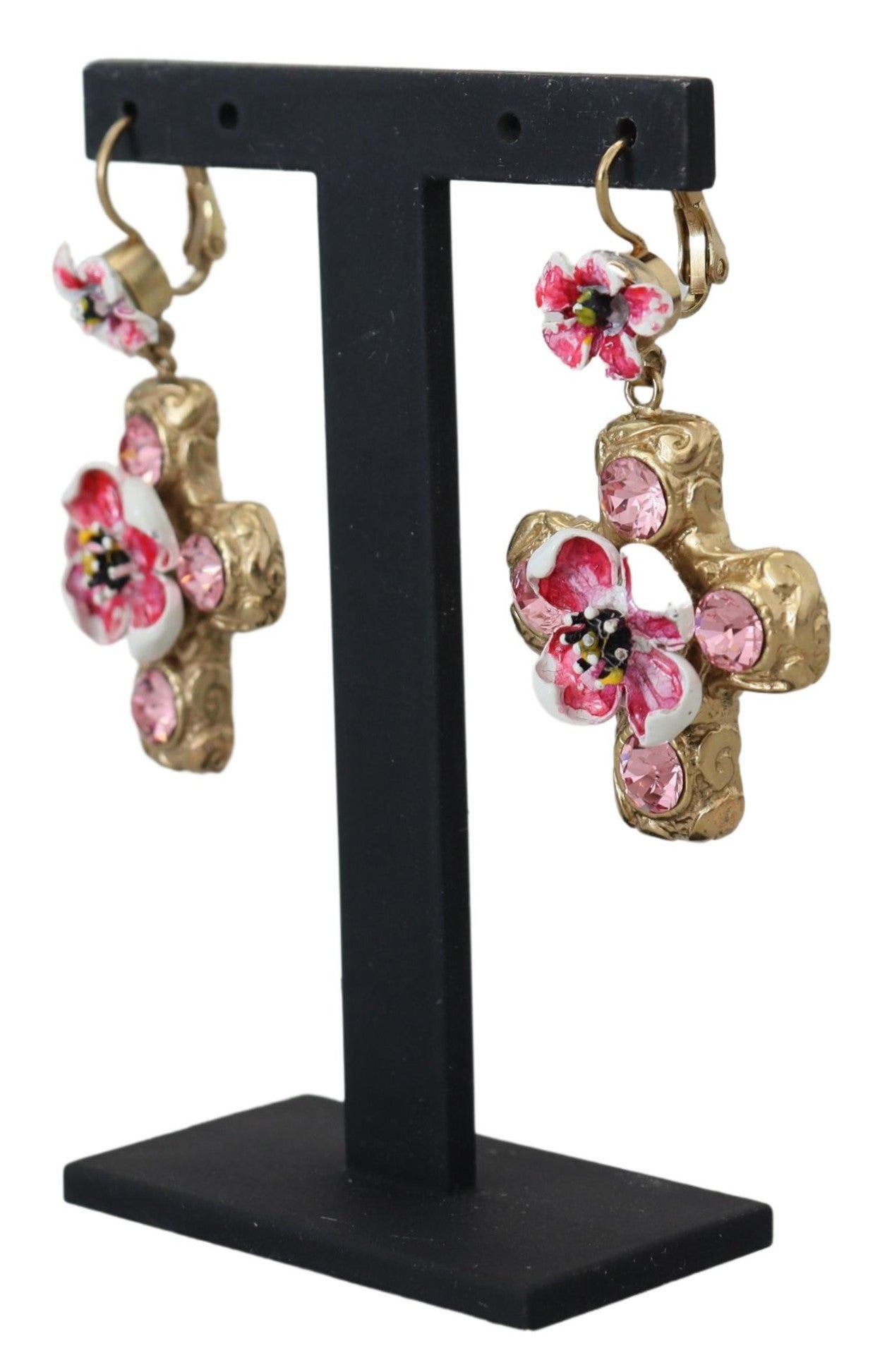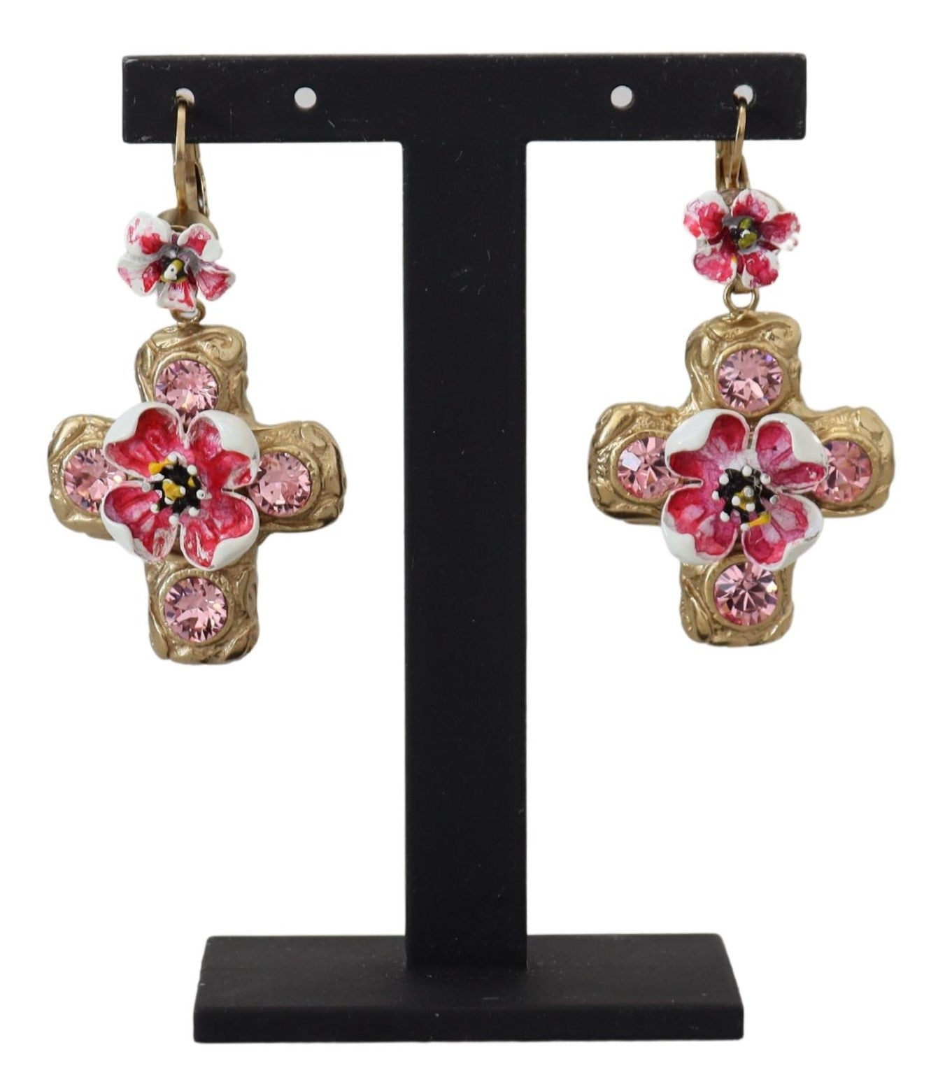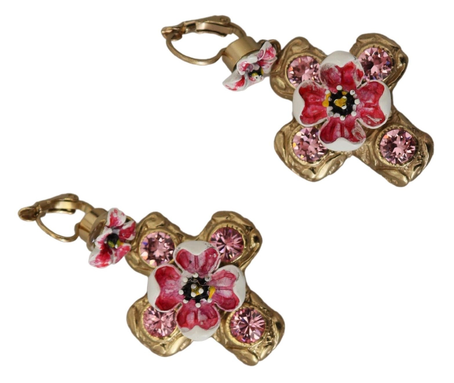Adorn your ears with the elegance of these Dolce & Gabbana dangling earrings. Boasting a Sicily cross motif, these stunning accessories feature a fascinating combination of gold and pink hues. The sparkle of pink crystals adds a lavish touch, perfect for enhancing any outfit with a dash of luxury.