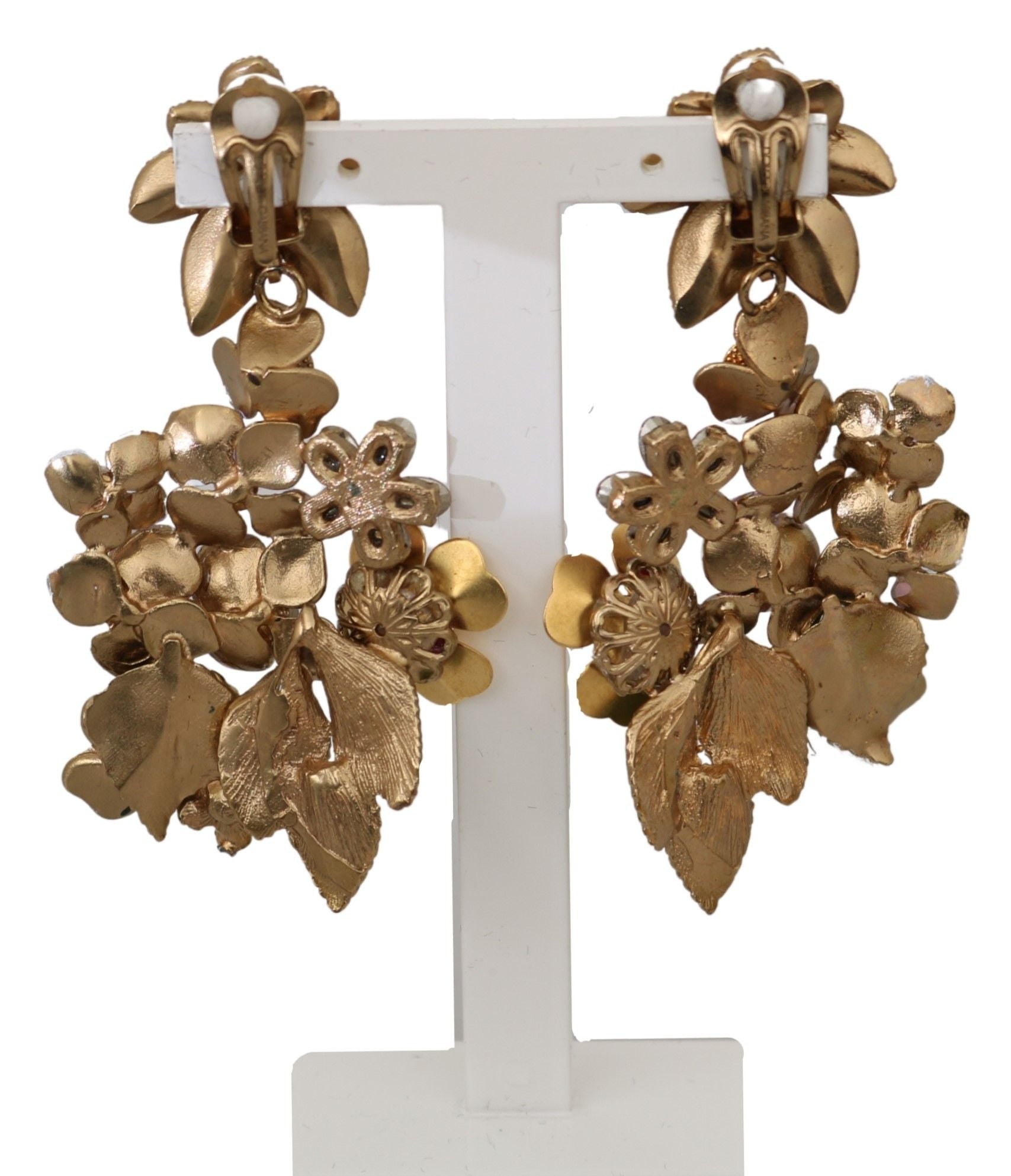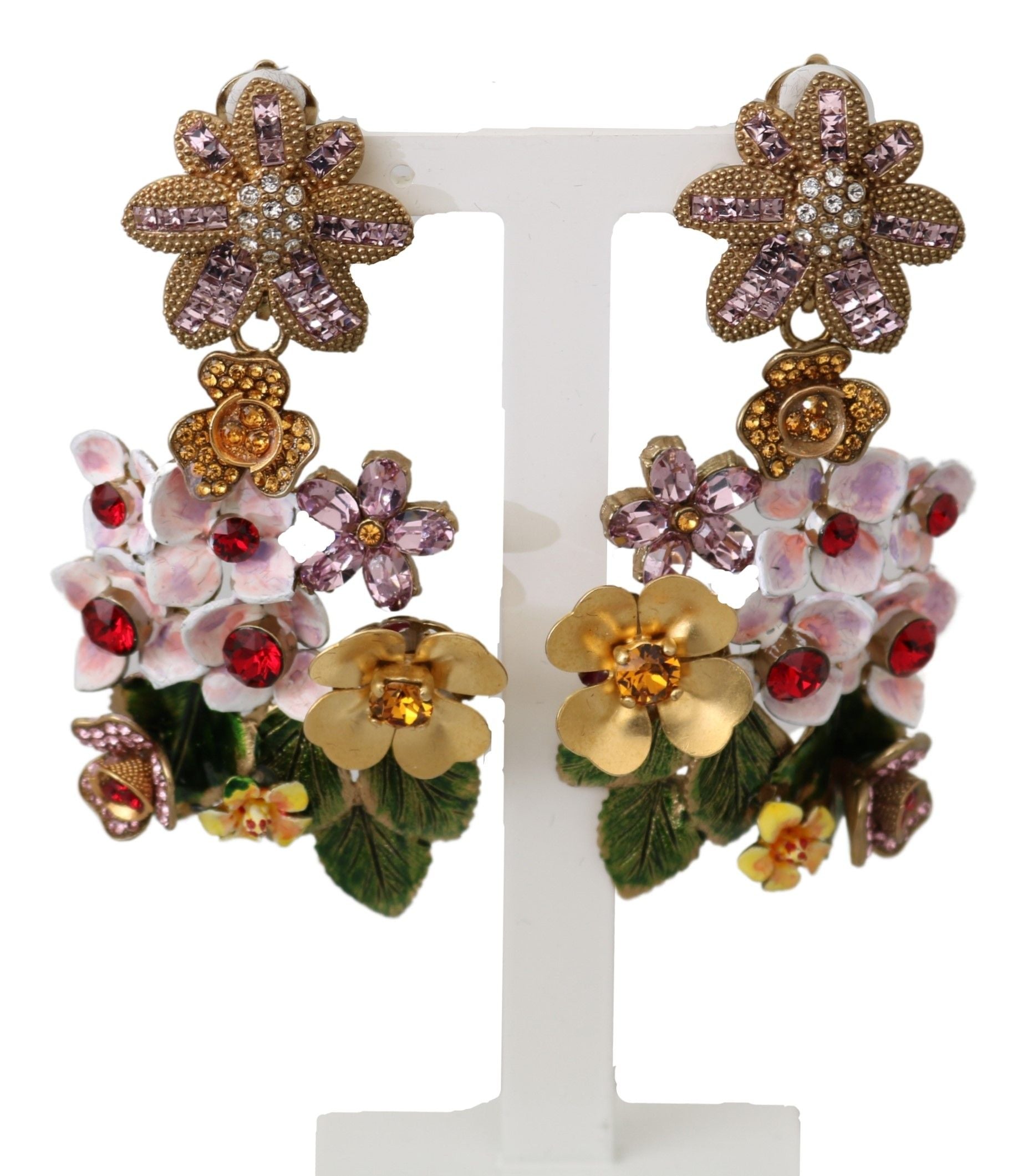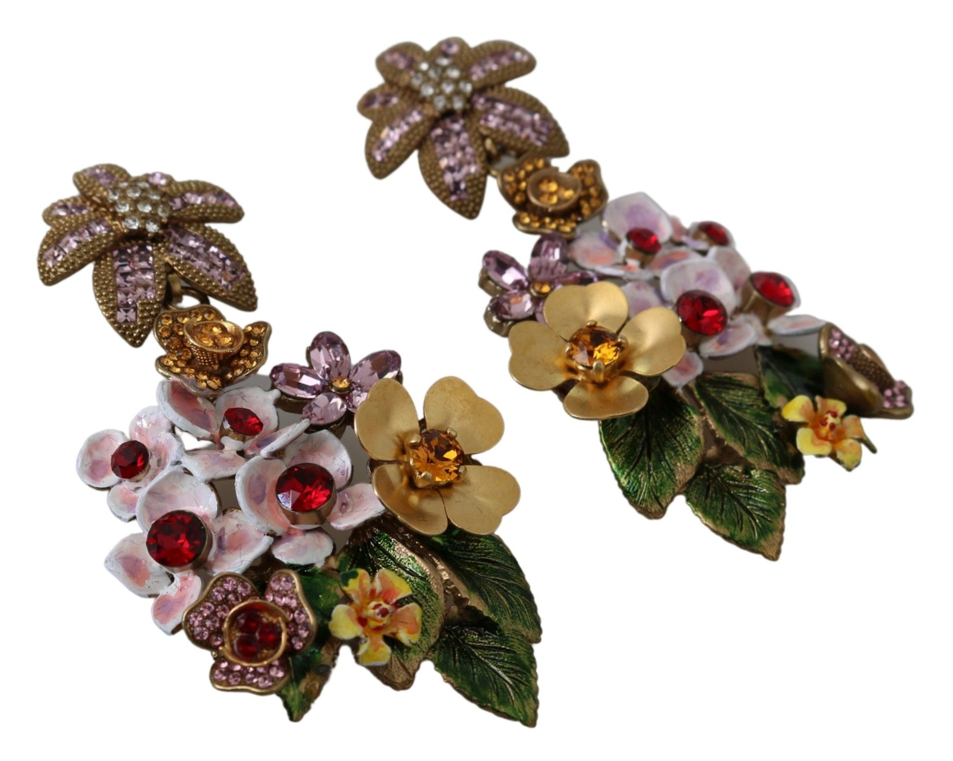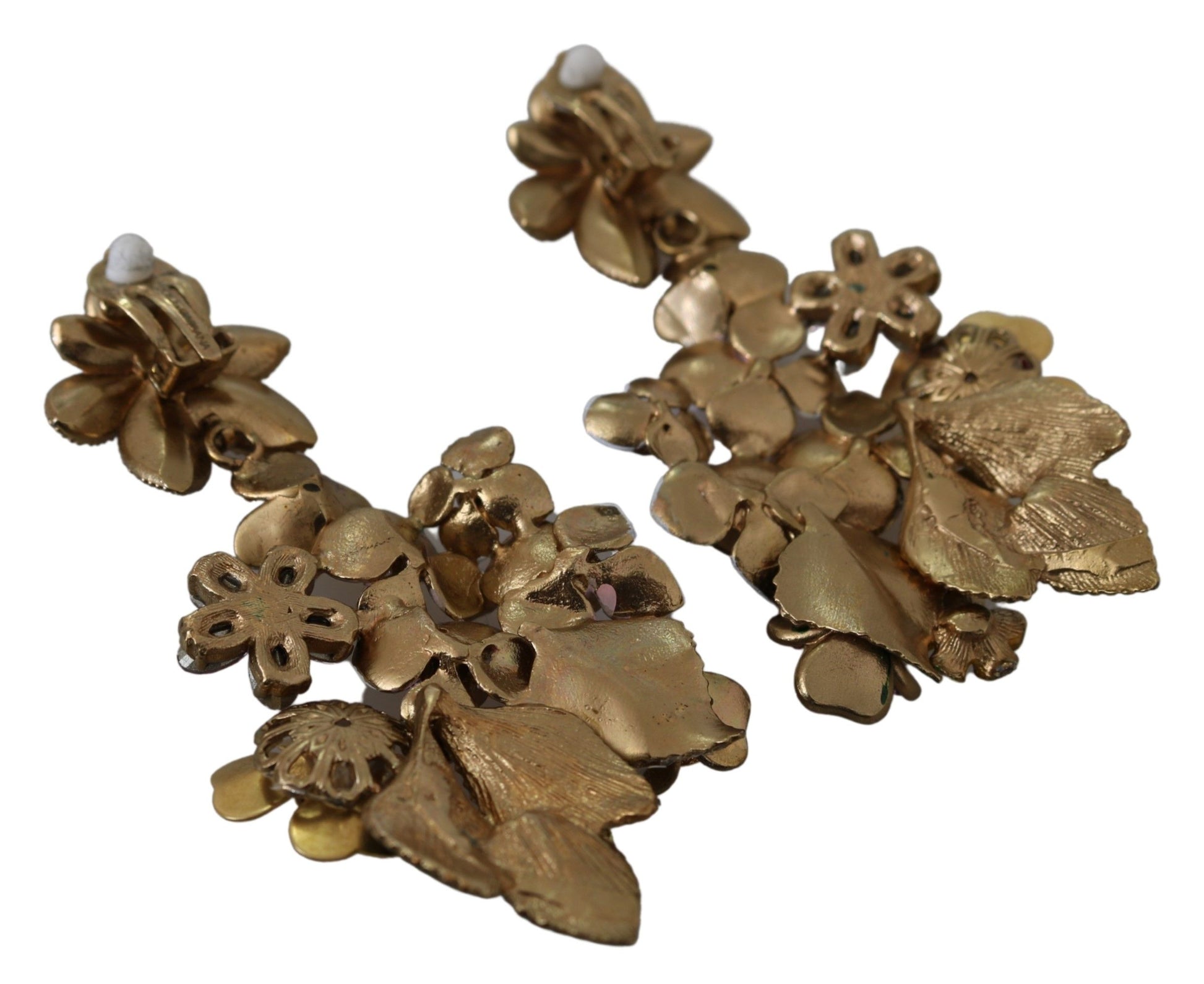 Indulge in Italian craftsmanship with these stunning Dolce & Gabbana Fiori Bouquet earrings. Adorned with a delicate mix of flowers, this pair radiates elegance and sophistication. Crafted from a blend of brass, glass, and crystals, they feature a gleaming gold-tone finish complemented by a colorful array of crystals. Perfect for adding a touch of glamour to any ensemble, these earrings are sure to make a statement.