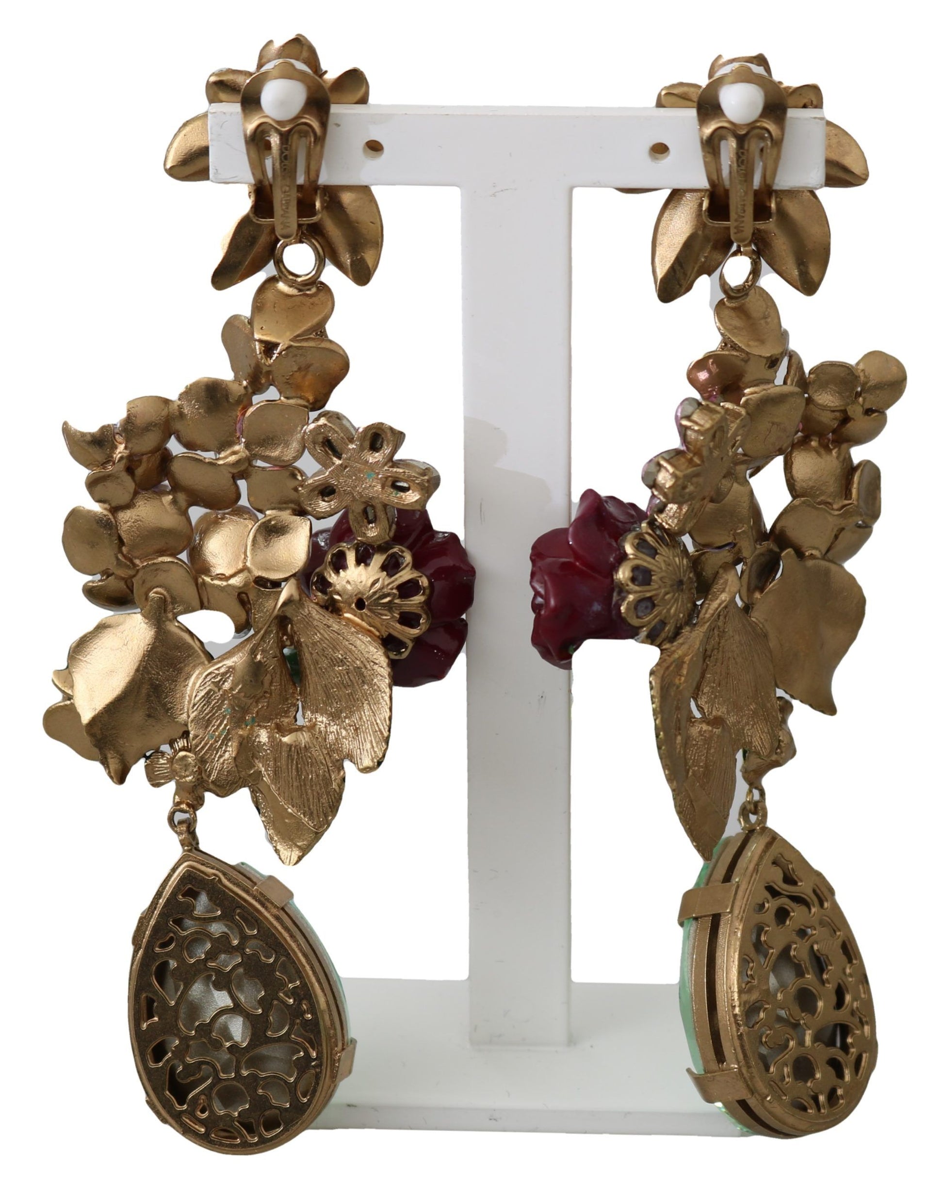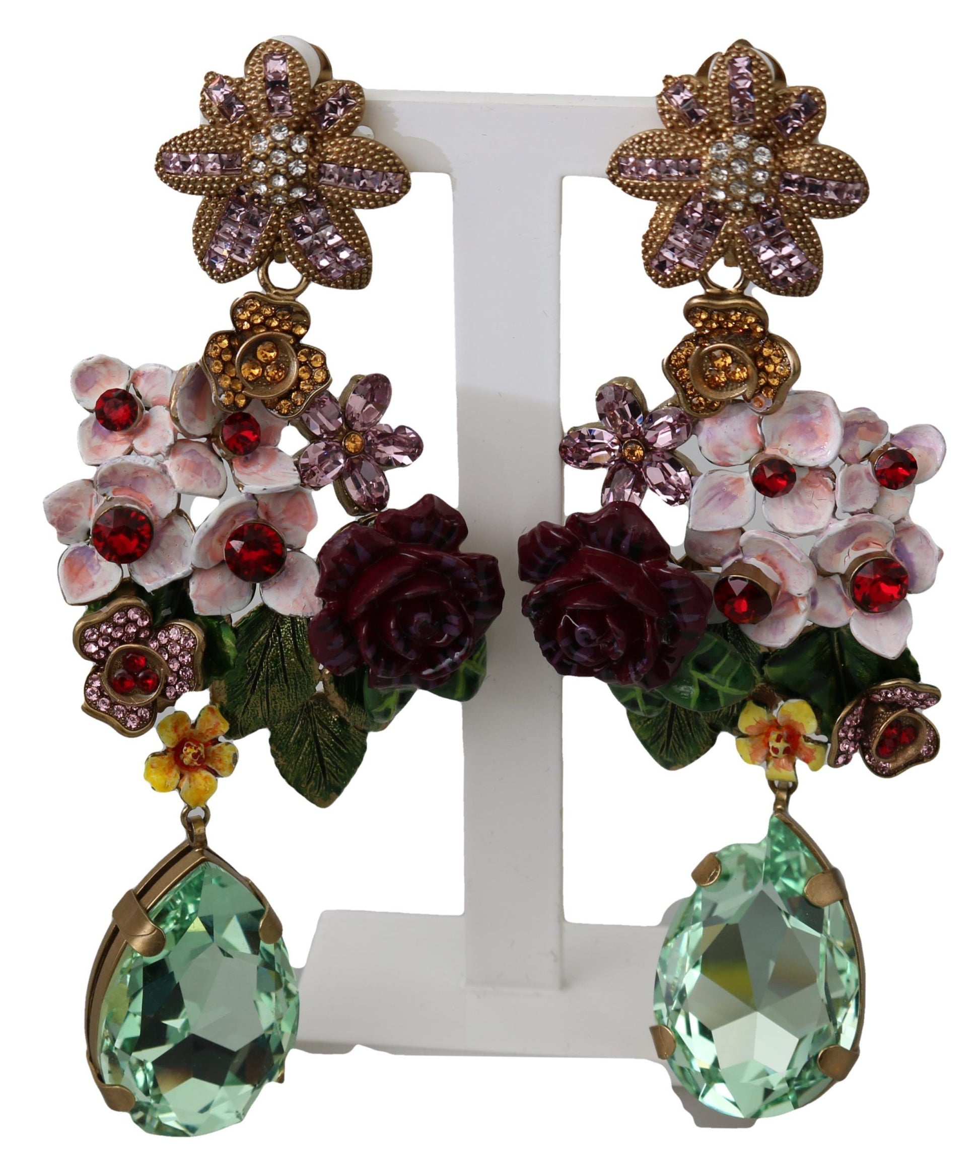 Elevate your ensemble with these stunning clip-on earrings from Dolce & Gabbana . Adorned with intricate floral motifs, these ‘FIORI BOUQUET’ earrings are a statement of sophistication and luxury. Crafted with a blend of brass, glass, and shimmering crystals, they feature a dazzling array of colors including gold, white, and green, accented by purple, red, and gold crystals. Designed and made in Italy, they measure an impressive 10 cm in length, and are complete with logo details, ensuring their authenticity and brand prestige.
