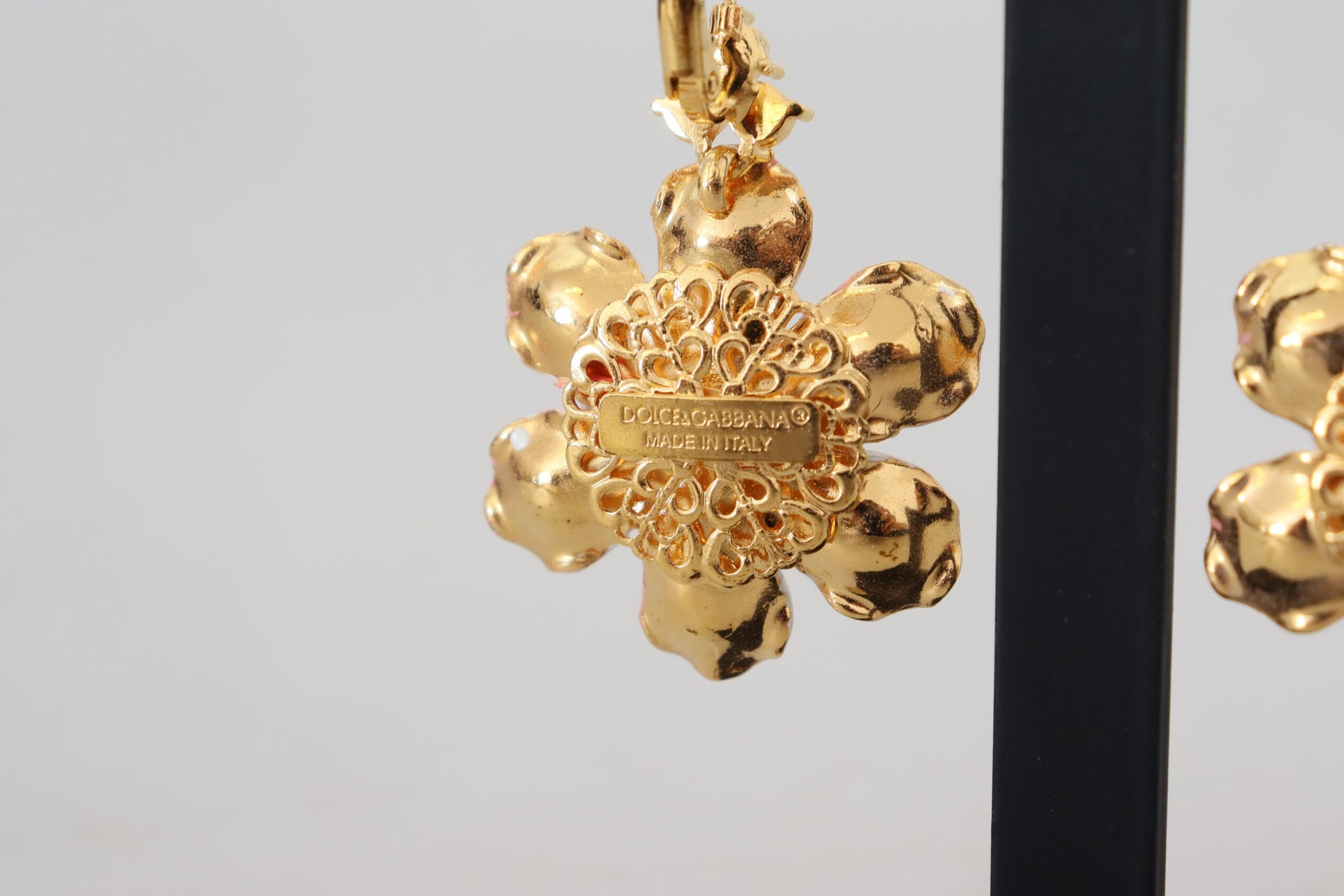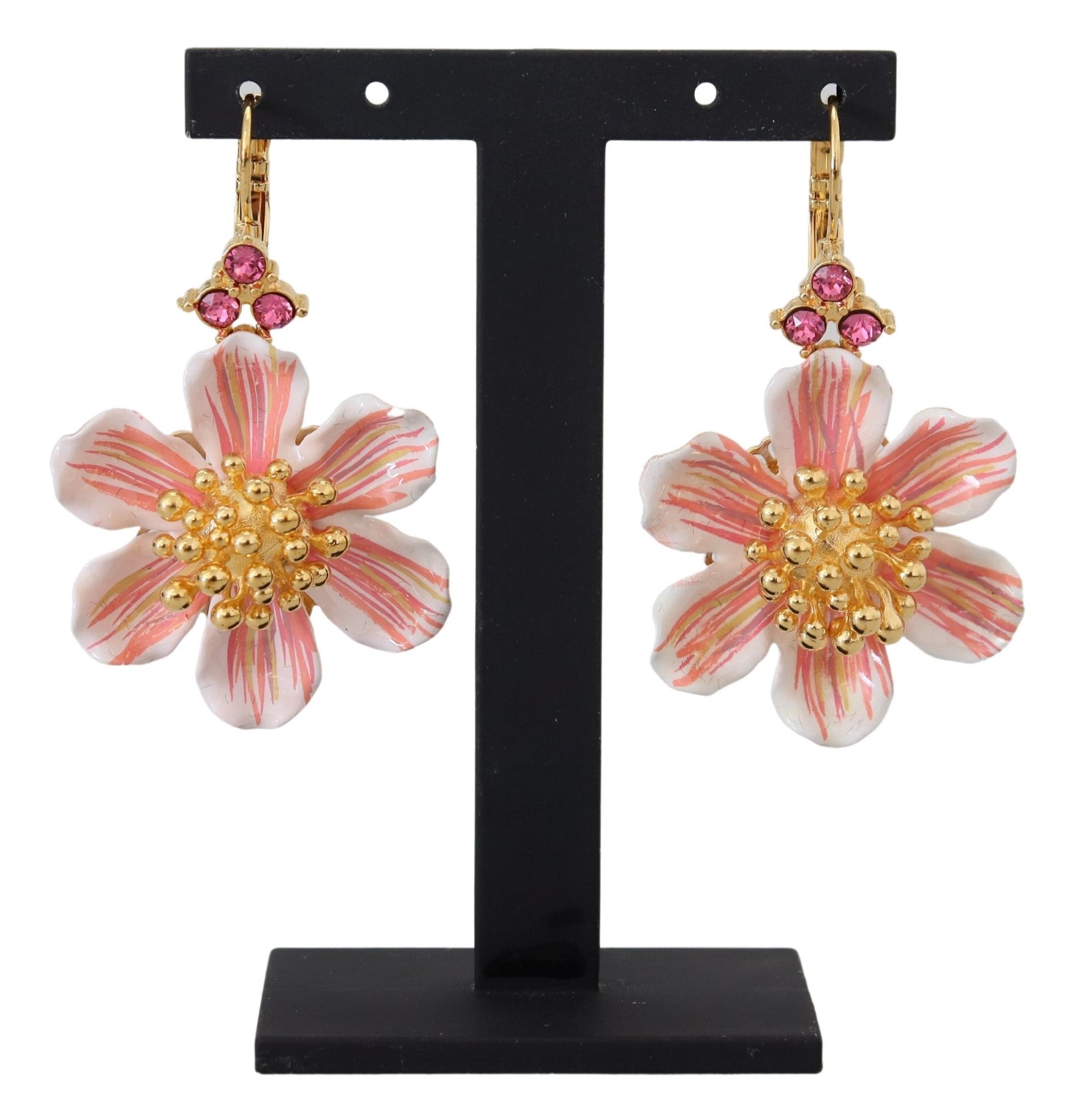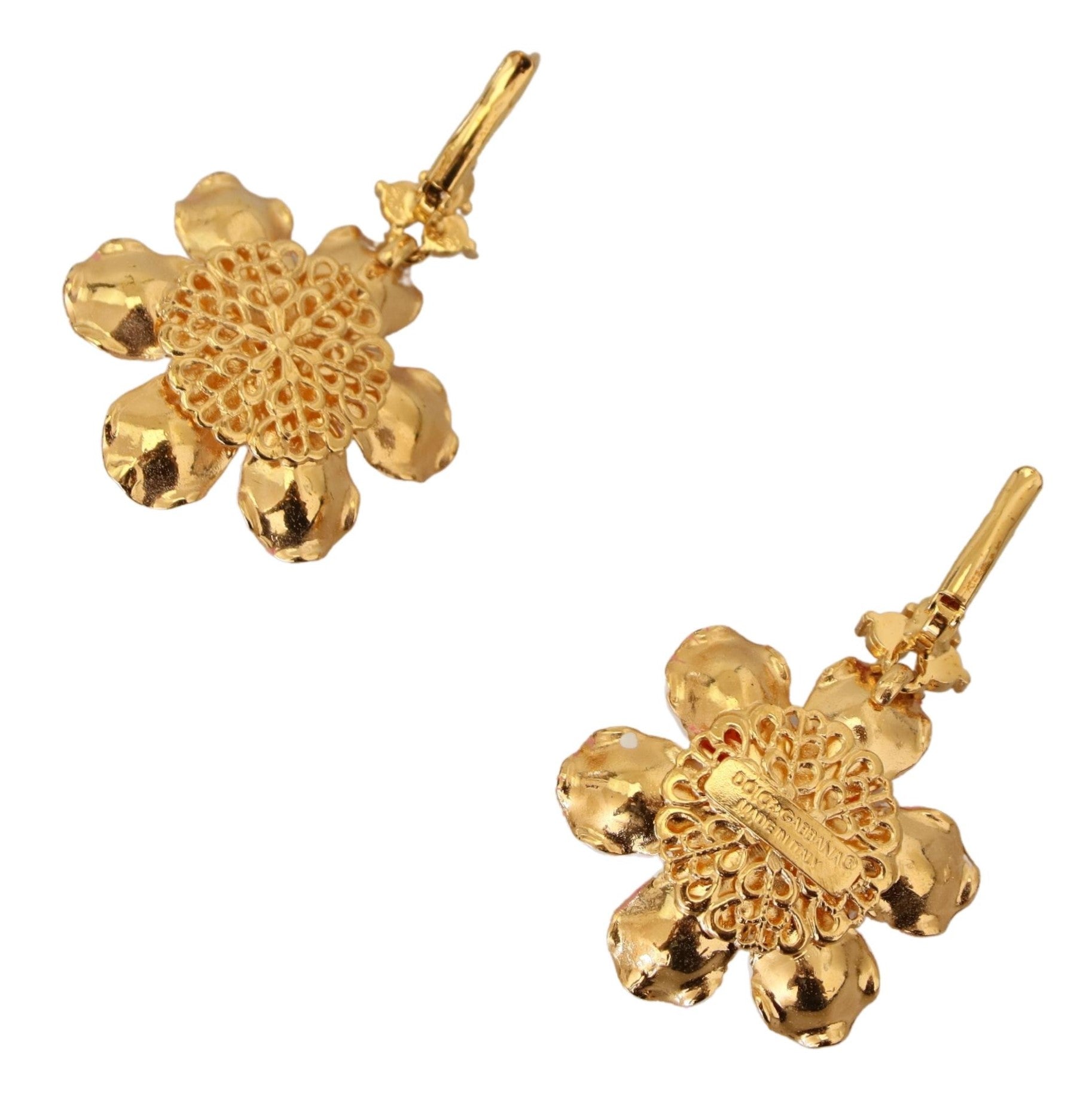 Indulge in the epitome of Italian luxury with these exquisite Dolce & Gabbana earrings, perfect for adding a touch of glamour to any outfit. Designed with a Sicily floral motif, these earrings feature delicate pink crystals that catch the light beautifully. The gold hue of the high-quality brass complements the soft pink tones, making them a versatile accessory for both day and evening wear.