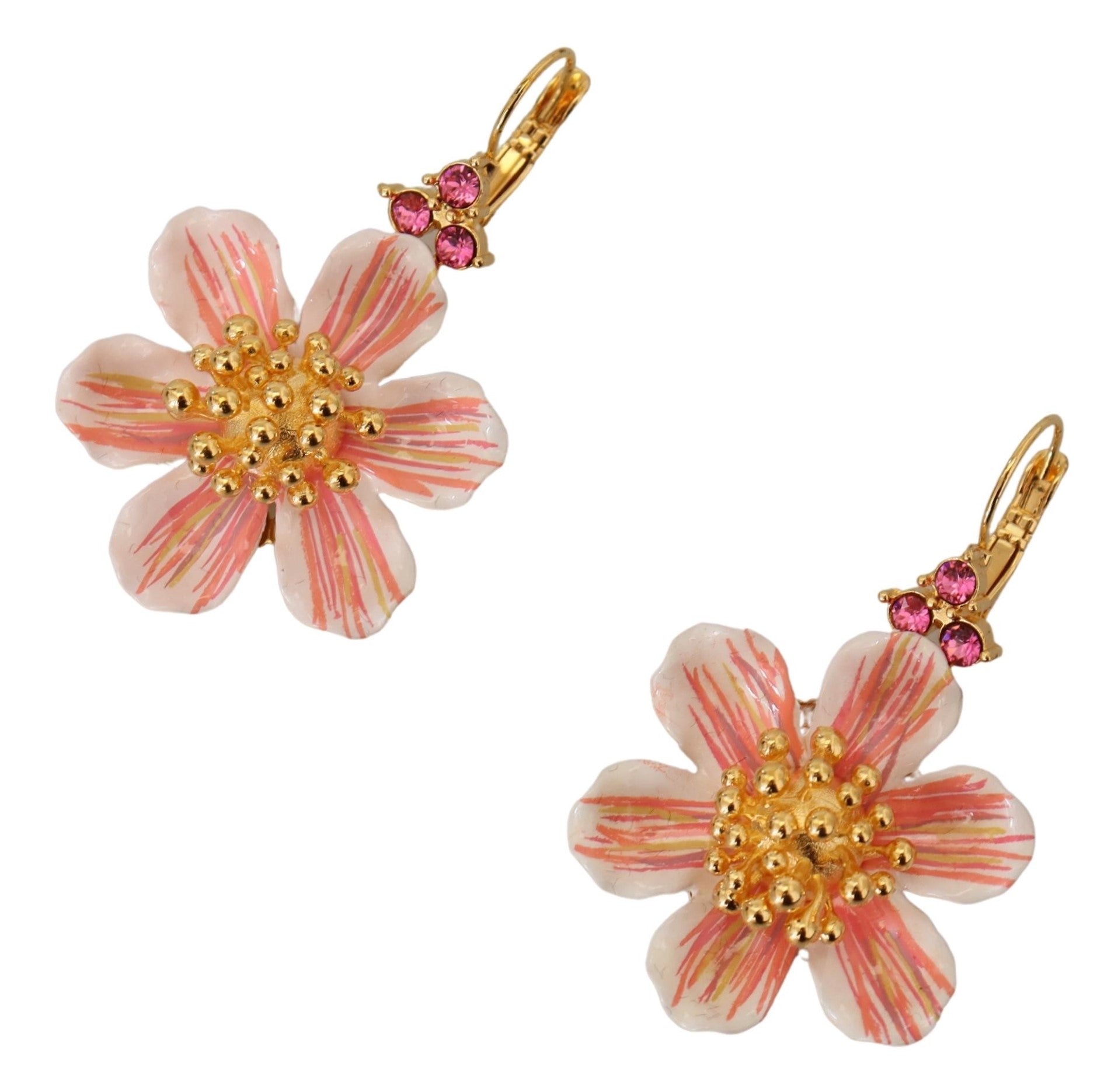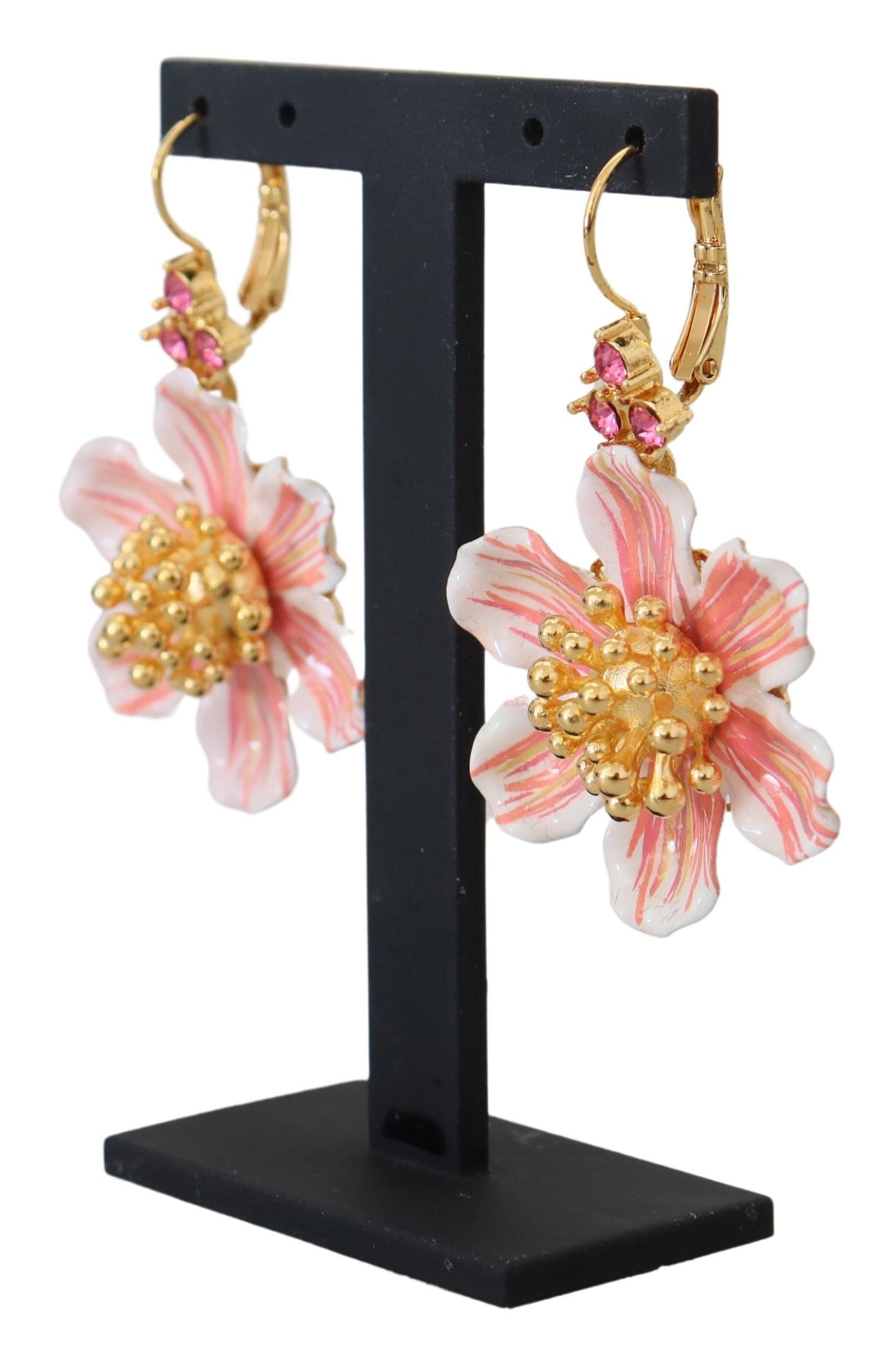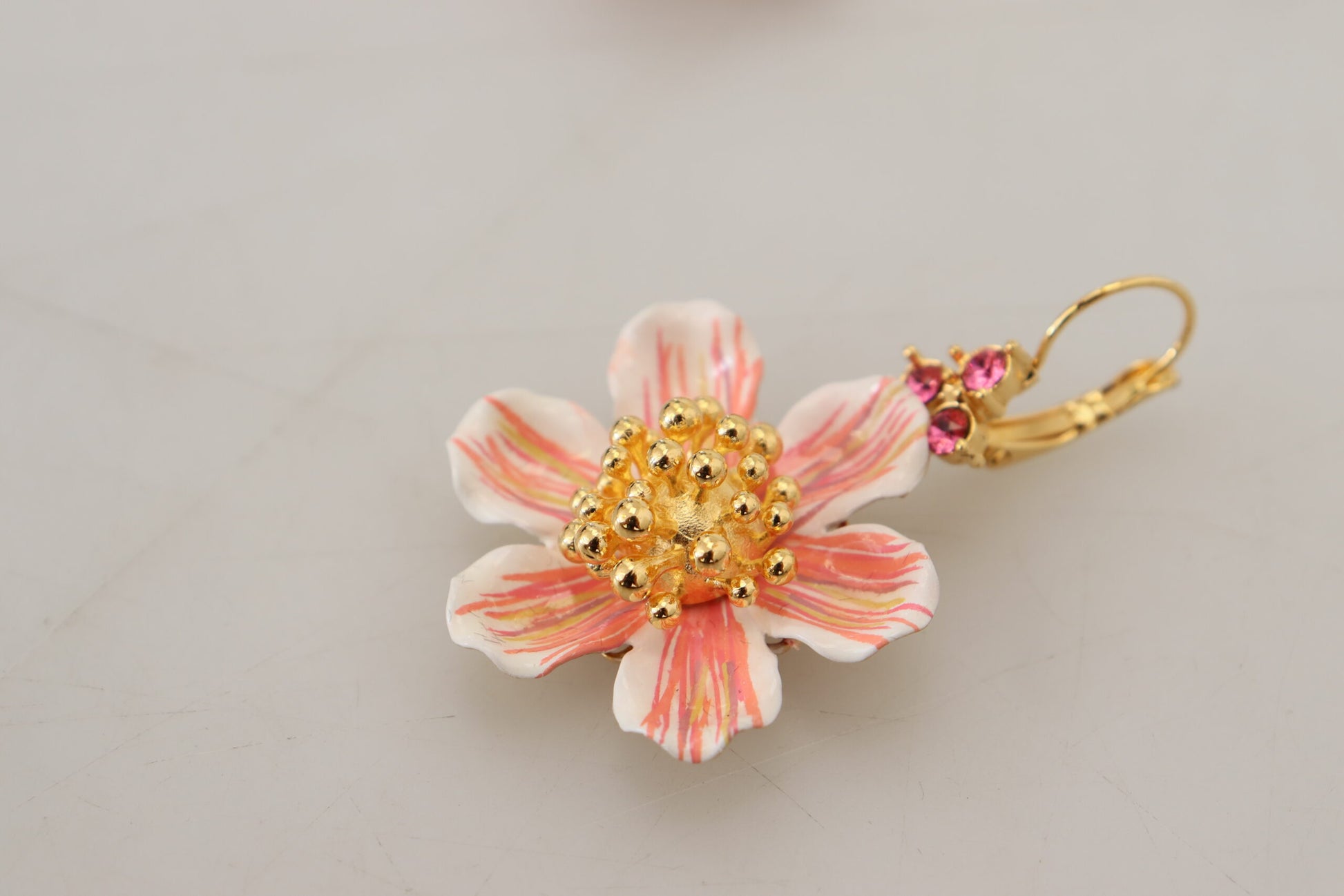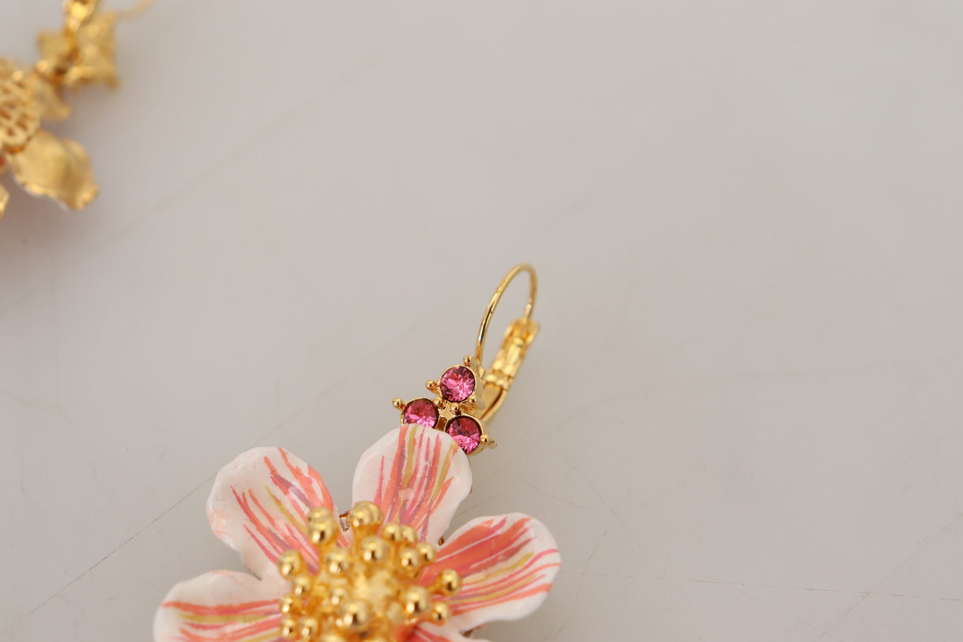 Indulge in the epitome of Italian luxury with these exquisite Dolce & Gabbana earrings, perfect for adding a touch of glamour to any outfit. Designed with a Sicily floral motif, these earrings feature delicate pink crystals that catch the light beautifully. The gold hue of the high-quality brass complements the soft pink tones, making them a versatile accessory for both day and evening wear.