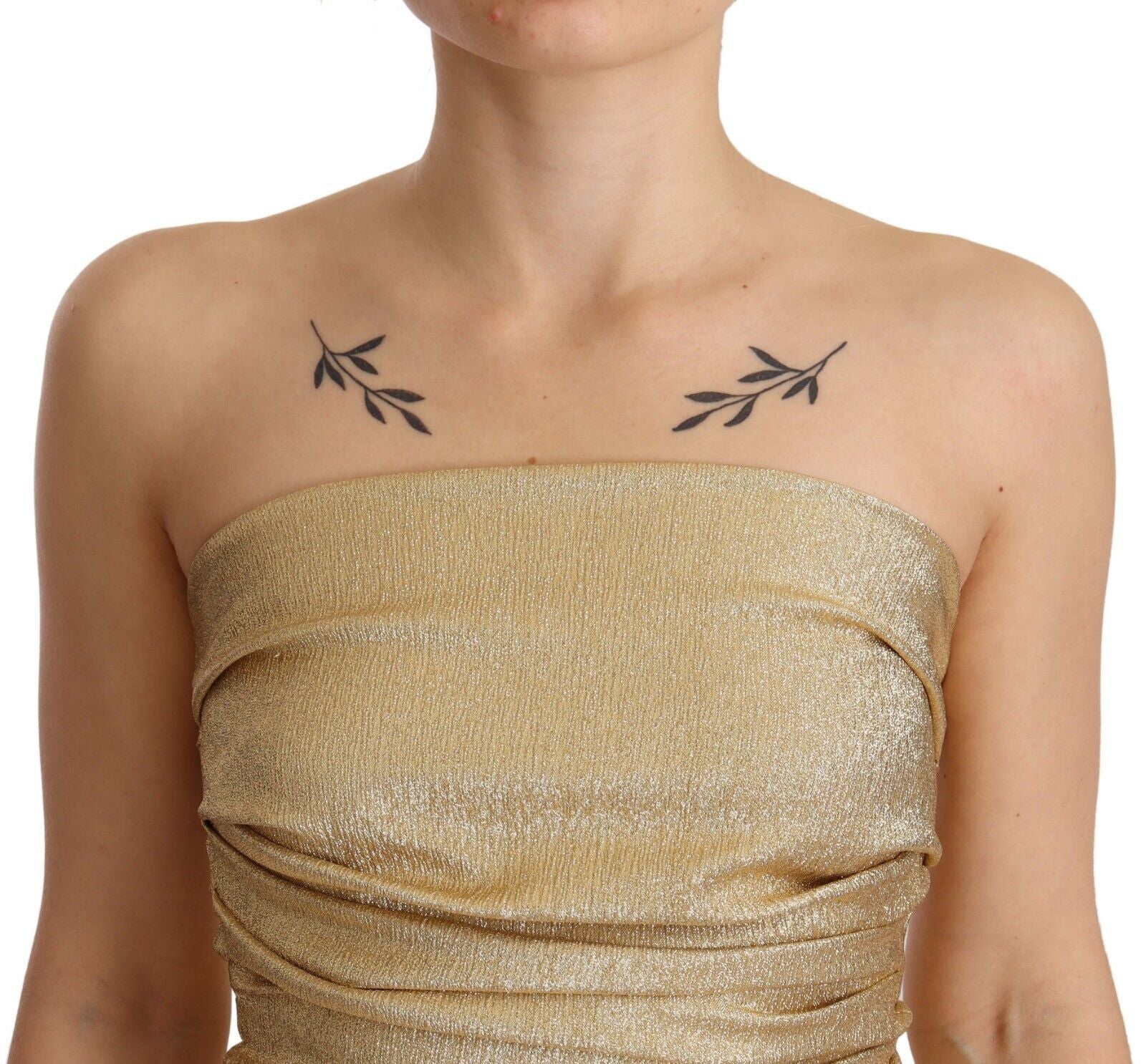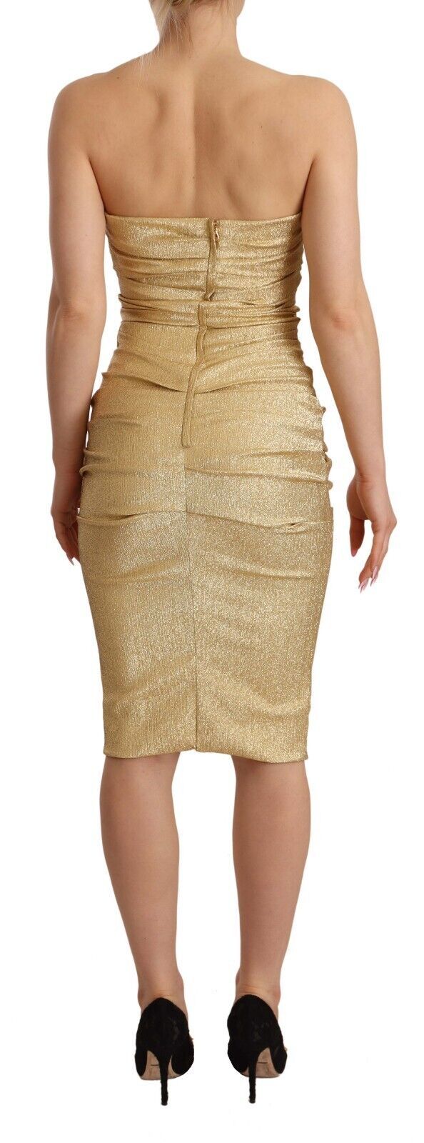 Indulge in the opulence of this stunning cocktail dress from the renowned Dolce & Gabbana. Crafted in Italy, this gorgeous creation is detailed with a bodice featuring boning that accentuates your silhouette. The luxurious soft satin flows in graceful folds, sparkling with lamé threads that catch the light with every movement. This dress is not just a statement piece but a testament to impeccable style and Italian craftsmanship.