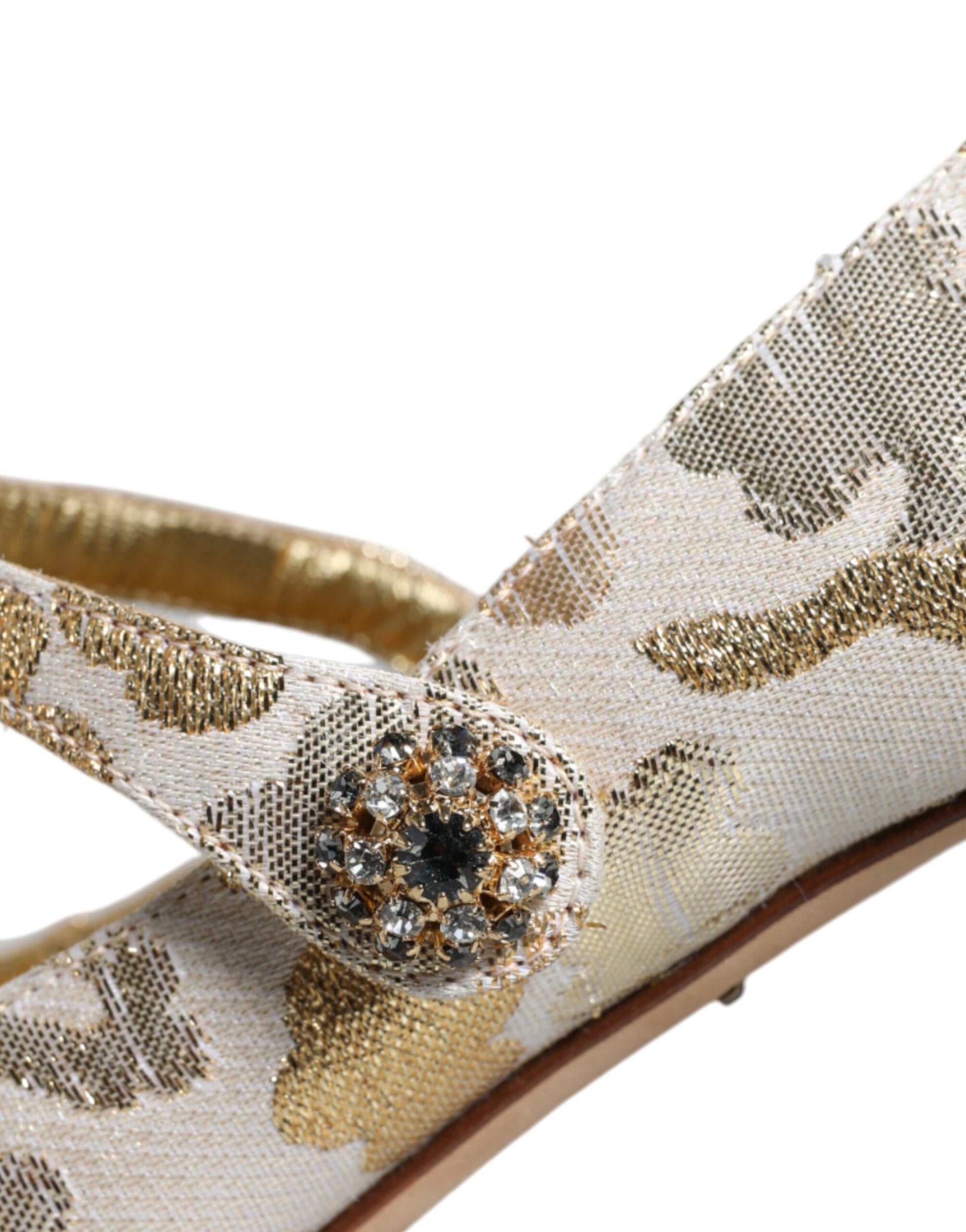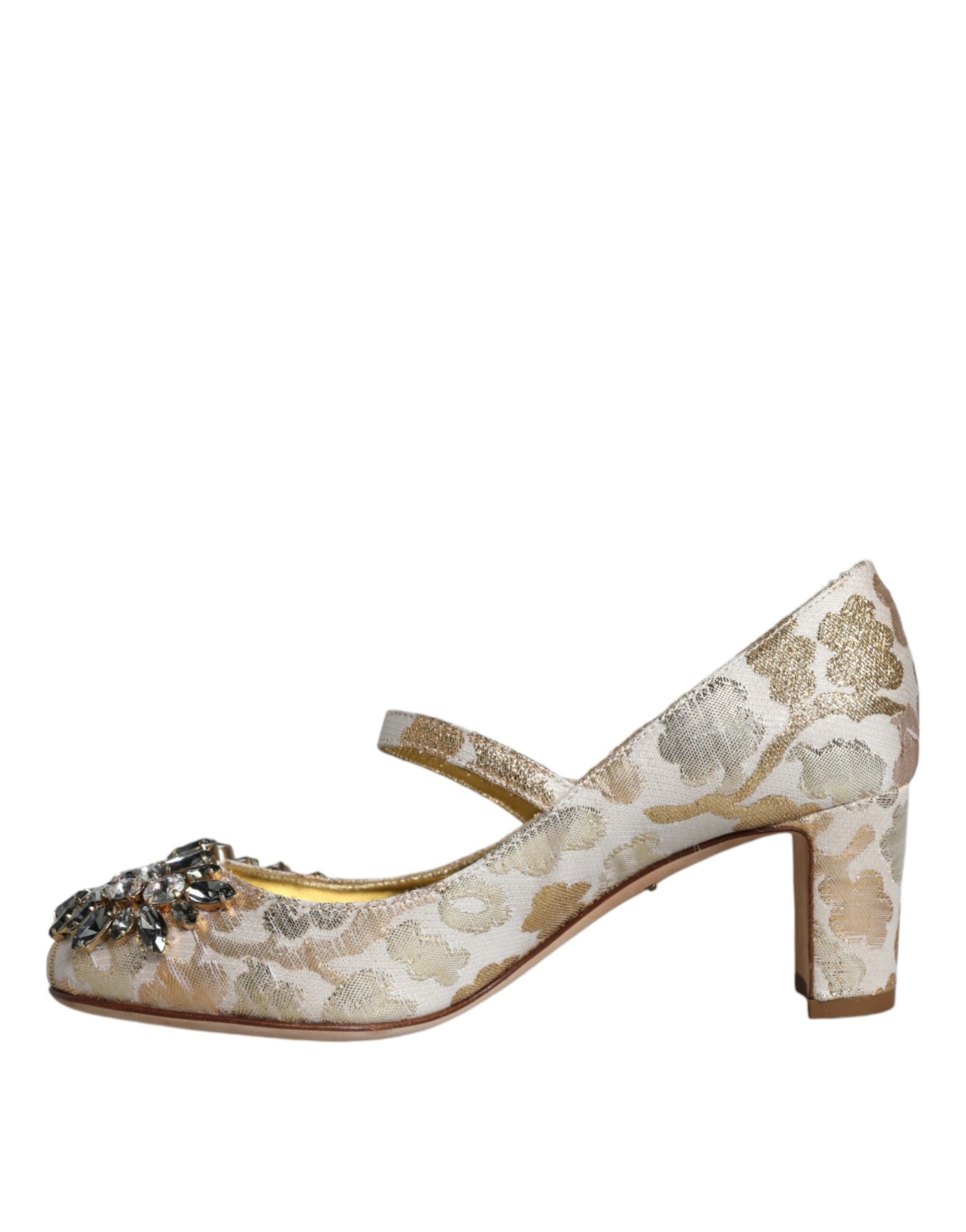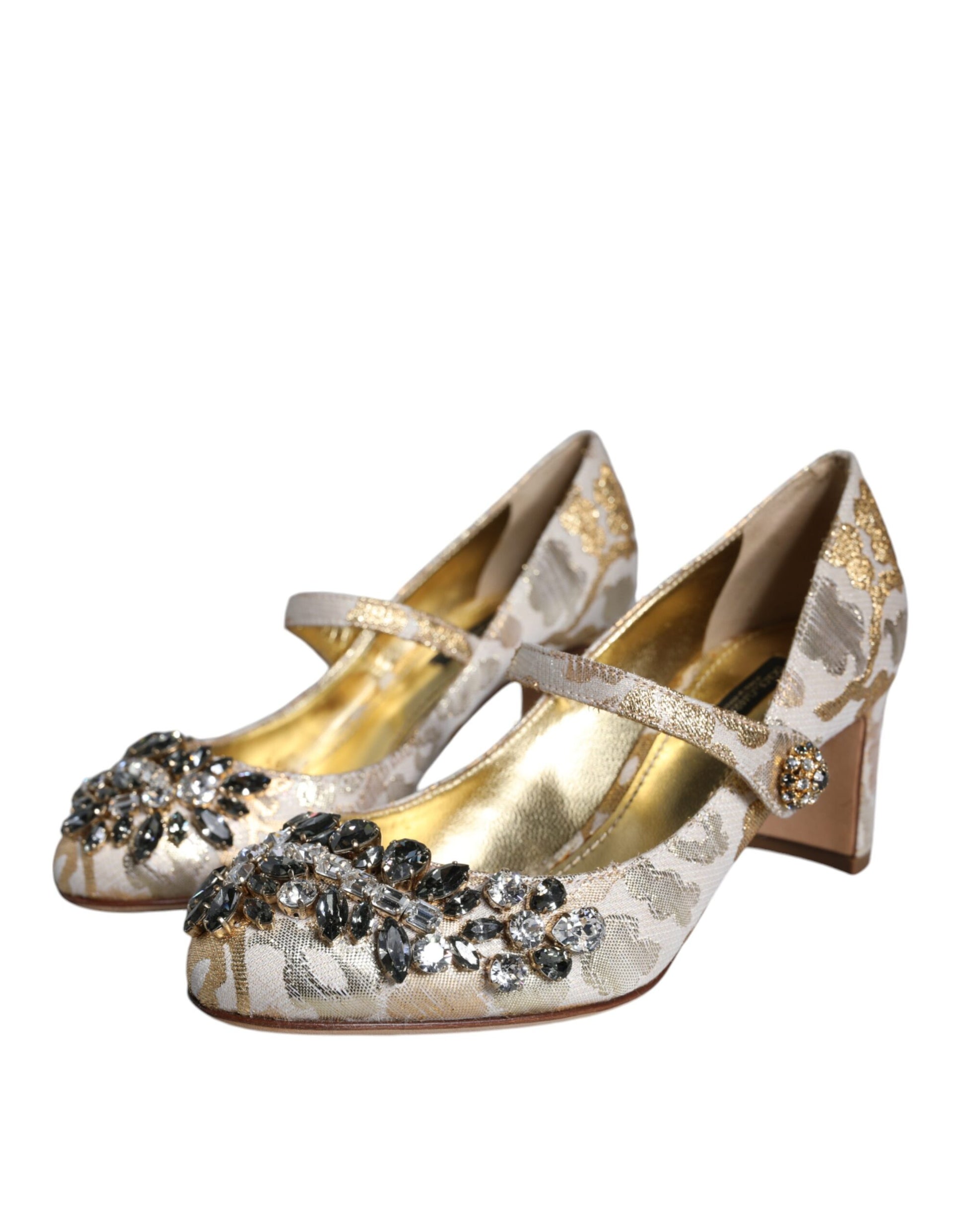 Gold Jacquard Crystal Mary Janes Pumps Shoes