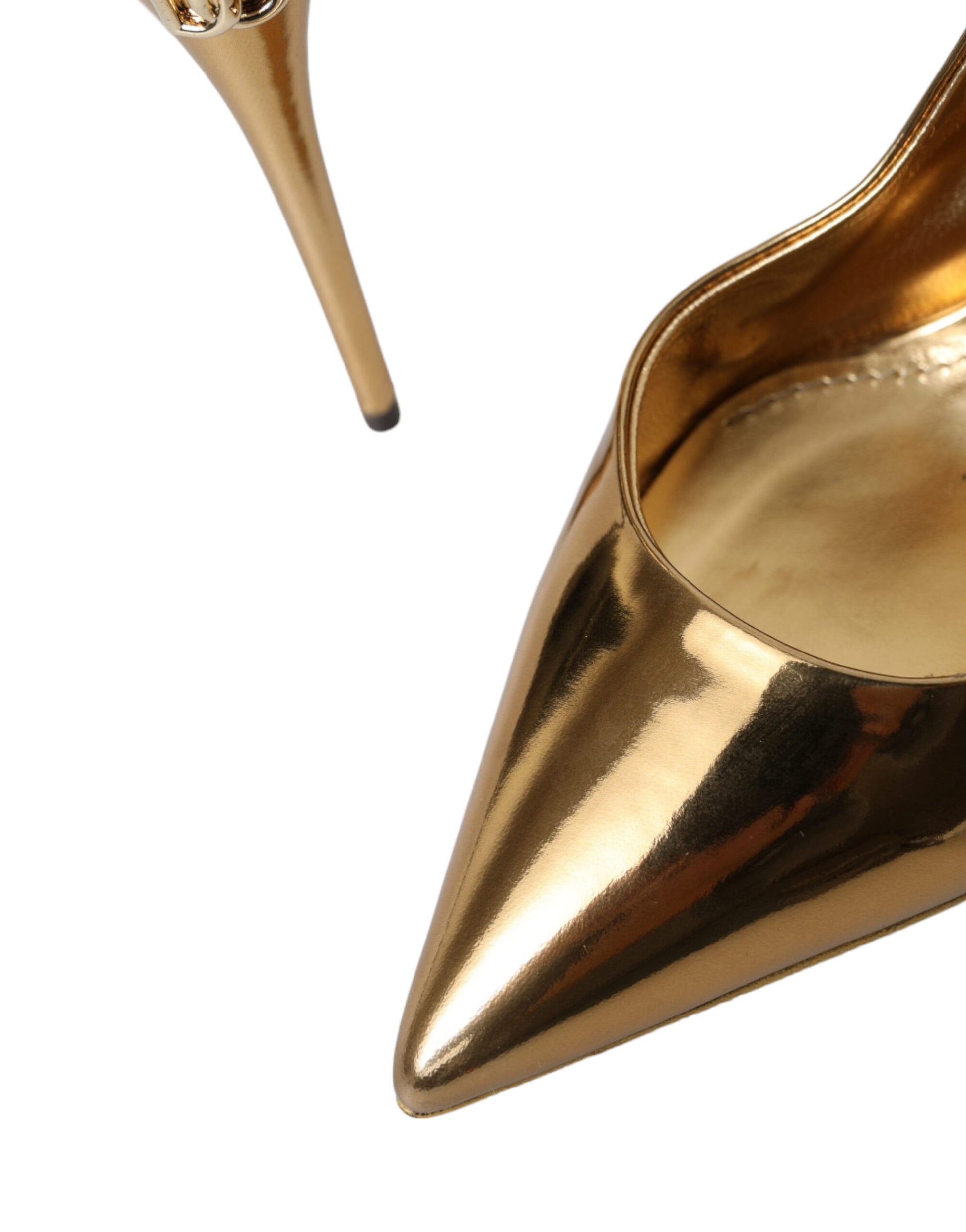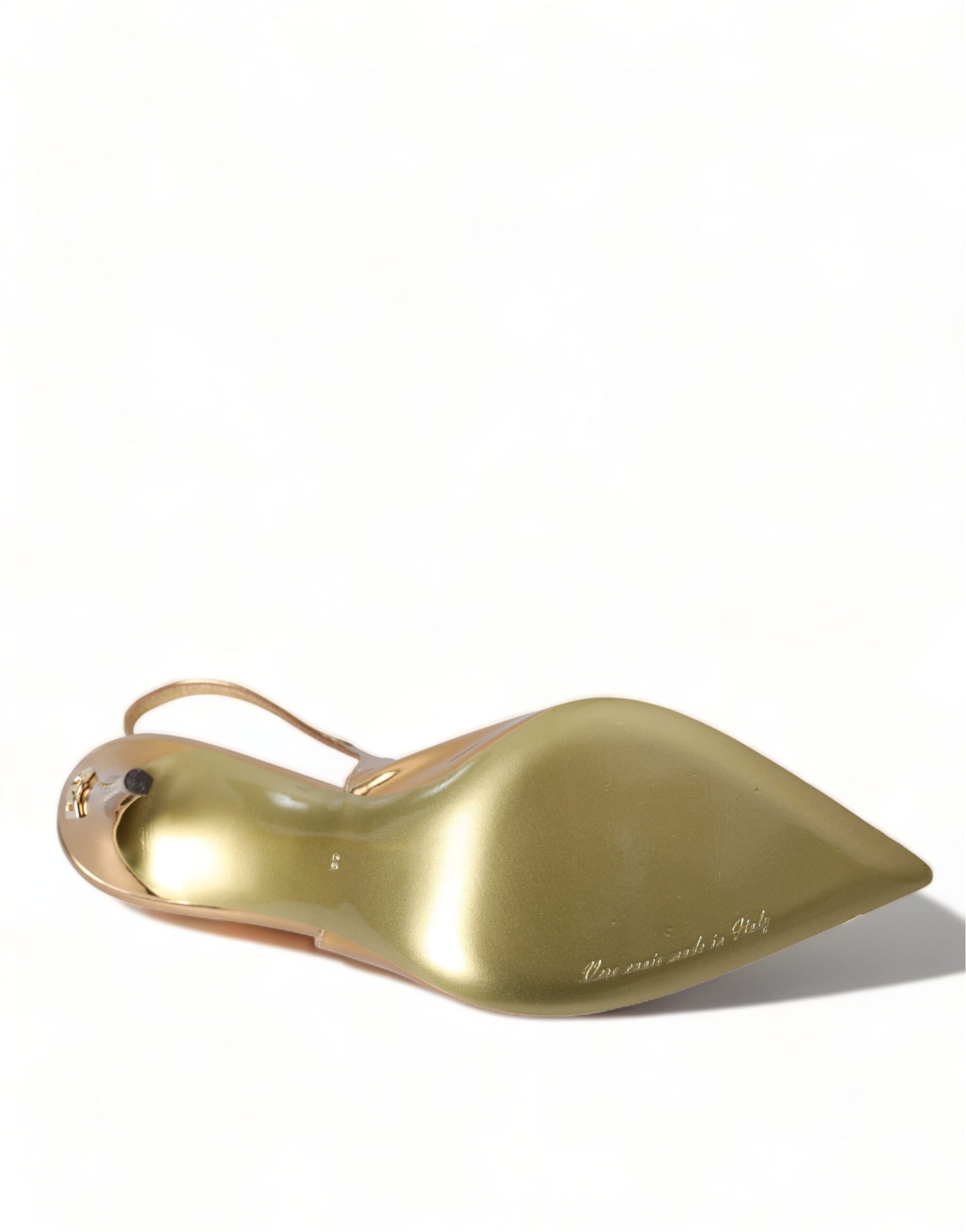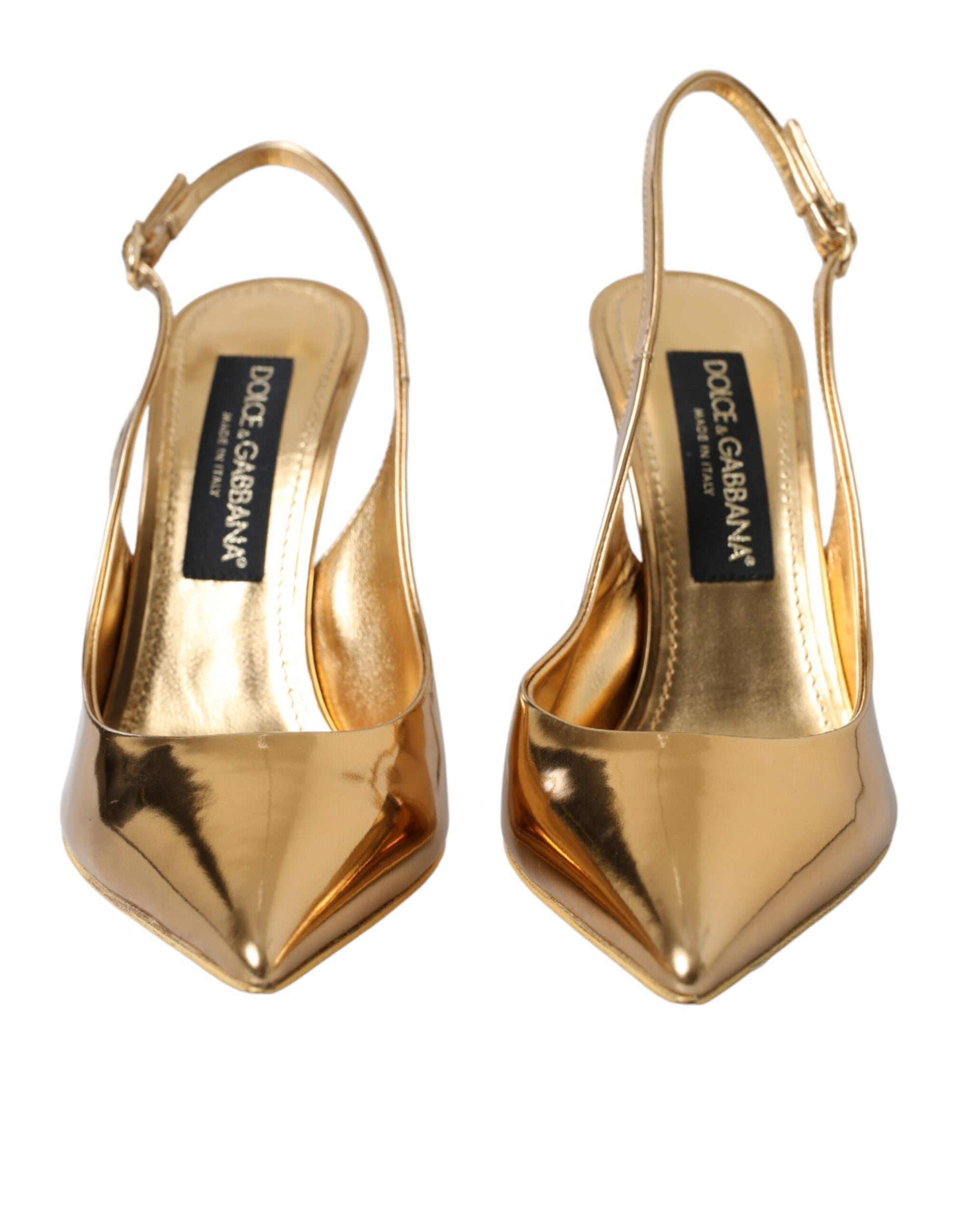 Step into sophistication with these stunning slingback heels from Dolce & Gabbana. Crafted from lustrous gold-tone leather, these pumps elevate any ensemble instantly. Made in Italy, they embody luxury with their sleek stiletto heels and classic logo detailing, promising both high quality and comfort for your most elegant occasions.