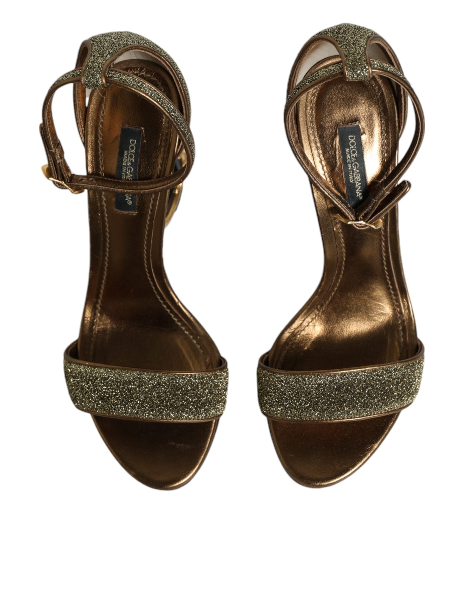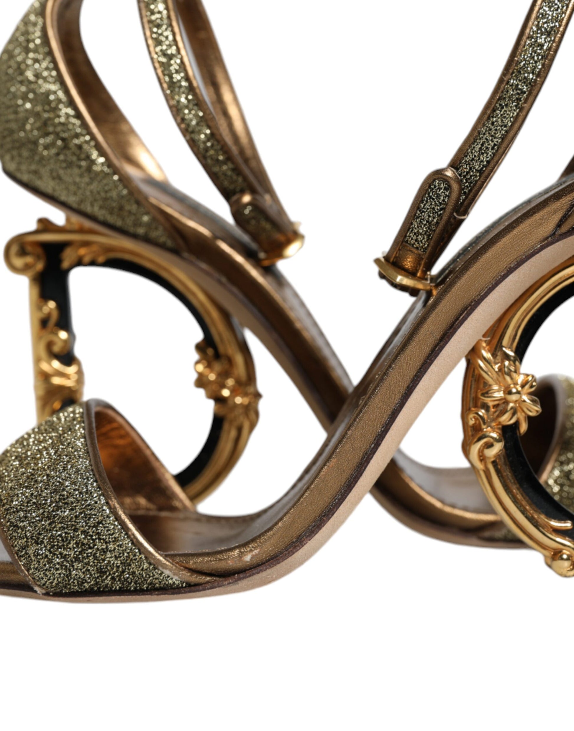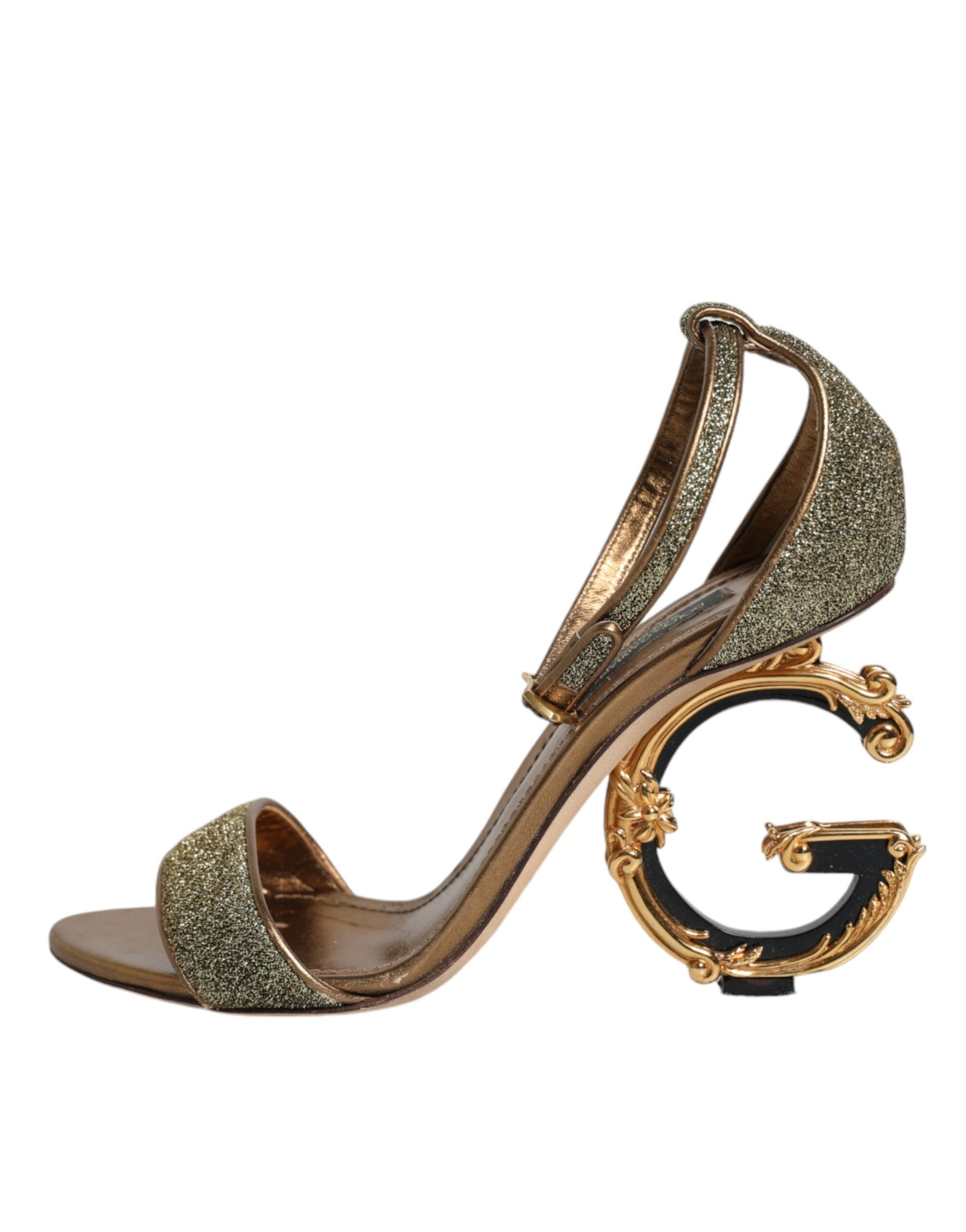 Gold Lurex Ankle Strap Heel Sandals Shoes