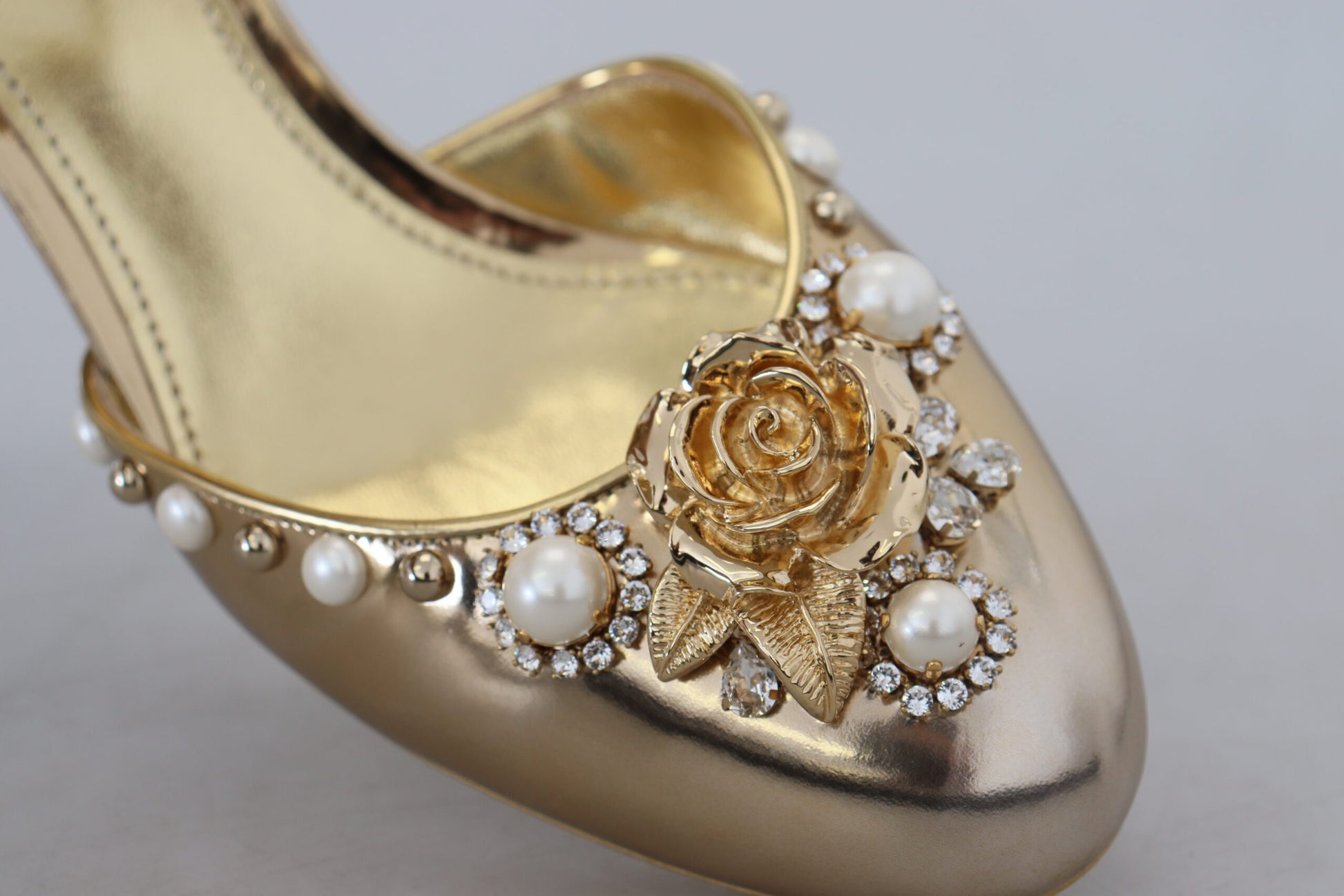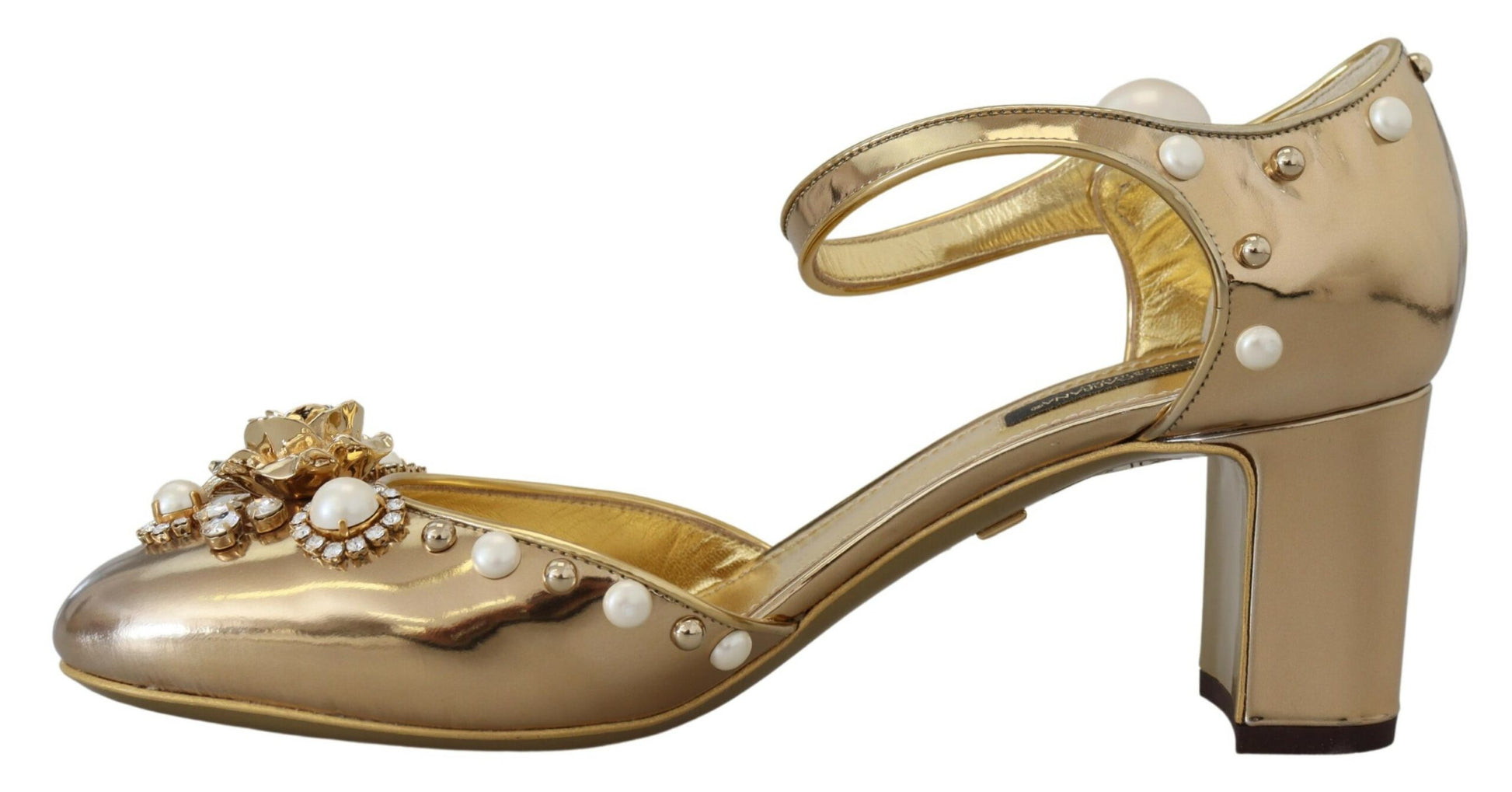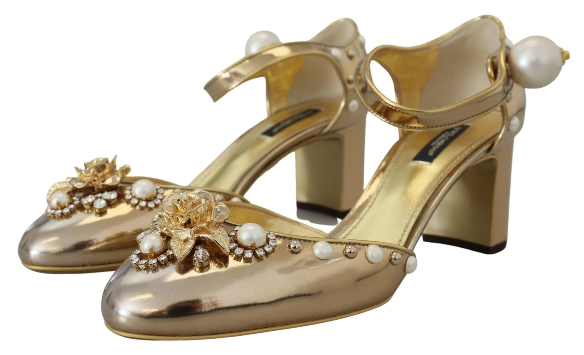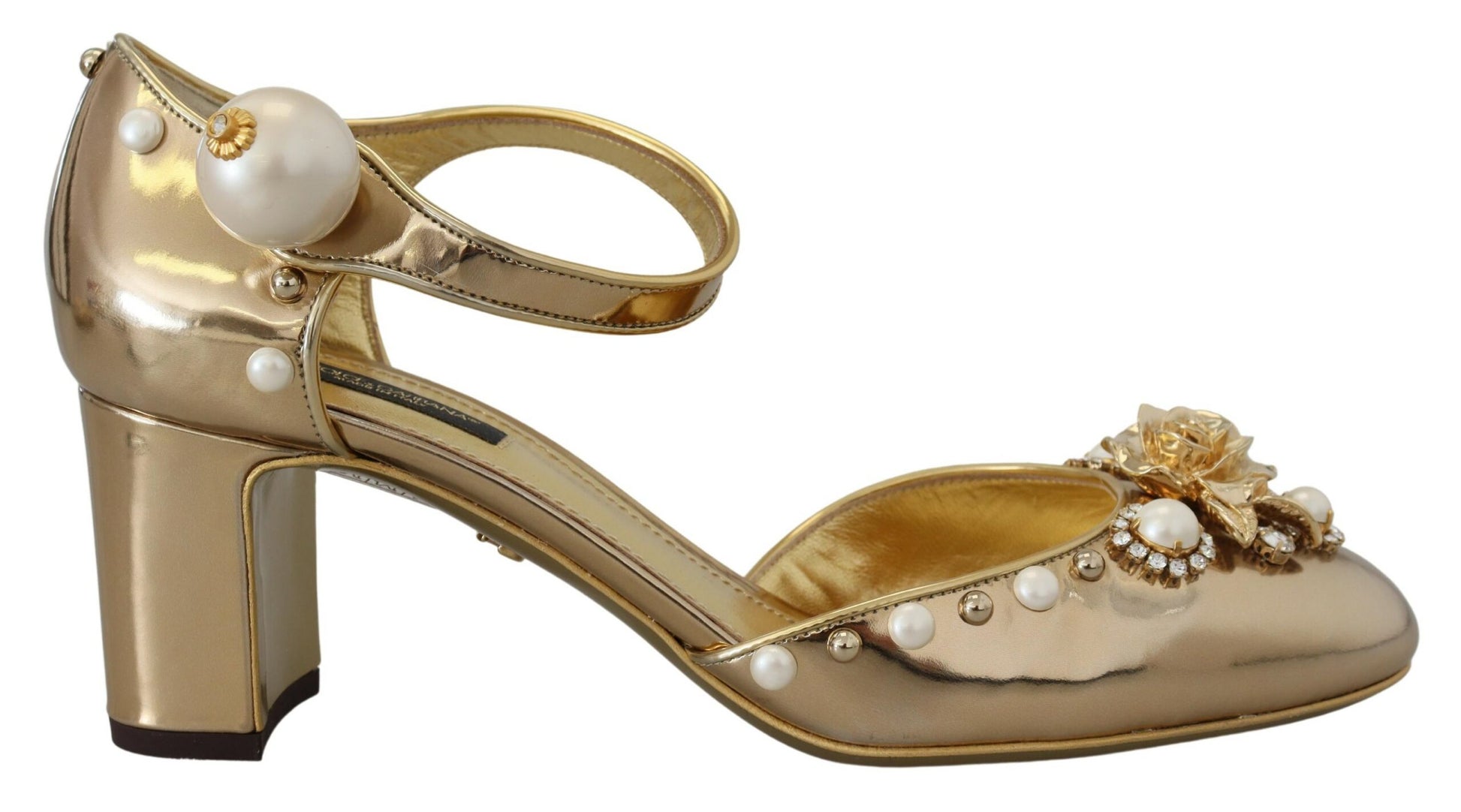 Step into luxurious elegance with these stunning slingback strap close toe sandals from Dolce & Gabbana. Impeccably crafted, these sandals fuse comfort with high-fashion, featuring exquisite material blend and a striking gold color that promises to make a statement at any event. Perfect for those who seek sophistication in their footwear collection. Experience the epitome of Italian craftsmanship with these Dolce & Gabbana beauties.