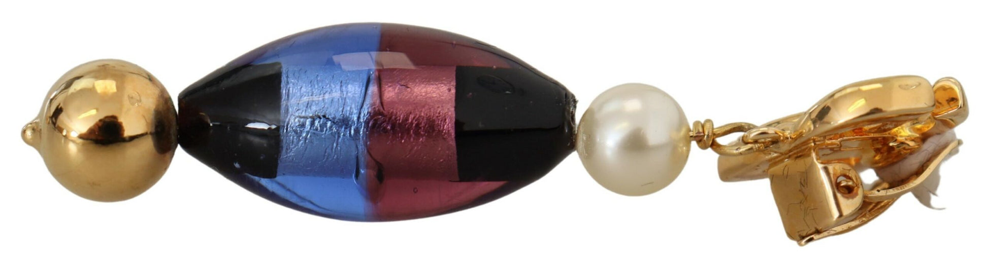 Adorn your evening attire with the sophistication of these Sicilian Motif Clip-On Dangling Earrings, a testament to impeccable craftsmanship and timeless elegance. Designed by the renowned Dolce & Gabbana, these earrings feature a luxurious blend of 60% brass and 40% glass, exuding an aura of classic glamour with a multicolored glass embellishment that captures the essence of Sicilian artistry.