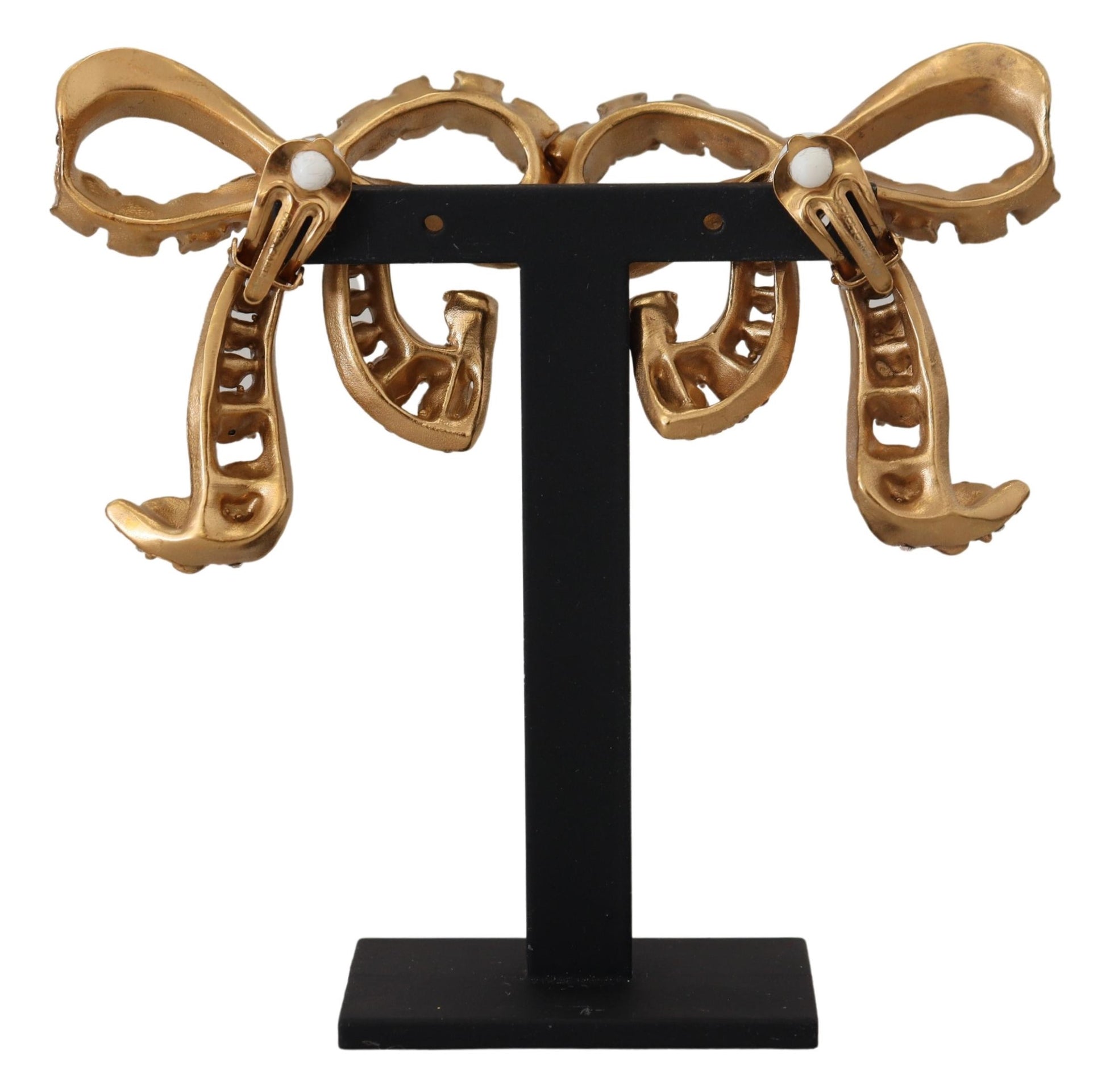 Elegant Gold-Toned Bow Clip Earrings